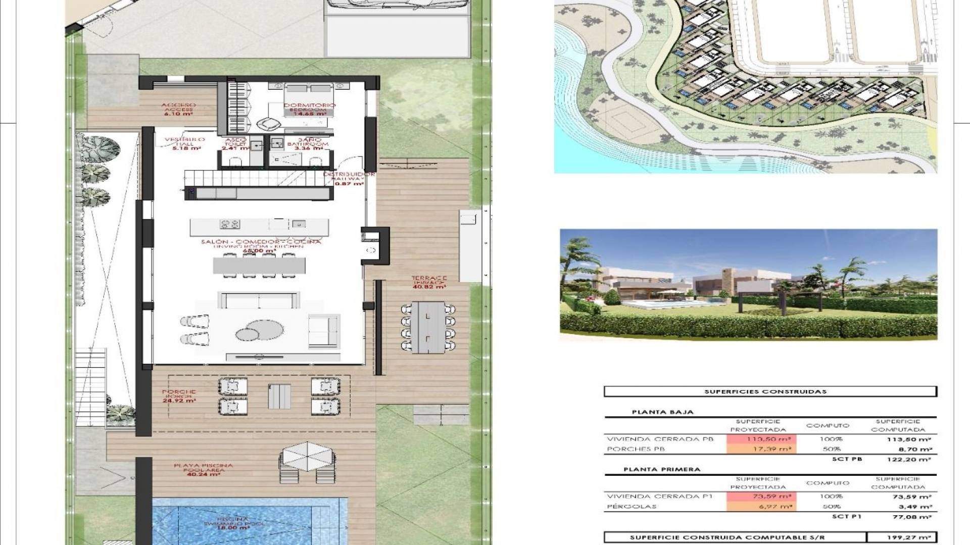 NEUBAU-VILLEN IN PRIVATER GATED-ANLAGE IN DER PROVINZ MURCIA 14 exklusive Neubauvillen auf einem erstklassigen Grundstück mit Blick auf den See in dieser schönen neuen See- und Lebensanlage. Es sind Grundstücke mit einer Größe von 392 m2 bis 745 m2 verfügbar. Die Villen erstrecken sich über zwei Etagen plus ein Untergeschoss von 150 m2 mit einem Atrium. Die Innenausstattung kann ganz nach den eigenen Wünschen gestaltet werden. Die Villen verfügen über 4 Schlafzimmer, 4 Bäder, eine offene Küche mit Wohnbereich, Einbauschränke, einen privaten Garten mit Pool und einen Parkplatz abseits der Straße. Das Haus befindet sich in einer privaten, bewachten Anlage mit einem Haupteingang und 24 Stunden Sicherheitsdienst. Die Anlage ist um eine beeindruckende 126.000 m2 große Grünfläche herum angelegt. Sie umfasst Wander- und Radwege, Sportanlagen, Paddel- und Tennisplätze, einen Minigolfplatz, Gärten, Hundeparks, Freizeitbereiche, ein Clubhaus.... Ebenfalls im zentralen Bereich befindet sich das Juwel des Resorts, ein kristallklarer künstlicher See mit einer Wasserfläche von fast 17.000 m2, umgeben von weißen Sandstränden und Palmen, der ein Stück Karibik in die Region Murcia bringt. Es gibt 2 Inseln im See, eine davon mit einer eigenen Bar, außerdem gibt es "Strand-Chiringuitos" rund um den See. Die Anlage ist strategisch günstig gelegen, weniger als 4 km vom Strand und der Stadt Los Alcázares entfernt, wo man verschiedene Wassersportarten ausüben kann, umgeben von mehreren Golfplätzen und der Stadt Cartagena, die weniger als 15 Autominuten und 22 km vom Flughafen Murcia entfernt ist, so dass ein breites kulturelles, gastronomisches und sportliches Angebot in Reichweite ist.