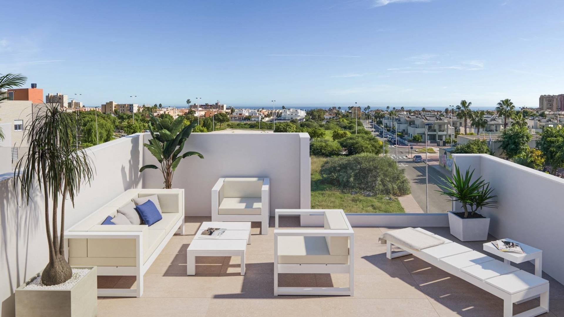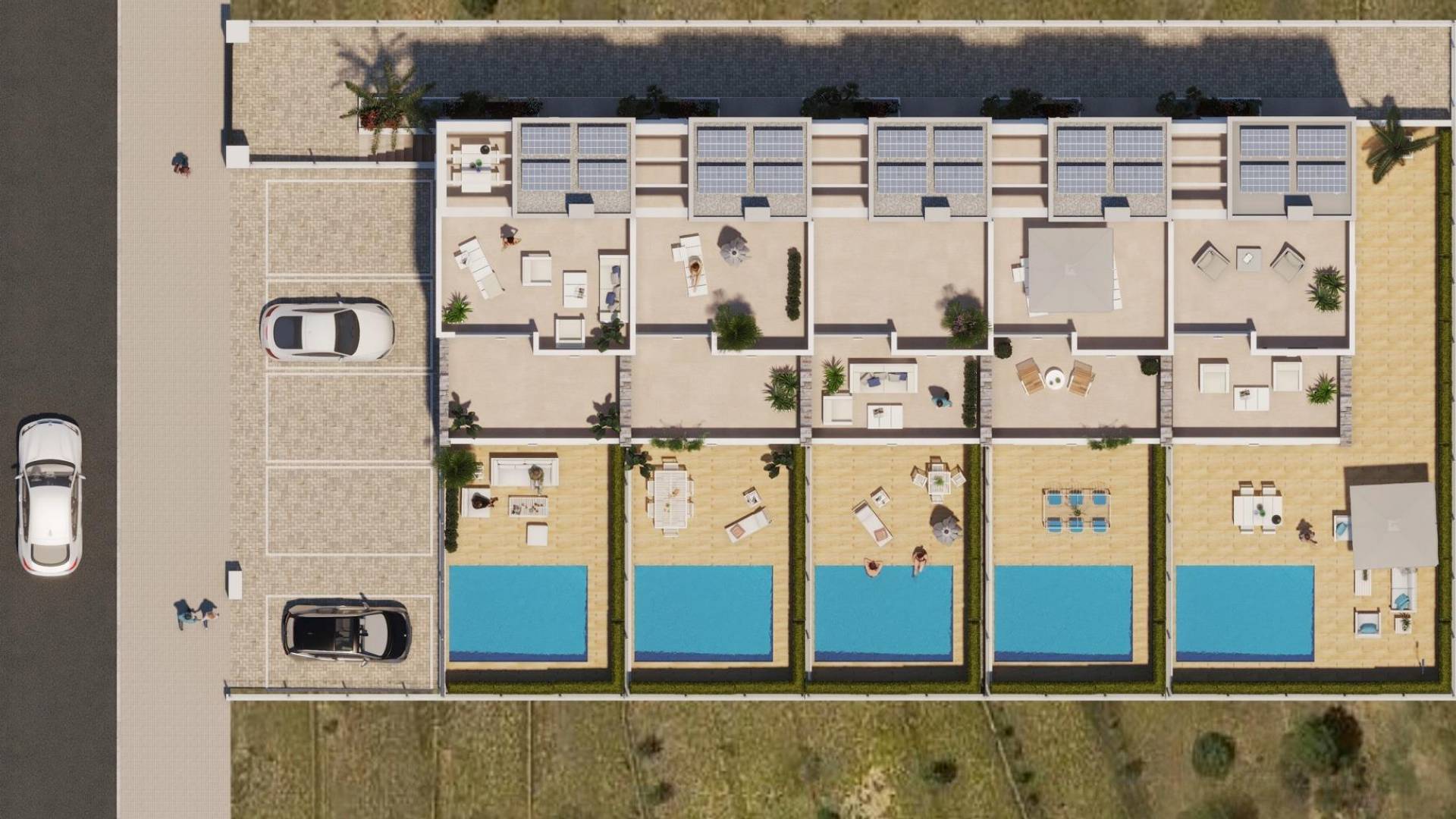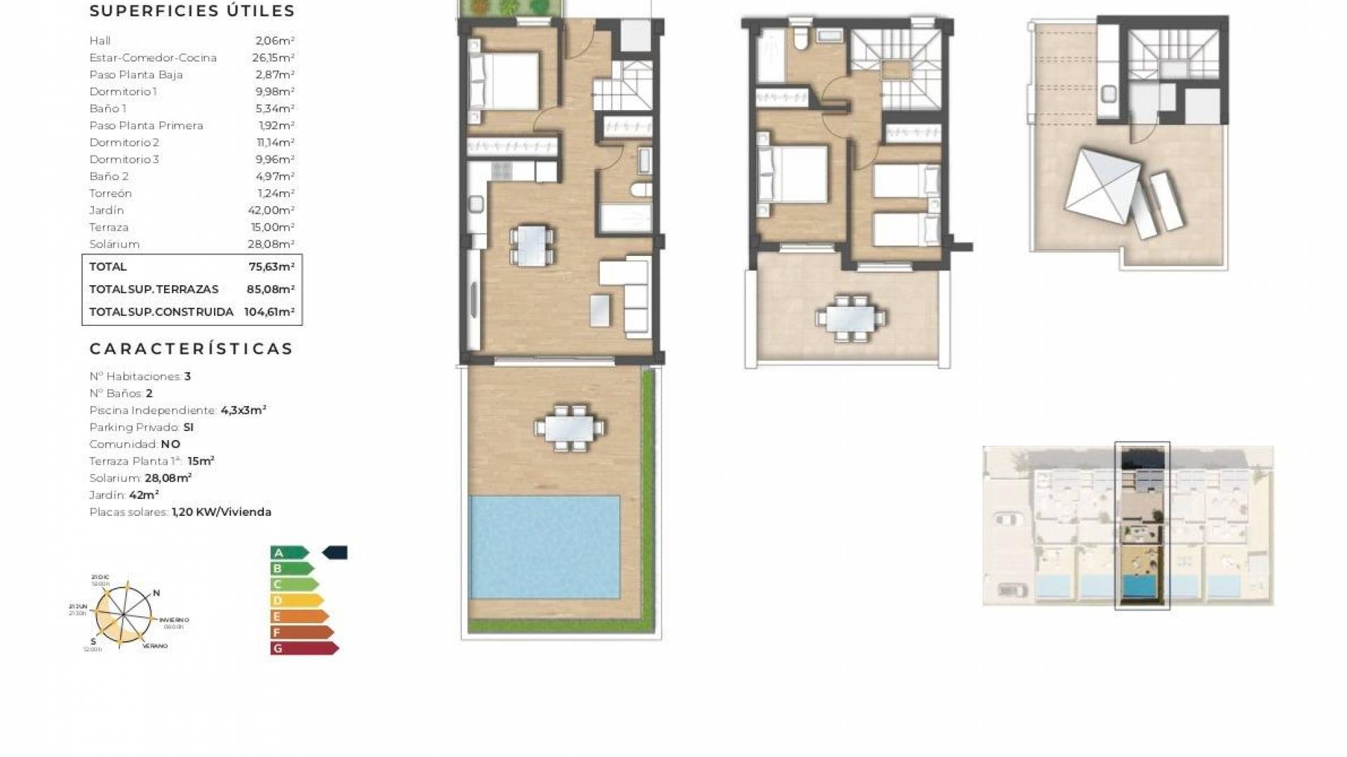 NEU GEBAUTE STADTHÄUSER IN TORREVIEJA New Build Wohn von 5 schönen Eigenschaften mit privaten Swimmingpools in Torrevieja. Schöne Stadthäuser hat 3 Schlafzimmer, 2 Bäder, offene Küche mit Wohnzimmer, Einbauschränke, Terrasse, private solarium mit Grillplatz, Garten mit dem Pool und comunal Parkplatz. Eigenschaften mit hochwertigen Materialien und Oberflächen gebaut. Die unglaubliche Lage, nur 5 Minuten vom Meer entfernt, und die Nähe zu den wichtigsten Einkaufs- und Freizeitzentren von Torrevieja sowie zu den Golfplätzen, machen es zu einem einzigartigen und exklusiven Ort zum Leben. Torrevieja ist eine spanische Stadt in der Provinz Alicante, an der Costa Blanca. Sie ist bekannt für ihr typisch mediterranes Klima und ihre Küstenlinie. Entlang der Sandstrände gibt es Strandpromenaden mit Ferienanlagen. Das kleine Meeres- und Salzmuseum beherbergt Ausstellungen über die Fischerei- und Salzgeschichte der Stadt. Im Landesinneren befindet sich der Naturpark Lagunas de La Mata-Torrevieja mit Wanderwegen und zwei salzhaltigen Lagunen, von denen eine rosa und die andere grün ist. Der Flughafen Alicante ist 40 Minuten und der Flughafen Murcia etwa 1 Stunde entfernt.