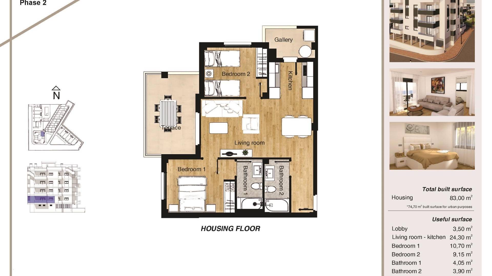 NEUBAU WOHNANLAGE IN LOS ALTOS Neubau-Wohnanlage in Los Altos, Orihuela Costa. Gated Komplex besteht aus Bungalows, Wohnungen und Penthäuser, alle mit 2 Schlafzimmern, 2 Bädern, offene Küche mit dem Wohnbereich, Einbauschränke, Terrassen, Abstellraum und Parkplatz. Die Bungalows im Erdgeschoss haben einen Halbkeller als Garage, der Zugang zur Garage erfolgt von außen durch ein automatisches Tor, die Bungalows und Penthäuser im Obergeschoss haben eine private Sonnenterrasse, die Wohnungen im mittleren Stockwerk schöne Terrassen. Die Wohnanlage verfügt über einen Swimmingpool mit getrennten Bereichen für Erwachsene und Kinder, einen Gartenbereich um den Pool mit einer Pergola, Toiletten neben dem Pool, einen offenen und überdachten Sozialbereich mit Bänken, wo man mit Familie und Freunden essen kann, und einen geschlossenen Fitnessraum und Sozialbereich. Der geschlossene Sozialbereich verfügt über Toiletten und Duschen. Die Wohnanlage wird auch über einen überdachten Parkplatz verfügen, an den jede Wohnung angeschlossen ist und der mit einer Ladestation für Elektrofahrzeuge ausgestattet ist, mit Ausnahme der Bungalows im Erdgeschoss, die über einen eigenen Parkplatz verfügen. New Build Wohnanlage befindet sich in einem großen Bereich, in der aktuellen Erweiterung, in der Nähe der Strände von Torrevieja, Punta Prima und Playa Flamenca. Die Wohnanlage ist auch sehr nah an der Laguna Rosa von Torrevieja, die Teil des Naturparks der Lagunas de la Mata und Torrevieja ist, und ist ein großartiges Gebiet zum Wandern und genießen Sie die schöne und ungewöhnliche Landschaft Die Wohnanlage ist von allen notwendigen Dienstleistungen und Freizeiteinrichtungen umgeben: Supermärkte sind nur wenige Minuten entfernt, das Einkaufszentrum La Zenia ist 8 Minuten entfernt, das Krankenhaus von Torrevieja ist 7 Minuten entfernt, der Golfplatz von Villamartin ist nur 7 Minuten von der Wohnanlage entfernt, und es gibt auch zahlreiche Restaurants und Cafés in der Nähe. Außerdem liegt die Wohnanlage in unmittelbarer Nähe der Mittelmeerautobahn, über die Sie den Flughafen Altet in Alicante in nur 40 Minuten erreichen können. Die Verbindung mit dem internationalen Flughafen von Murcia ist ebenfalls gut, da die Fahrt dorthin nur 42 Minuten dauert.