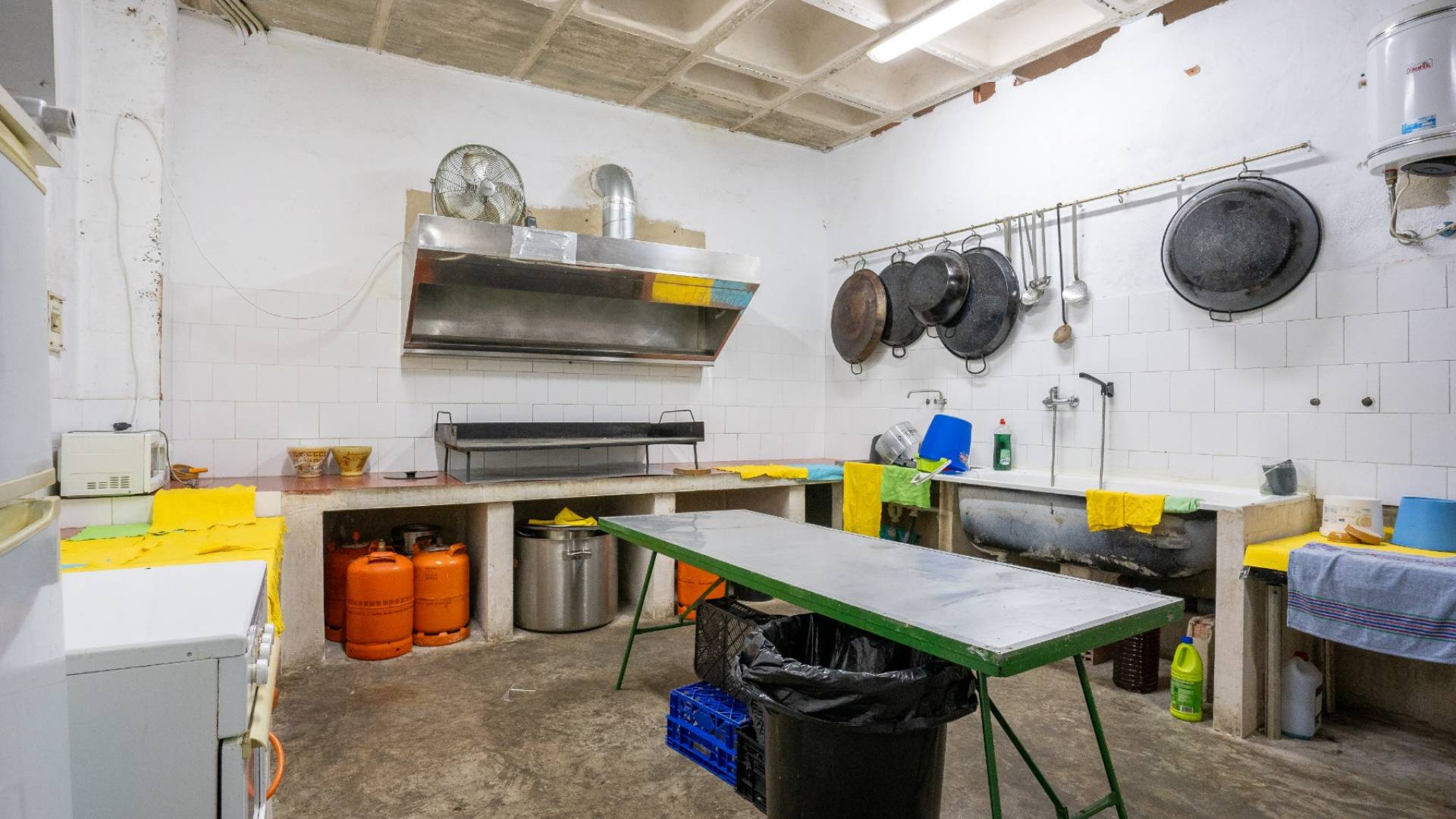 Küche mit Abluftanlage, perfekt für Gastronomie oder Lebensmittelservice.