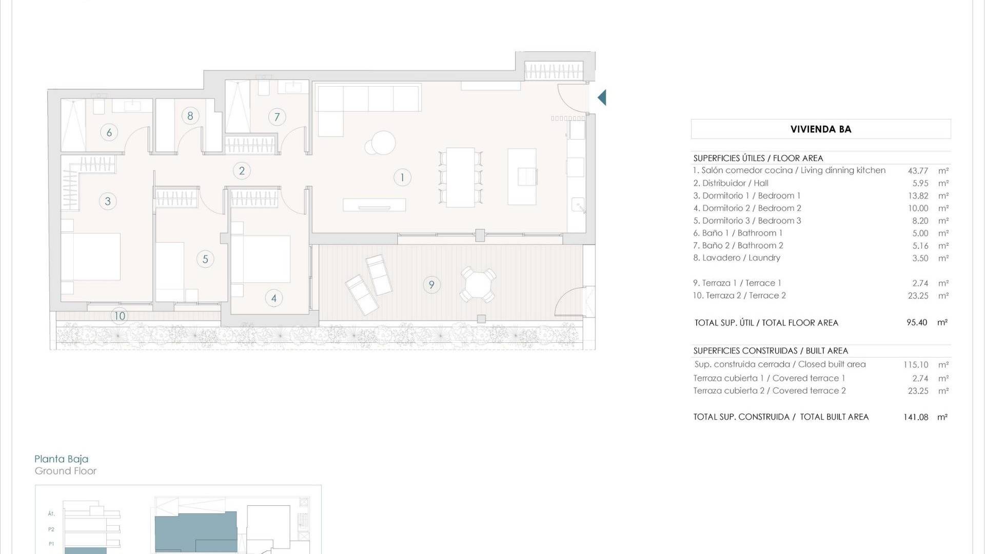 Neubauwohnungen in Benijofar in zentraler Lage Modernes Wohnen in Benijofar Diese exklusive Neubauanlage in Benijofar umfasst nur 11 moderne Wohnungen, die zeitgenössische Architektur, Komfort und hochwertige Materialien vereinen. Das Projekt umfasst Wohnungen im Erdgeschoss und im ersten Stock mit großzügigen Terrassen sowie Penthäuser mit Terrassen und privaten Solarien. Das Wohngebäude befindet sich in einer zentralen und dennoch ruhigen Gegend von Benijofar und liegt gegenüber einer großen Grünfläche. Es genießt den ganzen Tag über ausgezeichnetes Tageslicht und eine angenehme, offene Aussicht. Moderne Wohnungen mit hochwertiger Ausstattung Jede Immobilie wurde sorgfältig entworfen, um hohen Standards in Bezug auf Qualität und Funktionalität zu entsprechen. Alle Wohnungen verfügen über einen privaten Garagenplatz und einen Abstellraum im Untergeschoss, der bequem mit dem Aufzug erreichbar ist. Die Bewohner können außerdem einen stilvollen Gemeinschaftspool genießen, der von landschaftlich gestalteten Gemeinschaftsbereichen umgeben ist und sich ideal zum Entspannen und für geselliges Beisammensein eignet. Die Penthäuser zeichnen sich durch ihre großzügigen Sonnenterrassen aus, die die Möglichkeit bieten, eine Außenküche zu installieren, und über einen Whirlpool verfügen, wodurch ein einzigartiger Außenbereich entsteht, der sich perfekt zum Entspannen oder zur Unterhaltung unter der mediterranen Sonne eignet. Hochwertige Ausstattung und Energieeffizienz Bei der Errichtung der Wohnanlage wurde großer Wert auf Langlebigkeit, Effizienz und moderne Ästhetik gelegt. Zur Ausstattung gehören: Vorinstallation für Klimaanlage und Heizung Außenschreinerei mit thermischer Trennung und Doppelverglasung Aerothermisches System für Warmwasser Möblierte Küchen mit Geräten Innen- und Außenbeleuchtung inklusive Badezimmer mit Waschtischen, Spiegeln und Duschwänden Whirlpool in den Solariums der Penthäuser Jedes Detail wurde ausgewählt, um ein komfortables, effizientes und elegantes Wohnumfeld zu gewährleisten. Lebensstil und Lage in Benijofar Benijofar ist eine der charmantesten Städte in der Region Vega Baja und bekannt für ihre entspannte Atmosphäre, ihre Sicherheit und ihre ausgezeichnete Lebensqualität. Alle Dienstleistungen des täglichen Bedarfs wie Supermärkte, Schulen, medizinische Zentren, Restaurants und Freizeitbereiche sind innerhalb von 5 Minuten erreichbar. Die Stadt bietet die perfekte Balance zwischen traditionellem spanischem Leben und modernen Annehmlichkeiten. Wichtige Entfernungen zu Sehenswürdigkeiten Strände von Guardamar del Segura: 8 km Golfplätze La Finca und La Marquesa: 6 km Wasserpark Rojales: 4 km Einkaufszentrum Zenia Boulevard: 17 km Flughafen Alicante: 35 km Ihr neues Zuhause an der Costa Blanca wartet auf Sie Diese neu gebauten Apartments in Benijofar bieten eine außergewöhnliche Kombination aus Lage, Qualität und Design. Kontaktieren Sie uns noch heute, um einen Besichtigungstermin zu vereinbaren und sich Ihr neues Zuhause an der Costa Blanca zu sichern.