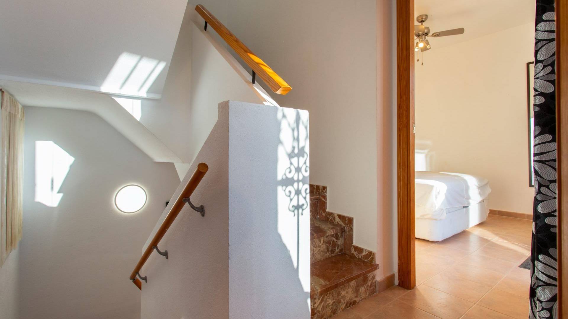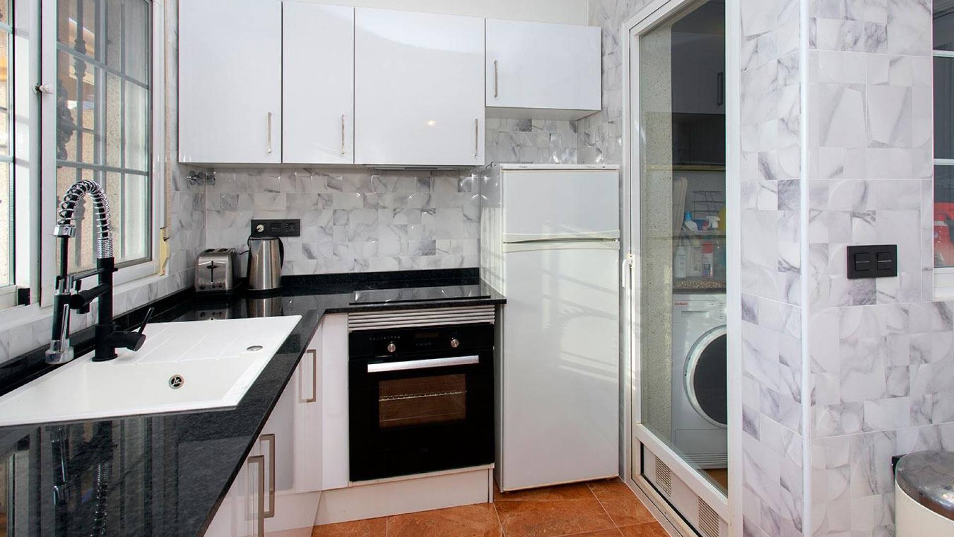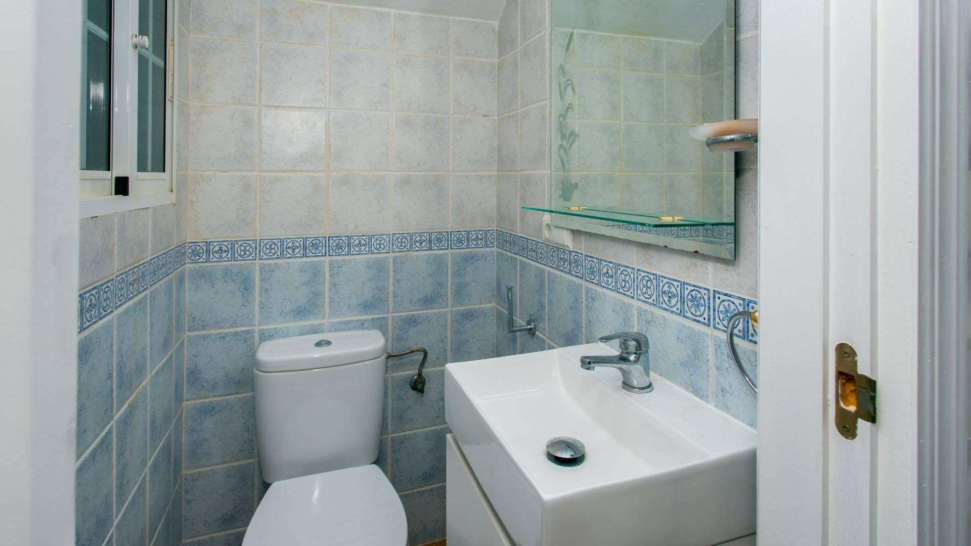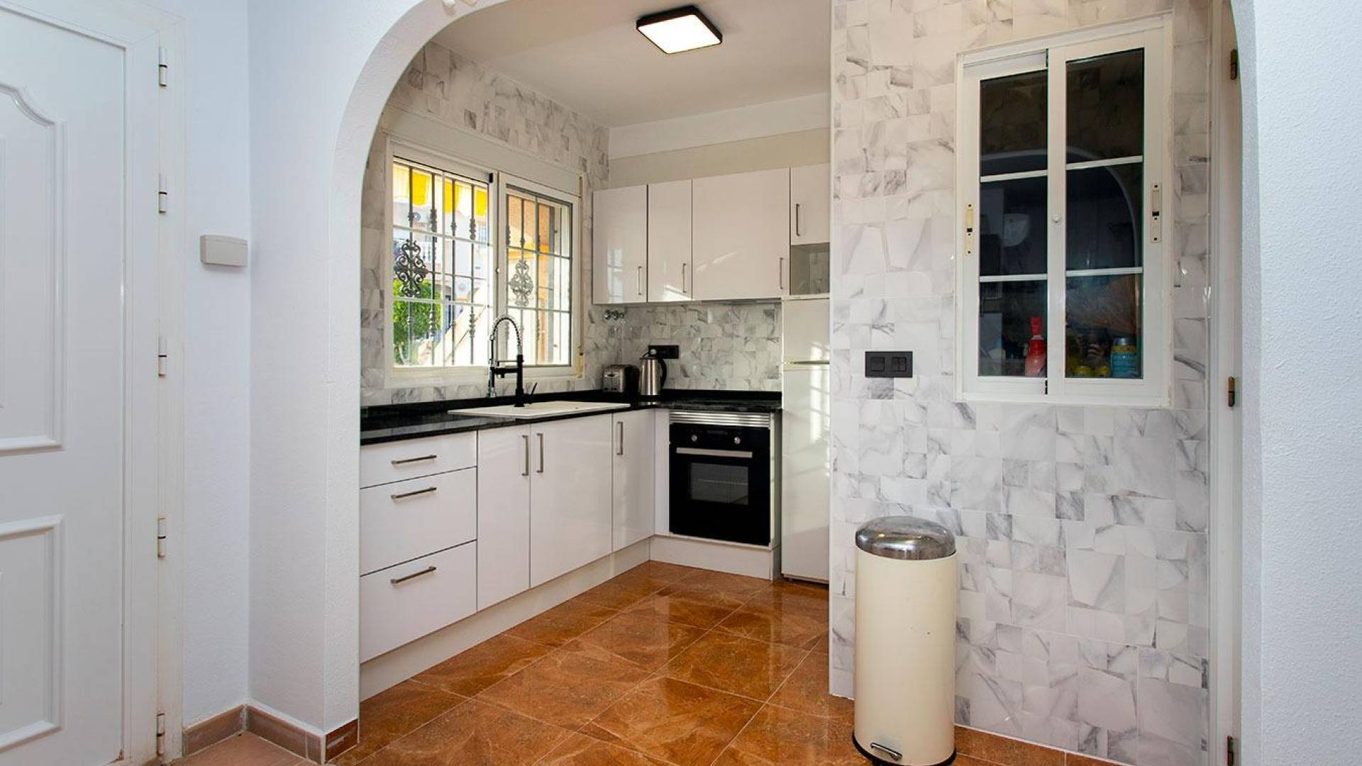 MEERBLICK · PRIVATE DACHTERRASSE · SÜDAUSRICHTUNG Reihenhaus mit 2 Schlafzimmern in Las Filipinas, Villamartin, Orihuela Costa. Renoviertes Eckreihenhaus aus dem Wiederverkauf mit 79 m² Wohnfläche, verteilt auf drei Ebenen (Baujahr 2003). Das Erdgeschoss umfasst eine geschlossene Terrasse und einen privaten Vorgarten, der mit einer großen Eckterrasse verbunden ist, sowie einen eingezäunten Seitenbereich, der als Parkplatz auf dem Grundstück und Grillzone genutzt wird. Im Inneren befinden sich ein kombinierter Wohn- und Essbereich mit offener amerikanischer Küche, ein Gäste-WC (ohne Dusche) und ein separater Abstellraum. Im ersten Obergeschoss gibt es zwei Doppelschlafzimmer mit Einbauschränken; eines davon hat direkten Zugang zu einem Balkon mit offenen, freien Ausblicken. Auf dieser Ebene befindet sich auch das Hauptbadezimmer mit Dusche. Das oberste Geschoss bietet eine Eck-Dachterrasse mit Meerblick und Panoramablick über die Umgebung. Zusätzliche Parkmöglichkeiten stehen in der Innenstraße zur Verfügung. Ca. 4,8 km vom Strand entfernt (etwa 15 Minuten mit dem Auto), sehr nahe am Golfplatz Villamartin und rund 45 Autominuten vom Flughafen. Keine touristische Lizenz vorhanden, keine rechtlichen Hinweise angegeben. Geeignet für ganzjähriges Wohnen oder als pflegeleichte Ferienimmobilie.