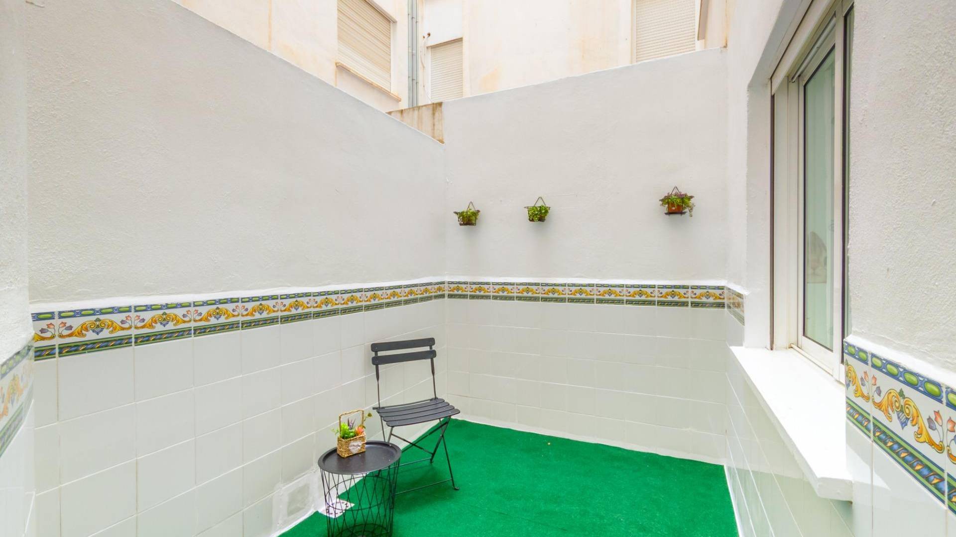 Wir präsentieren Ihnen diese helle und funktionale Wohnung in ausgezeichnetem Zustand in Torrevieja – nur 700 Meter vom Strand Playa del Cura entfernt. Torrevieja ist eine lebendige Küstenstadt an der Costa Blanca, bekannt für ihre zahlreichen Strände und ihr sonniges Klima das ganze Jahr über. Die Stadt ist sowohl ein beliebtes Urlaubsziel als auch ein attraktiver Ort zum dauerhaften Wohnen – mit stetig wachsender Infrastruktur. Die gesamte Wohnung verfügt über frisch renovierte Böden. Sie bietet ein geräumiges und lichtdurchflutetes Wohnzimmer mit offener Küche, die mit modernen Einbauschränken ausgestattet ist. Die Immobilie umfasst **3 Schlafzimmer und 2 Badezimmer**, beide komplett modernisiert und mit zeitgemäßer Ausstattung versehen. Zudem gibt es einen ruhigen Innenhof – ideal zum Entspannen. Ein eigener Abstellraum ist im Kaufpreis enthalten und befindet sich im selben Gebäude. Die Wohnung liegt im **Erdgeschoss** einer geschlossenen Wohnanlage und besticht durch ihre perfekte Lage: Alles Wichtige ist fußläufig erreichbar. Das Stadtzentrum von Torrevieja ist nur wenige Minuten entfernt, und zum Strand Playa del Cura sind es lediglich **700 Meter. Das Einkaufszentrum Habaneras erreichen Sie in etwa 5 Minuten. In unmittelbarer Umgebung finden Sie alle notwendigen Einrichtungen: Schulen, Geschäfte, Supermärkte, Apotheken, Banken – alles, was Sie brauchen, direkt vor der Tür. Torrevieja entwickelt sich kontinuierlich weiter: Neue Schulen, Sportkomplexe, Infrastrukturprojekte und moderne Wohnanlagen entstehen laufend. Gleichzeitig lockt die Stadt ganzjährig Touristen mit ihrem milden Klima und dem traumhaften Meereszugang. Verpassen Sie nicht diese Gelegenheit! Kontaktieren Sie uns noch heute und machen Sie Ihren Traum vom Leben an der Costa Blanca wahr!