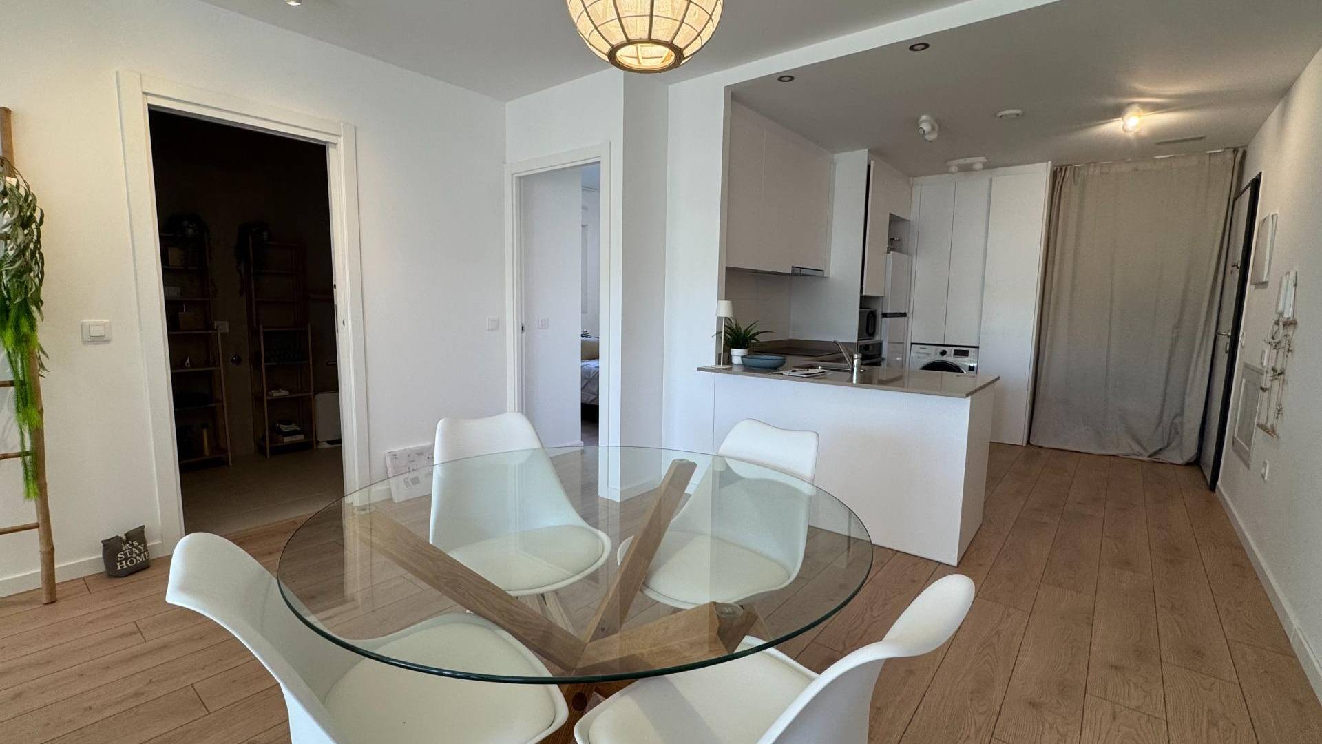 legantes Wohnen im Erdgeschoss in Mil Palmeras Entdecken Sie stilvolles Wohnen an der Küste in dieser wunderschönen 65 m² großen Eckwohnung im Erdgeschoss, die Komfort, Barrierefreiheit und Eleganz vereint. Die Wohnung ist vollständig barrierefrei und somit ideal für jede Lebensphase. Sie verfügt über zwei komfortable Schlafzimmer und ein modernes Badezimmer. Dank der Ecklage und Ost-Süd-Ausrichtung ist die Wohnung den ganzen Tag über lichtdurchflutet. Ein besonderes Highlight ist der private Garten, perfekt für entspannte Stunden im Freien. Die Immobilie befindet sich in einer gepflegten und hochwertigen Wohnanlage mit Gemeinschaftspool, Sonnenterrasse und Fitnessraum. Der Strand von Mil Palmeras ist nur 5 Autominuten entfernt. Die Wohnung ist in sehr gutem Zustand, bezugsfertig, mit Klimaanlage und Einbauschränken. Ein privater Stellplatz und Abstellraum sind inklusive.