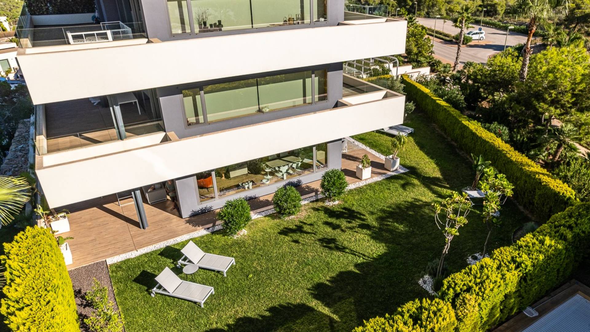 Außergewöhnliche Erdgeschosswohnung, Madroño Community, Las Colinas Golf & Country Club Willkommen zum puren Luxusleben in einer der exklusivsten Wohnanlagen von Las Colinas. Diese Erdgeschossresidenz aus dem Jahr 2021 ist anders als alles, was Sie bisher gesehen haben. Ein Zuhause, das den Komfort einer Villa mit der Leichtigkeit des Wohnens in einer Wohnung verbindet. Dieses Anwesen verfügt über drei geräumige Schlafzimmer und zwei elegante Badezimmer und ist mit außergewöhnlichen Materialien und feinster Handwerkskunst der Region ausgestattet. Jedes Detail ist perfekt, vom intelligenten Domotiksystem zur Steuerung von Jalousien, Beleuchtung, Klimaanlage und Rollläden bis hin zur Fußbodenheizung in den Badezimmern und einer hochmodernen, voll ausgestatteten offenen Küche. Treten Sie hinaus und entdecken Sie Ihr eigenes privates Paradies. Ein vollständig angelegter Garten von ca. 360 m² bietet Privatsphäre und Ruhe. Überdachte Terrassen erweitern Ihren Wohnraum nach draußen. Ein erstklassiger Whirlpool lädt zum Entspannen ein und bietet einen atemberaubenden Blick auf Golf und Meer. Die Wohnung ist komplett mit exklusiven, hochwertigen Designermöbeln möbliert und sofort bezugsfertig. Die Barrierefreiheit ist nahtlos, alles ist für alle Altersgruppen konzipiert und vollständig rollstuhlgerecht. Die renommierte Madroño-Gemeinde selbst bietet erstklassige Einrichtungen, darunter einen Infinity-Außenpool mit Blick auf den Golfplatz, ein Spa und Fitnessstudio sowie einen beheizten Innenpool, der das ganze Jahr über für Wellness und Entspannung sorgt. Über den Las Colinas Golf & Country Club Las Colinas ist ein preisgekröntes Resort, das regelmäßig zu den besten Golf- und Wohnanlagen Europas zählt. Eingebettet in ein 330 Hektar großes Tal zwischen sanften Hügeln und einem geschützten Naturpark bietet es unvergleichliche Privatsphäre und Sicherheit. Der Meisterschaftsgolfplatz gilt als einer der besten Spaniens. Die Bewohner genießen Zugang zu exklusiven Dienstleistungen, gehobener Gastronomie, einem Strandclub und einem Lebensstil, der Eleganz, Natur und Freizeit in den Mittelpunkt stellt. Dies ist nicht nur eine Wohnung, es ist ein Lebensstil. Mit seinem villenähnlichen Ambiente, der unvergleichlichen Ausstattung und der unschlagbaren Lage definiert es Luxus an der Costa Blanca neu. Verpassen Sie nicht Ihre Chance, dieses Meisterwerk zu besitzen. Kontaktieren Sie uns noch heute, um Ihre private Besichtigung zu vereinbaren und die Magie von Las Colinas selbst zu erleben.