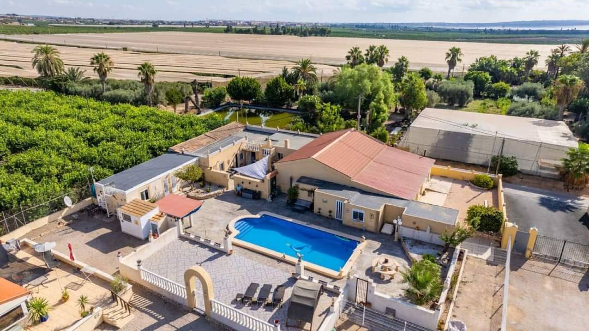 TRAUMHAUS im schönen Los Montesinos, Alicante, Spanien! Diese einzigartige Finca/Villa ist eine fantastische Gelegenheit, in Ihr Traumhaus mit unzähligen Möglichkeiten zu investieren! Das Haus ist 382m2 groß und seine Einrichtungen wirken gepflegt und modern mit traditionellem spanischen Charme. In Los Montesinos können Sie die spanische Umgebung und Ruhe in vollen Zügen genießen und sind dennoch in der Nähe aller Einrichtungen und Dienstleistungen. Diese Finca/Villa ist perfekt für diejenigen, die beispielsweise ein Bed & Breakfast oder einen etablierten Campingplatz betreiben möchten. Es gibt zwei Pools, von denen einer derzeit vom jetzigen Eigentümer genutzt wird und der andere als Poolbereich für ein mögliches B&B oder Camping dient, mit wirklich schönen Bereichen für viele gesellige Zusammenkünfte und Grillabende. Hier erhalten Sie eine wirklich gute Investition mit der Möglichkeit, Campingplätze und Bed & Breakfast zu mieten! In der Privatvilla finden Sie 3 Schlafzimmer und 4 Badezimmer mit Zugang zum 6x11 Meter großen Privatpool. Im Mietteil finden Sie einen geschlossenen Pool und insgesamt 40 Betten, 12 Toiletten und 7 Badezimmer. Das Grundstück von 7700m2 enthält ein üppiger Garten mit wunderschönen Bäumen, Pflanzen und Sitzgelegenheiten im Freien, die alle eine schöne und ruhige Oase mit Blick auf die Umgebung bieten. 6 Wohnwagen (davon 2 zur Langzeitmiete) von jeweils 30 m2 Darüber hinaus bietet dieses fantastische Haus und Grundstück: Eine 40 m² große Bar, in der Familie und Gäste an den vielen schönen sonnigen Tagen und Abenden zu festlichen Zusammenkünften zusammenkommen. Große Vorteile dieser Immobilie; Kostenloser Strom, da auf dem Dach eine Solaranlage vorhanden ist – kann 5,5 kW pro Stunde erzeugen. Privat verbrauchen Sie also kostenlos Strom – gleichzeitig können Sie jedem Nutzer in jedem Wohnwagen die Miete elektronisch in Rechnung stellen. Mietwohnwagen; derzeit etabliert mit 2 langfristigen Mietverträgen für 700 Euro + Strom pro Monat. 4 Wohnwagen mit 97 Euro + Strom pro Tag. Großer Parkplatz für mehrere Fahrzeuge. Teilmöbliert Zusätzliche Ausstattung: Klimaanlage, Zentralheizung und viele weitere Einrichtungen. Ausrichtung: Südlage Los Montesinos liegt in der Nähe fantastischer Strände, Golfplätze, Restaurants und Geschäfte. Entfernungen: 2 km nach Los Montesinos 14 km nach Torrevieja 4 km bis zur Autobahn 54 km zum Flughafen Alicante Angebotspreis 900.000 € exkl. MwSt Gerne können Sie uns endlich für weitere Informationen und eine private Besichtigung kontaktieren