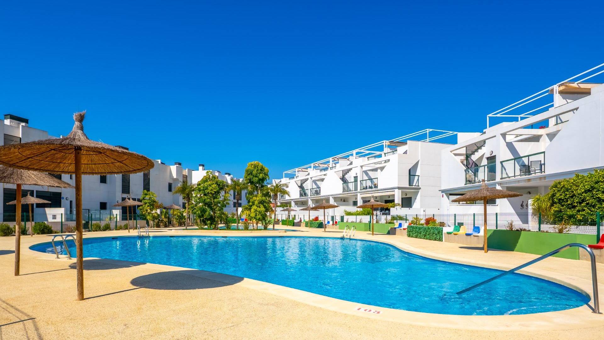 Wir präsentieren dieses moderne Apartment in einer geschlossenen Wohnanlage mit Garten und Schwimmbad, nur 700 Meter von einem der besten Strände von Mil Palmeras entfernt, in der prestigeträchtigen Gegend von Orihuela Costa. Diese sehr gefragte Wohnlage ermöglicht es Ihnen, das Mittelmeerklima, Ruhe und einen aktiven und gesunden Lebensstil zu genießen. Geräumiges, helles und sehr gemütliches Apartment, mit einer großen nach Süden ausgerichteten Terrasse mit Blick auf den Park und das Meer – perfekt zum Entspannen und Genießen der Sonne. Das moderne Wohnzimmer ist kombiniert mit dem Essbereich und der offenen Küche, ausgestattet mit modernen Möbeln und Geräten. Das Apartment verfügt über 2 Schlafzimmer mit Einbauschränken, 2 Badezimmer und einen privaten Abstellraum, ideal zur Aufbewahrung. Ein privater Parkplatz ist ebenfalls inklusive. Dieses Apartment vereint Strand, Komfort und Bequemlichkeit: nur 700 Meter bis zum Meer, mit Supermärkten, Restaurants und allen Dienstleistungen in der Nähe, und nur 10 Minuten mit dem Auto zum Einkaufszentrum Zenia Boulevard. Alles in einer ruhigen und sicheren Umgebung, ideal für komfortables Wohnen. Mit über 300 Sonnentagen im Jahr und mildem Klima lädt jeder Tag zu Strandspaziergängen, Outdoor-Aktivitäten, Wassersport, Golf und gesellschaftlichem Leben ein. Perfekt für Familien, Senioren oder alle, die einen ruhigen und exklusiven Lebensstil am Meer suchen. Der Preis der Immobilie enthält nicht die Kosten für Notar, Registrierung oder anfallende Steuern, die nach den geltenden Vorschriften der Comunidad Valenciana variieren.