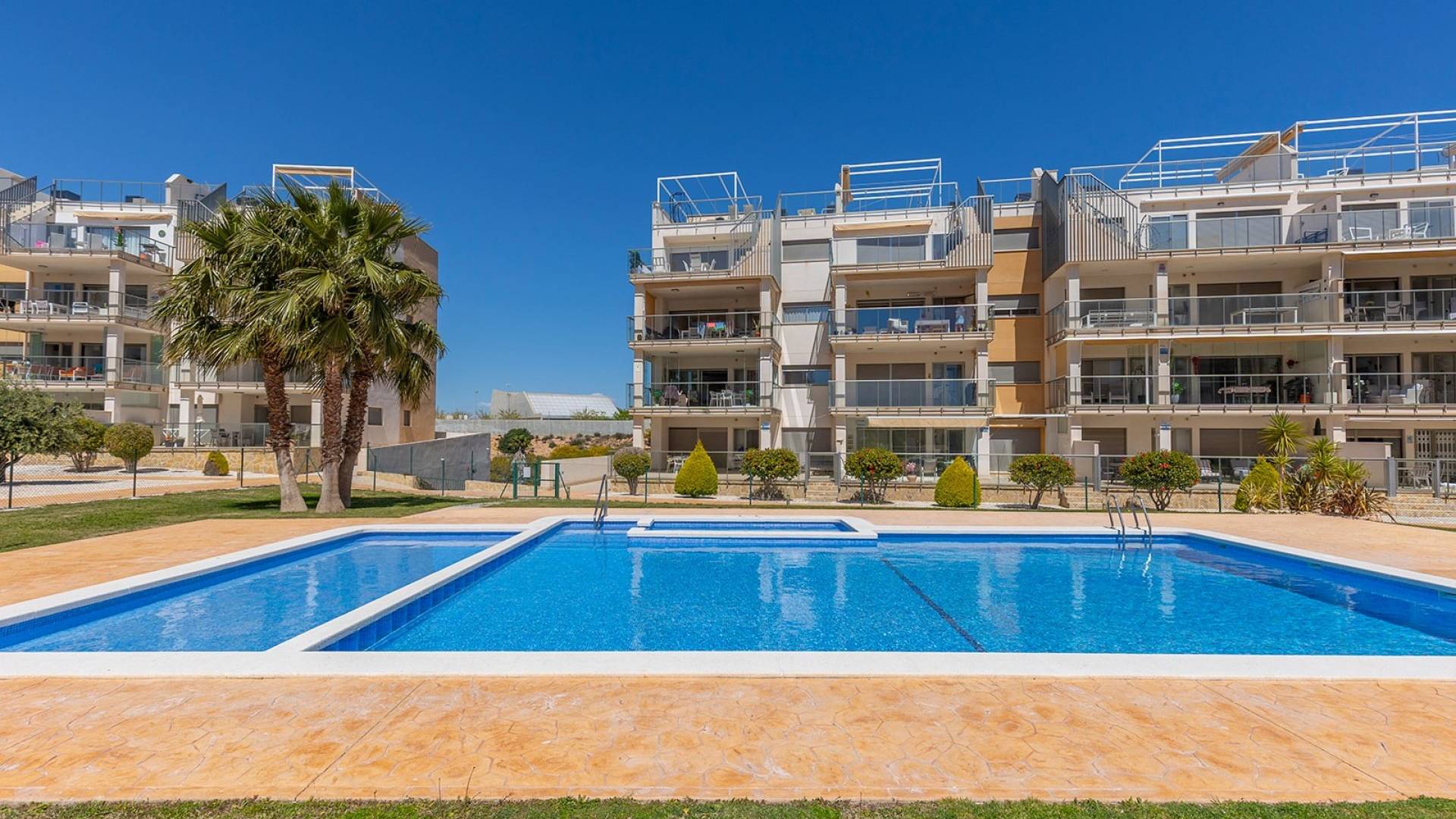 Entdecken Sie diese moderne und elegante Wohnung, die vollständig bezugsfertig ist und sich im beliebten Stadtteil Villamartín befindet. Die Wohnung verfügt über 2 geräumige Schlafzimmer und 2 stilvolle Badezimmer, von denen eines en suite ist, und wurde mit hochwertigen Materialien ausgestattet. Das lichtdurchflutete Wohnzimmer bildet zusammen mit der geräumigen, modernen offenen Küche eine perfekte Umgebung für komfortables und zeitgemäßes Wohnen. Sowohl das Wohnzimmer als auch die Küche, die über einen separaten Hauswirtschaftsraum verfügt, bieten direkten Zugang zu einer großzügigen Terrasse, ideal, um das ganze Jahr über das mediterrane Klima zu genießen. Dank der hervorragenden Südausrichtung profitiert die Wohnung den ganzen Tag über von natürlichem Licht. Darüber hinaus verfügt die Wohnung über einen Tiefgaragenstellplatz und einen Abstellraum, was für zusätzlichen Komfort und Funktionalität sorgt. In einer exklusiven und ruhigen Wohnanlage gelegen, können Sie drei Gemeinschaftspools genießen, von denen einer überdacht und beheizt ist, sowie weitläufige, sorgfältig gepflegte Gärten mit Palmen und mediterraner Bepflanzung, die eine idyllische Atmosphäre schaffen. Zudem sind Bouleplätze, Fitnessgeräte und ein Spielplatz vorhanden. Villamartín ist bekannt für seinen prestigeträchtigen 18-Loch-Golfplatz und seine charakteristische Plaza mit einer großen Auswahl an charmanten Restaurants und Bars. Nur wenige Minuten entfernt befinden sich Supermärkte, Geschäfte und das beliebte Open-Air-Einkaufszentrum La Zenia Boulevard, sodass alle Annehmlichkeiten in unmittelbarer Nähe liegen. Zudem liegt der wunderschöne Strand von La Zenia nur 2,6 km entfernt – ideal für alle, die Sonne, Meer und Strand genießen möchten. Die Lage ist also hervorragend, und die Flughäfen von Alicante und Murcia sind in etwa 50 bzw. 40 Autominuten zu erreichen, was für eine ausgezeichnete Erreichbarkeit sorgt. Eine einmalige Gelegenheit, perfekt als Ferienunterkunft, ständiger Wohnsitz oder Investition an der Costa Blanca.