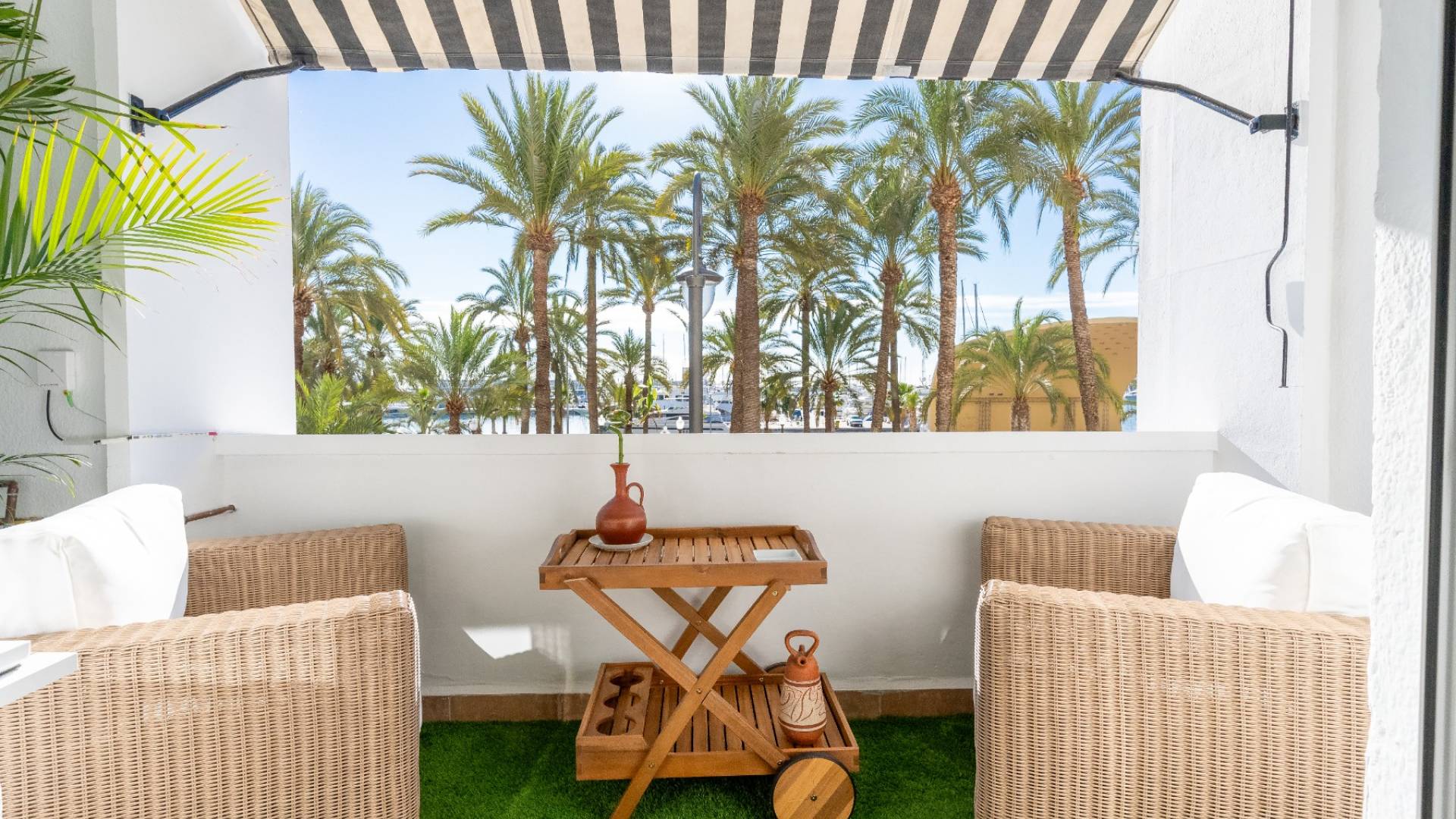 Das Herzstück der Immobilie ist ein großzügiger Wohn- und Essbereich voller natürlichem Licht, der sich als offener und fließender Raum über einen eleganten privaten Balkon nach außen erweitert. Von hier aus verwandelt der Blick auf die ikonische Explanada jeden Moment in ein besonderes Erlebnis.