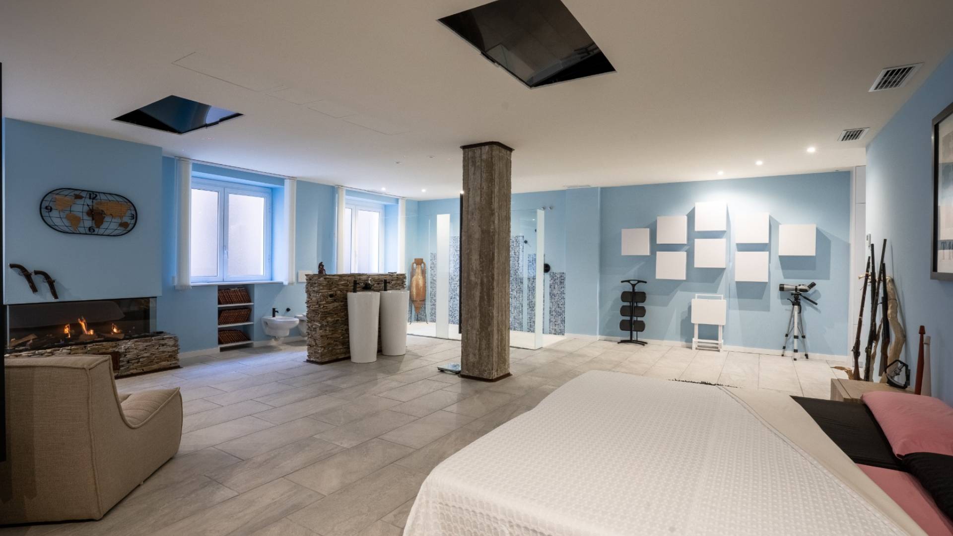 Der Schlafbereich bietet höchste Privatsphäre. Die Immobilie verfügt über zwei Schlafzimmer, darunter eine beeindruckende Master-Suite von ca. 55 m². Ein privater Rückzugsort, der Raum, Design und Komfort vereint, mit en-suite Badezimmer und einer ruhigen Atmosphäre zur Erholung. Ein zweites Schlafzimmer sowie ein zusätzliches Badezimmer bieten Flexibilität.