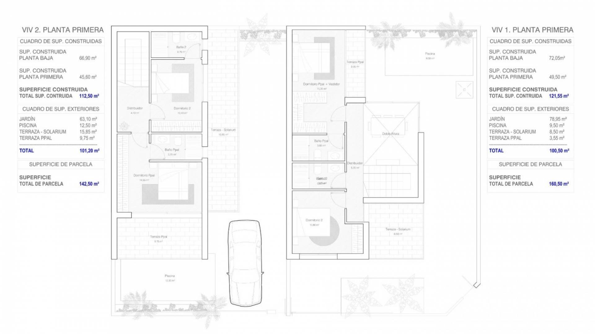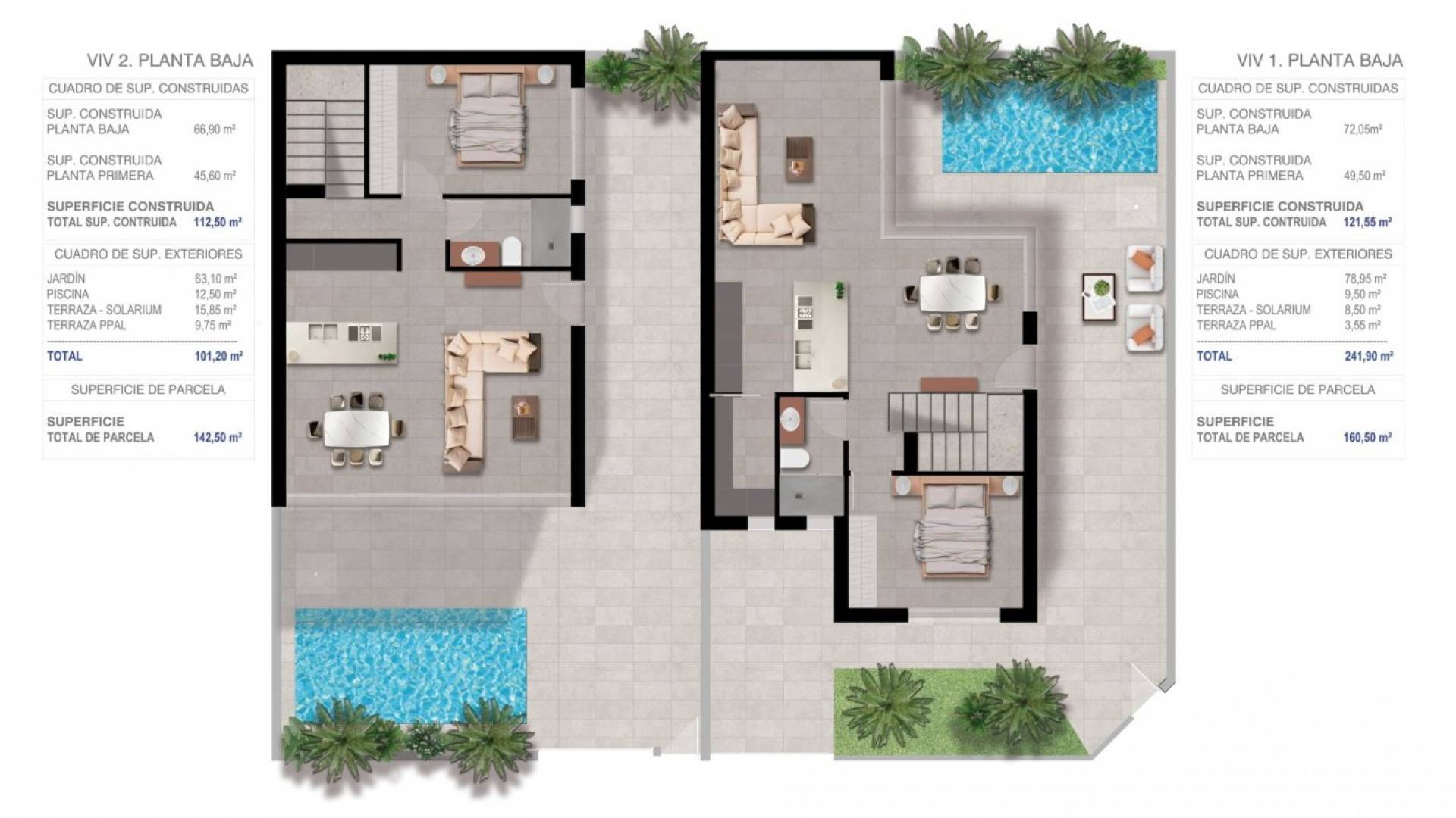 NEUBAU VILLEN IN SAN PEDRO DEL PINATAR Neubau von 2 Villen in San Pedro del Pinatar. New Build moderne Villen verfügt über 3 Schlafzimmer, 3 Bäder, offene Küche mit dem Wohnbereich, Einbauschränke, privater Garten mit dem Pool und Off-Road-Parkplatz, private Sonnenterrasse. Große Fenster im Wohnzimmer mit direktem Zugang zum Poolbereich. Villen in guter Lage zu Schulen, Geschäften, Sportzentren und öffentlichen Verkehrsmitteln Die privilegierte Lage von San Pedro del Pinatar am Mar Menor und an der Mittelmeerküste zieht alle an, die sich für Segeln und Wassersport interessieren, denn es gibt Anlegestellen im Hafen und Segelclubs. San Pedro del Pinatar hat eine etablierte Gemeinde und bietet ein ausgezeichnetes Angebot an Aktivitäten, darunter ein überdachtes Schwimmbad und Sporteinrichtungen, sowie ein ganzjähriges Programm an sozialen Aktivitäten bei angenehmem Winterwetter. Die Vorzüge der für die Region typischen Schlammbäder oder des ruhigen Wassers des Mar Menor haben das Wachstum von Lo Pagán begünstigt, das heute über alle möglichen Annehmlichkeiten verfügt. Außerdem hat es eine ausgezeichnete Lage, nur 5 Minuten vom Einkaufszentrum Dos Mares entfernt. Der Flughafen Murcia/Corvera ist 30 Minuten und der Flughafen Alicante eine Autostunde entfernt.