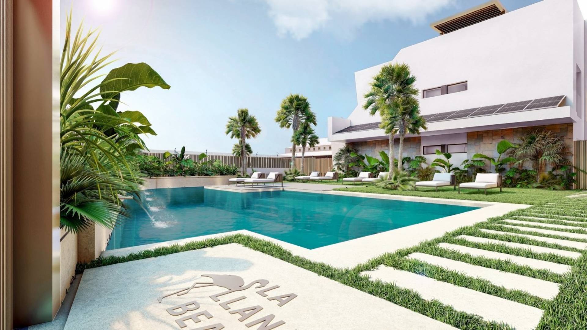 BUNGALOW PLANTA BAJA EN SAN PEDRO DEL PINATAR Vivienda completamente equipada, a tan solo dos minutos a pie del centro de la localidad de San Pedro del Pinatar. La vivienda tiene tres dormitorios, dos baños y una amplia zona de día con una amplia cocina y un salón-comedor que da a la terraza. Las habitaciones son amplias y llenas de luz natural con un toque elegante, que aportan comodidad a los hogares. El dormitorio principal, con su baño y celosía traslúcida que deja pasar la luz también desde la terraza. El baño está equipado con un amplio espacio de almacenamiento y una ducha con una zona de estar incorporada. El tercer dormitorio se ubica hacia la fachada principal y es una sala polivalente. Un sistema de cama plegable permite su uso como dormitorio o sala multifunción cuando no se utiliza la cama. Está diseñado para que se pueda utilizar una gran puerta corredera para cerrar este espacio o, alternativamente, tirar hacia atrás para unir esta habitación a la sala de estar y aumentar su tamaño. Las áreas comunes disfrutan de la máxima exposición al sol, mientras que la piscina tiene un mecanismo de nado a contracorriente y agua caliente, lo que permite a los residentes nadar desde abril hasta noviembre. Los paneles solares ahorran energía, lo que hace que el complejo sea una opción más sostenible. Los residentes pueden disfrutar del jacuzzi o tomar el sol en el área de la piscina rodeada de vegetación, diseñada para asegurar la máxima privacidad, mientras que materiales especiales efecto roca garantizan ese efecto visual de conexión con la naturaleza. Magnífica zona ajardinada con césped artificial y abundante vegetación en las zonas comunes que se combinan para garantizar la privacidad. Zona de descanso con gres porcelánico antideslizante y zonas de paso con grandes losas de hormigón. Piscina con acabado de gresite y sistema depurador de cloro, zona 'playa', jacuzzi, cascada y mecanismo de nado a contracorriente. Calentador de agua para permitir el uso de la piscina de abril a noviembre, funciona con energía de paneles solares. Situado en un entorno urbano lleno de servicios a los que se puede llegar a pie, sin necesidad de vehículos: comercios, bancos, cafeterías, farmacias, restaurantes, centros médicos. Además, San Pedro del Pinatar está justo en la costa y es completamente plano, por lo que es ideal para paseos largos en bicicleta o visitando nuevos lugares en bicicleta.