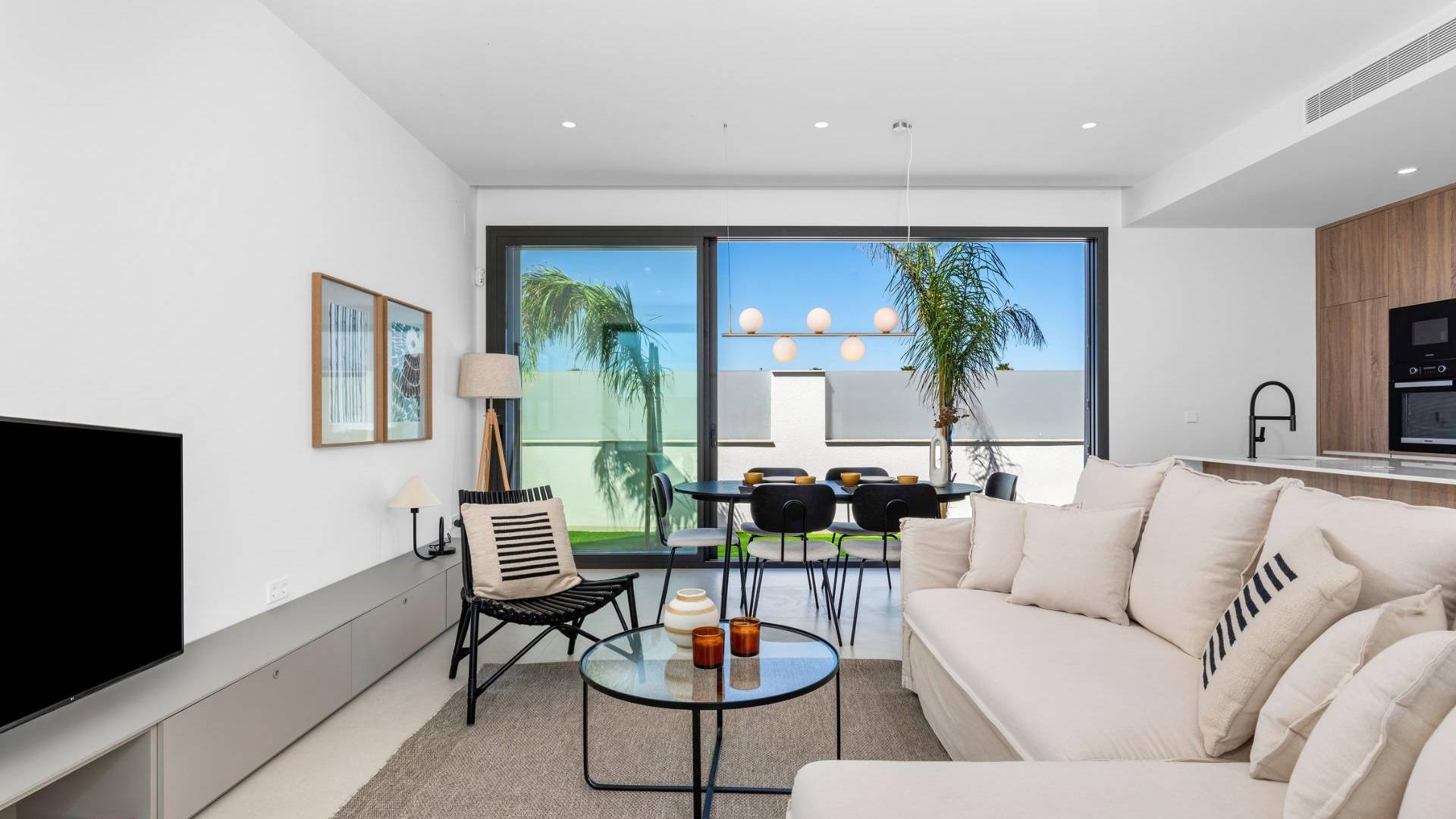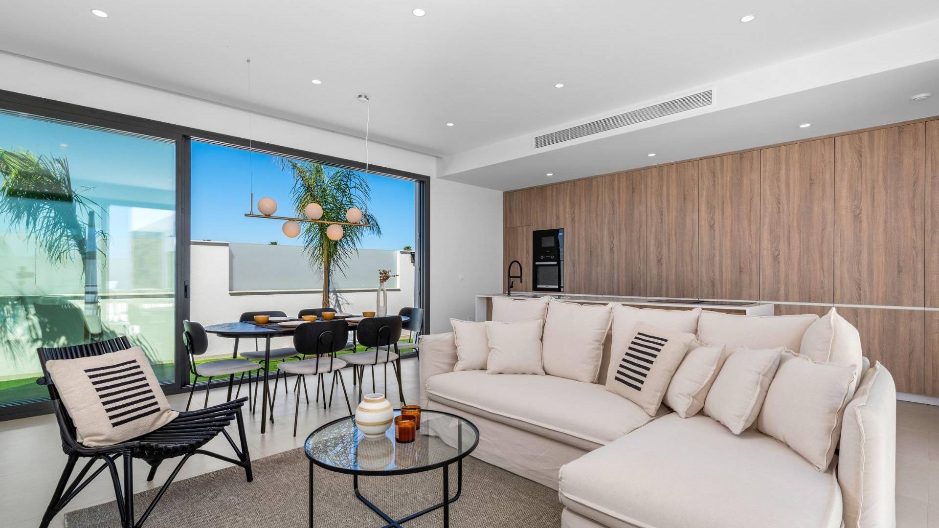 VILLAS DE OBRA NUEVA EN SAN JAVIER Residencial de obra nueva de villas en San Javier a 2.5 km de la playa. Villas construidas en 1 planta y consta de 3 dormitorios, 2 baños y 1 aseo, cocina americana, el salón con vistas abiertas a la terraza, jardín privado con la piscina y solarium. Cocina totalmente amueblada en color blanco brillo o madera incluye Placa de inducción con extractor integrado, horno, microondas, lavadora, frigorífico integrado y lavavajillas integrado. Instalación completa de Aire Acondicionado por conductos. La piscina tiene preinstalación para bomba de calor. San Javier está cerca de todos los servicios con fácil acceso a la playa, deportes acuáticos, tiendas y la red de transporte. Aquí se puede disfrutar de todas las instalaciones que San Javier tiene para ofrecer, como las tiendas locales, bares y restaurantes, así como estar cerca de centros comerciales, el aeropuerto de Murcia y todos los hermosos lugares que se encuentran a lo largo del Mar Menor. El aeropuerto de Corvera/Murcia está a 30 minutos y el aeropuerto de Alicante a 45 minutos.