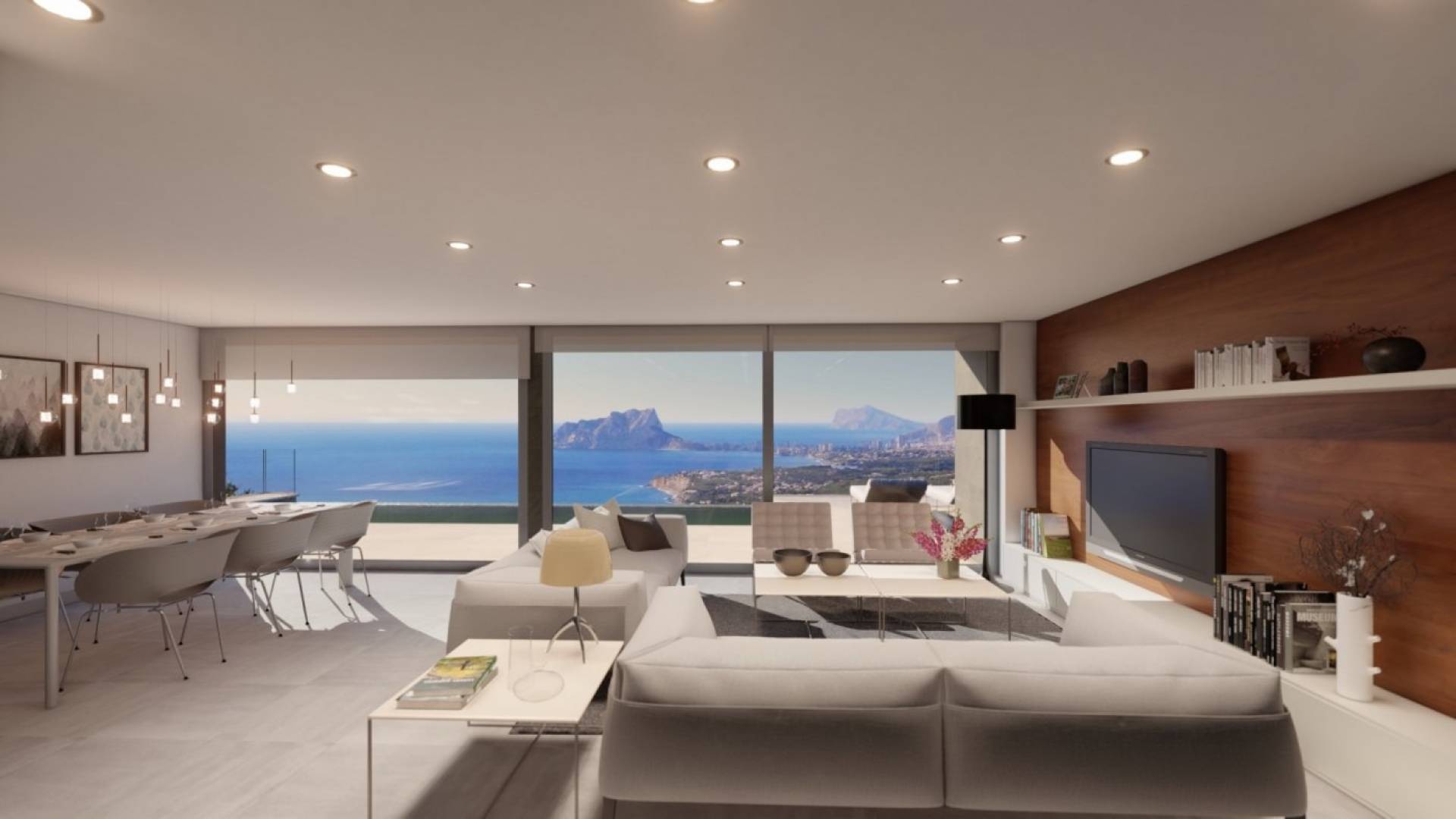 VILLA DE OBRA NUEVA CON VISTAS AL MAR EN CUMBRE DEL SOL En una preciosa y elevada ubicación, esta villa disfruta de una de las vistas más espectaculares de la Costa Blanca, vistas con el mar como principal protagonista, con el Peñón de Ifach y la belleza del interior. La villa cuenta con 3 dormitorios, uno de ellos con baño en suite y un amplio vestidor, desde el que se puede disfrutar de las maravillosas vistas al mar. En el exterior, los espacios han sido diseñados para disfrutar del benévolo clima mediterráneo, con varias opciones de ocio al aire libre, una gran terraza, una piscina infinita, barbacoa, zonas ajardinadas, porches y un comedor de verano. Más de 170 m² para disfrutar del sol de la Costa Blanca. Un chalet perfecto para convertirse en su nueva vivienda principal o para disfrutar del verano o de largas temporadas, con una planta principal ideal para una pareja, con su dormitorio en suite, comedor, cocina, aseo de cortesía, para disfrutar del día a día y una segunda planta con otros dos dormitorios, para los niños, las visitas, así como un sótano en la planta baja con una terraza privada ideal para diversos usos, gimnasio, despacho, sala de cine, etc. En el punto más oriental de la provincia de Alicante, España, se encuentra el complejo residencial Cumbre del Sol. Los residentes y huéspedes son los primeros en saludar al majestuoso sol cada mañana cuando sale sobre las tranquilas aguas del Mar Mediterráneo. Desde nuestro exclusivo mirador, en el punto más alto del municipio de Benitachell, Cumbre del Sol ofrece vistas panorámicas sobre el mar y los parques naturales que nos rodean desde Jávea hasta Moraira. Descubra nuestro exclusivo resort en la Costa Blanca y conozca nuestros maravillosos pisos y chalets de primera categoría, nuestras increíbles instalaciones deportivas y de ocio y nuestra completa gama de servicios para los afortunados que hagan de Cumbre del Sol su hogar. Villa situada a 65 minutos del aeropuerto de Alicante y a 1,5 horas del aeropuerto de Valencia.
