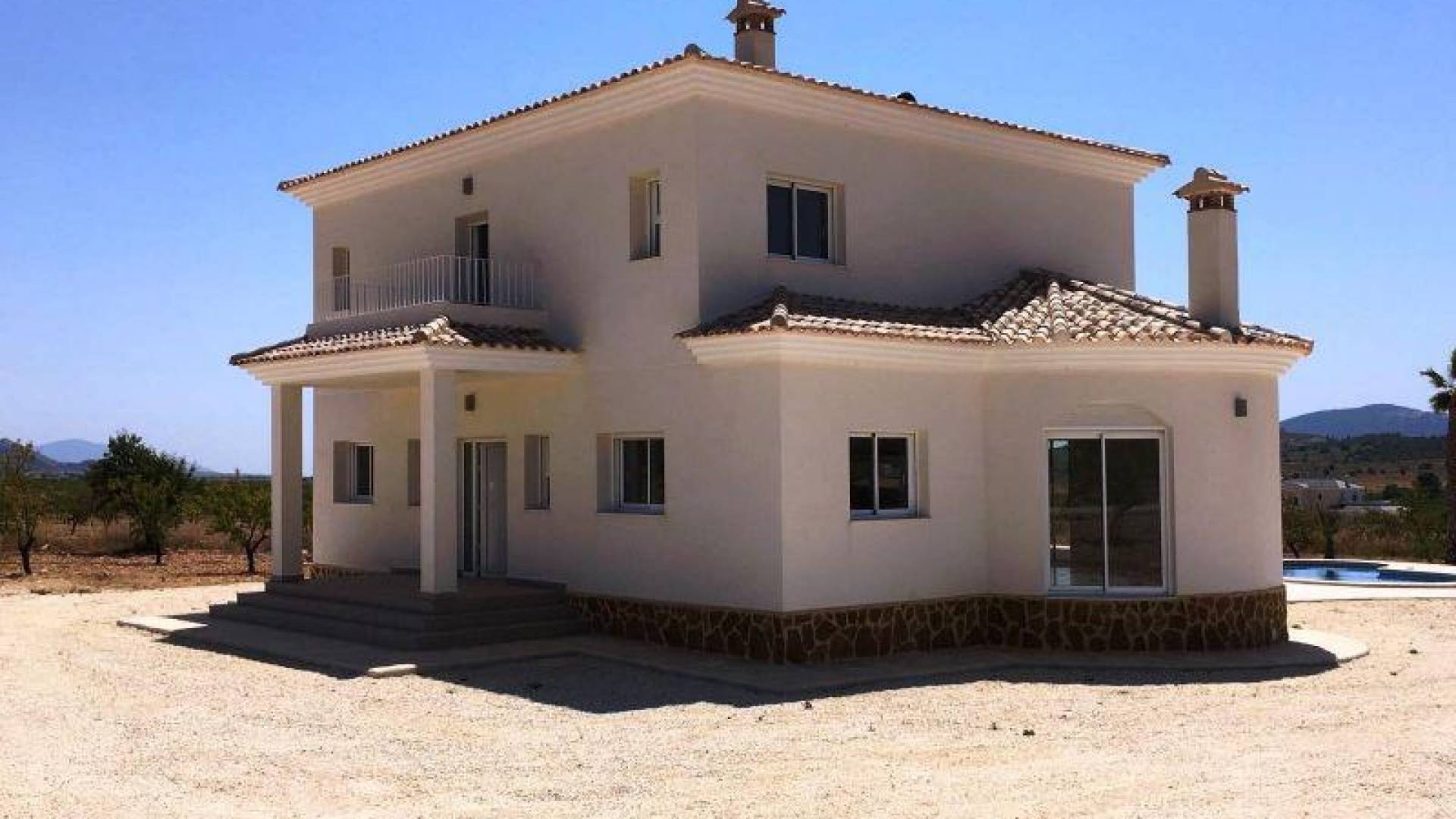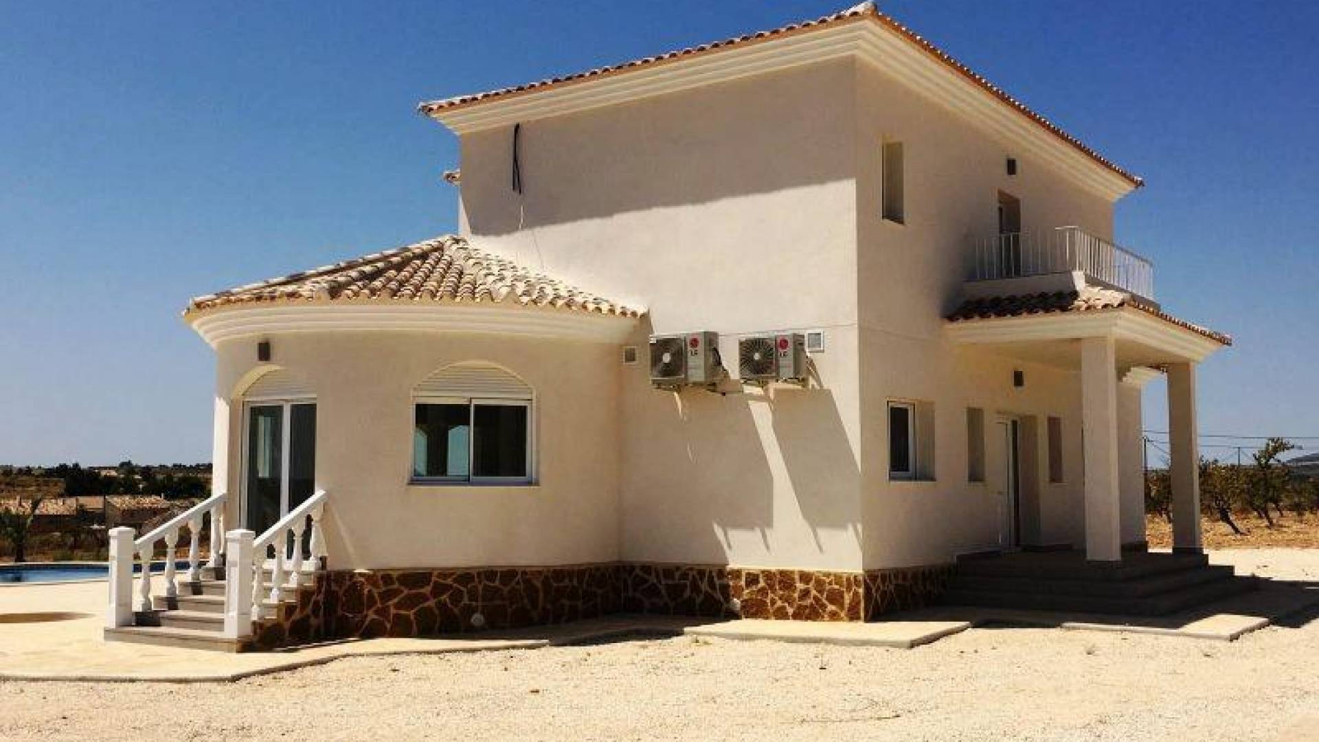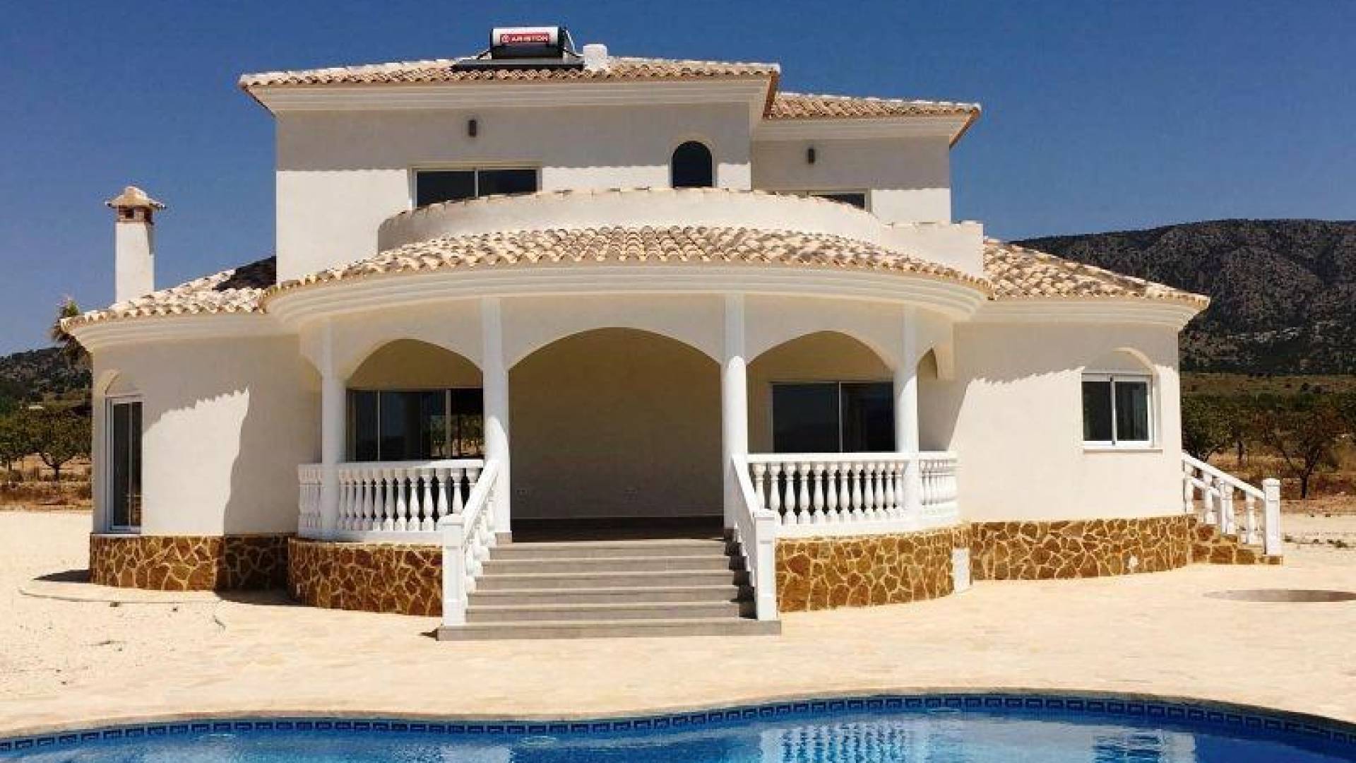 VILLA EN TIPICO PUEBLO ESPAÑOL Fantastico Chalet de Obra nueva construido sobre una parcela de 10.000 m2 en Pinoso. El chalet tiene una superficie construida de 235m2, repartidos de la siguiente forma: - Planta baja: dos porches de 6.55m2 y de 33.70m2, un salón-comedor-cocina de 51.85m2, una galeria,un trastero,un aseo, un dormitorio en suite con su cuarto de baño - Primera planta: 3 dormitorios, 1 baño, dos terrazas de 3.55m2 y de 9.70m2. Incluido en el precio: Pre-instalación aire acondicionado por conductos. Baños con mueble de baño con espejo, mampara y grifería Electrodomésticos: vitrocerámica, horno, extractor, lavavajillas Cocina con muebles blancos y granito nacional Led interior en toda la vivienda y en el porche Doble acristalamiento, puertas interiores y armarios empotrados blancos. Exterior sin césped ni plantas. Vallado con puerta vehículos automática y puerta peatonal. Piscina Si buscas un entorno tranquilo, cerca de pueblos tipicos españoles, rodeado de montañas, esta es tu casa!