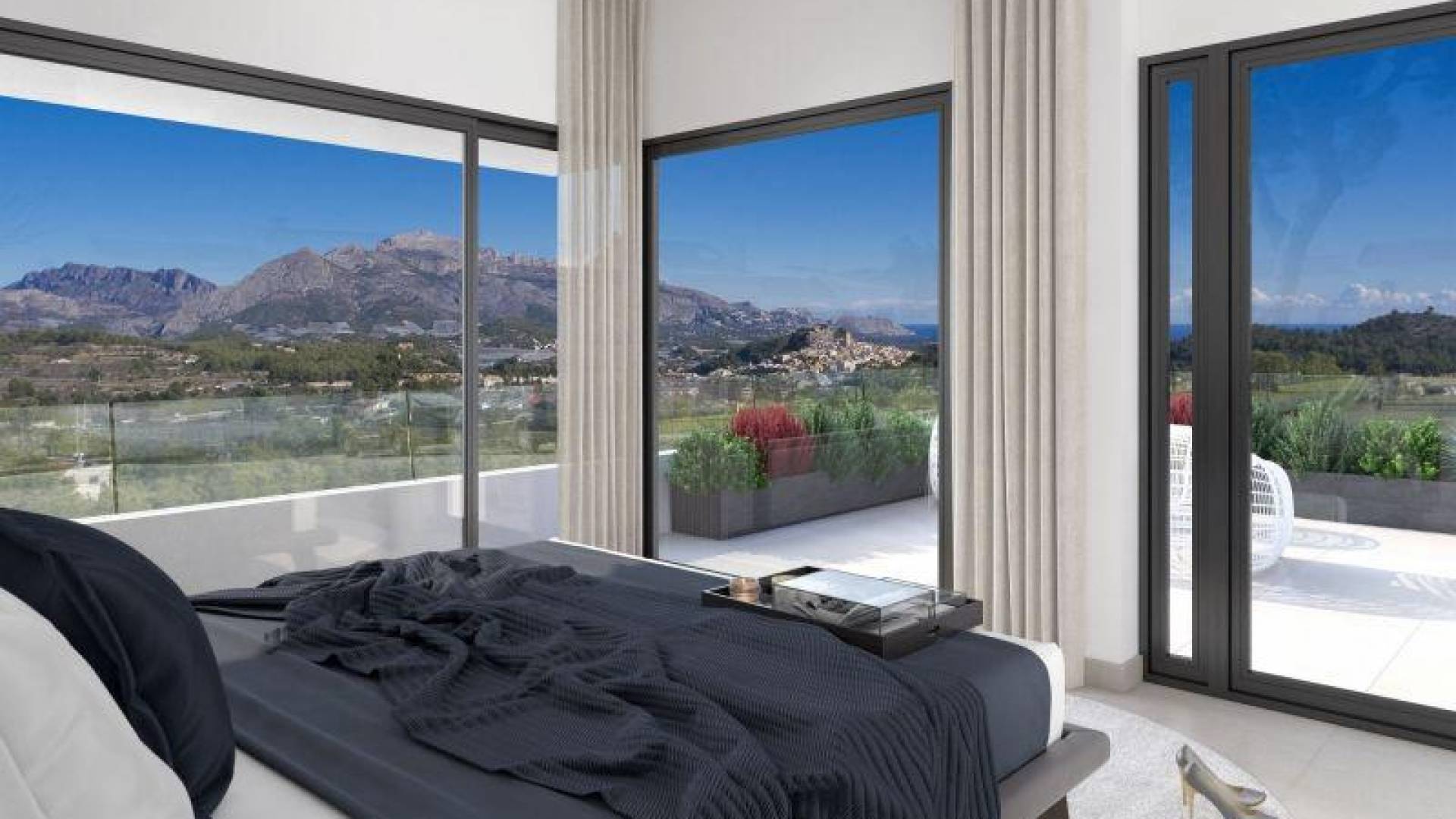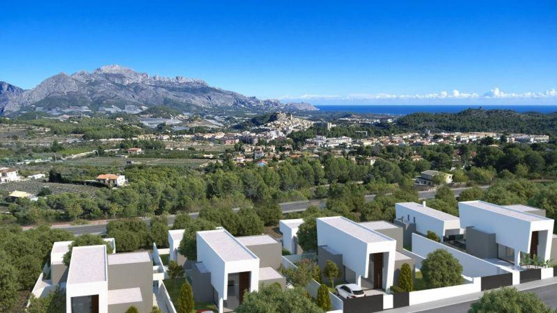 VILLAS MODERNAS DE OBRA NUEVA EN POLOP!!! Rodeado de pinos y custodiado por el Monte Ponoig, la urbanización ofrece la combinación ideal entre diseño, confort y naturaleza. Viviendas donde se vive bien todo el año. Para apreciar el encanto del medio ambiente tanto en invierno como en verano. Esta villa de una sola planta, construida sobre una parcela de 456 m2, posee una superficie construida de 199 m2 distribuida en salón-comedor-cocina abierta de 39 m2, 3 dormitorios, 2 cuartos de baño, terraza de 42 m2, Sótano de 33 m2. Villas de diseño vanguardista con piscina infinity, inspiradora, con vistas abiertas que preside una zona de relax con zona de barbacoa para sus fiestas y eventos o simplemente su día a día. Terminaciones de lujo con interiores acogedores enmarcados por grandes ventanales que dejan la luz inundar las habitaciones durante todo el día. Suelos de gres porcelánico de primeras marcas, ventanas de doble acristalamiento, persianas motorizadas y aislamiento térmico y acústico en suelos, paredes y ventanas para que su alojamiento ofrezca una excelente comodidad en todo momento. Incluidos: Calefactor de agua eléctrico con aerotermia Preinstalación de un punto de recarga para coche eléctrico Aire acondicionado por conductos Electrodomésticos: vitrocerámica, campana, lavavajillas, horno eléctrico, lavadora Piscina privada Área de estacionamiento para 2 vehículos Jardín con riego Puerta de entrada del vehículo corredizo y motorizado Ubicación privilegiada con caminos y rutas de montaña, Espacios Verdes, Cafetería y restaurantes a pocos metros. El centro de Polop a 15 min a pie o 4 minutos en coche. La Nucia a 10 min en coche. Las playas de Altea a 20 min en coche. Toda la oferta de ocio de Benidorm (parques temáticos, playa, clubs, restaurantes) a 20 min en coche.