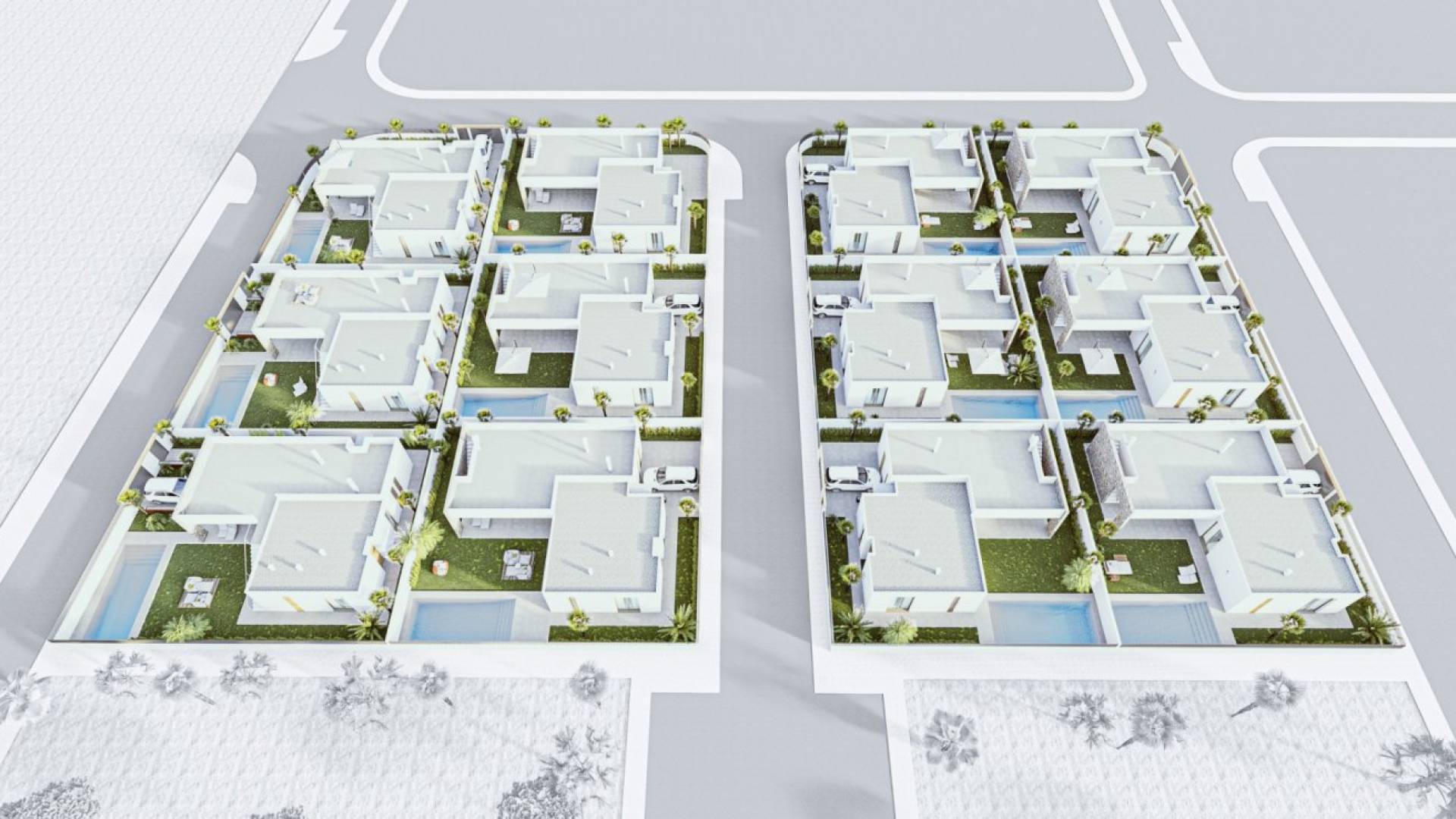 VILLAS DE OBRA NUEVA EN MAR DE CRISTAL Villa de nueva construcción de una sola planta con 3 dormitorios, 2 baños y solarium privado a 500 metros de las playas de Mar De Cristal. Las villas tienen una moderna cocina abierta con la sala de estar, donde las altas ventanas correderas tiene acceso al jardín con piscina privada y plaza de aparcamiento. Mar De Cristal es una ciudad costera en medio de la hermosa naturaleza y los parques naturales de los que se encuentran las fotos añadido. Este es uno de los lugares más bellos de España y del mundo entero. En Mar De Cristal encontrará algunos restaurantes agradables y un supermercado. Los bonitos restaurantes de Los Belones están a sólo 2 km's. Las playas de 36 km de La Manga están a 5 minutos en coche. El mágico Cabo de Palos y Portmán están a 5 minutos en coche. El gran centro comercial de Cartagena está a menos de 10 minutos en coche. El aeropuerto de Murcia Corvera está a 30 minutos, el aeropuerto de Alicante a 55 minutos.