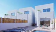 VILLAS PAREADAS DE OBRA NUEVA EN LOS ALCAZARES Villas pareadas de obra nueva en Los Alcazares . Villas de estilo ibicenco construidas en 2 plantas, dispone de 3 dormitorios, 2 baños, salón, cocina, terraza, zona de aparcamiento y piscina privada. Posibilidad de solarium privado con coste adicional. Viviendas cuidadosamente diseñadas con materiales de alta calidad para satisfacer a los clientes más exigentes. Villas situadas a 1 km de la playa y del pueblo de Los Alcázares, donde se pueden practicar diversos deportes náuticos, rodeados de varios campos de golf. Ciudad de Cartagena a menos de 15 minutos en coche y a 30 minutos del aeropuerto de Murcia Corvera.