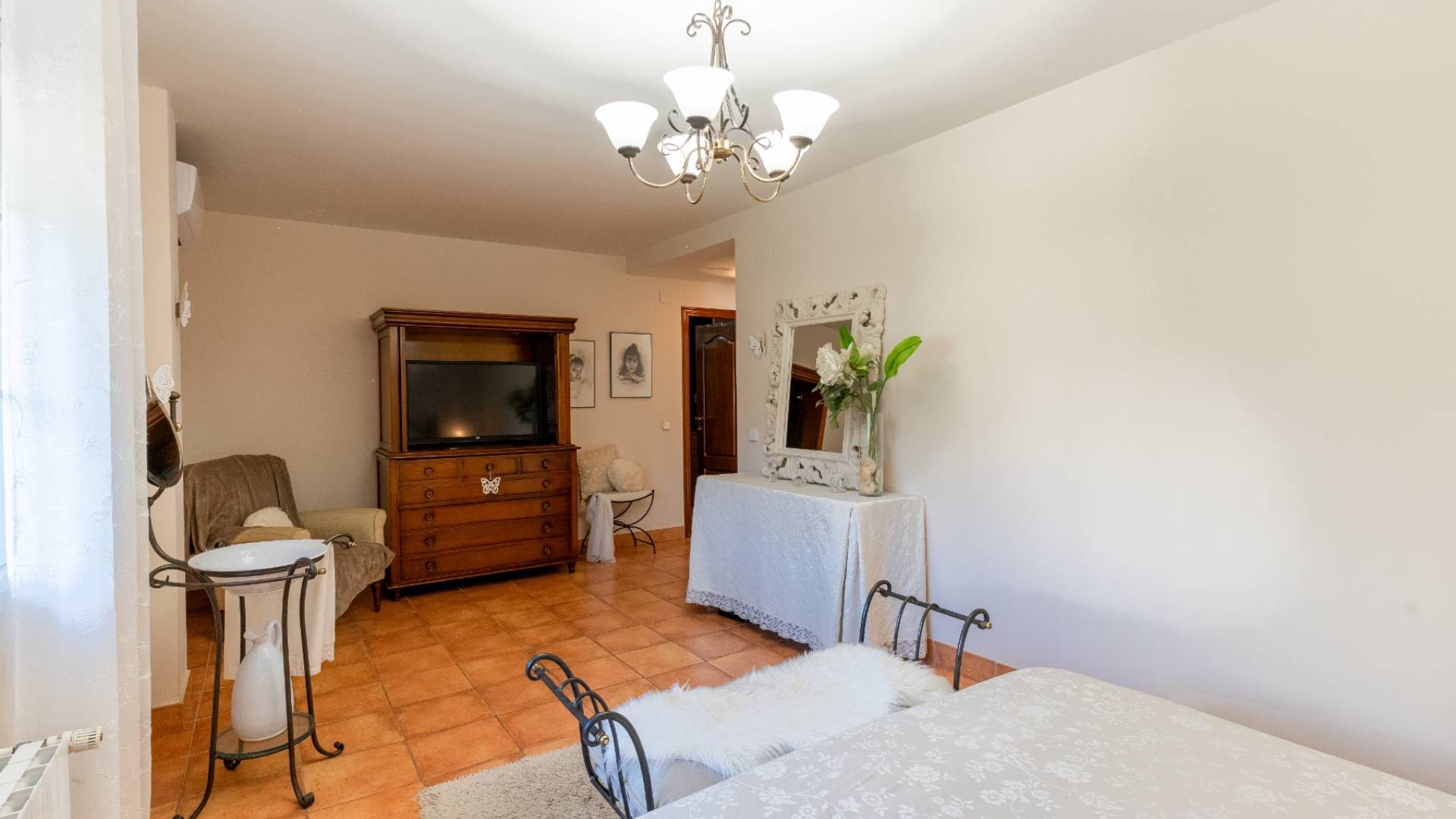 Pero eso no es todo. ¿Qué tal disfrutar de momentos de ocio y entretenimiento en los espacios exteriores? La terraza con zona porchada y barbacoa es perfecta para reuniones sociales al aire libre, mientras que los amplios jardines ofrecen un entorno tranquilo para relajarse y disfrutar del sol.