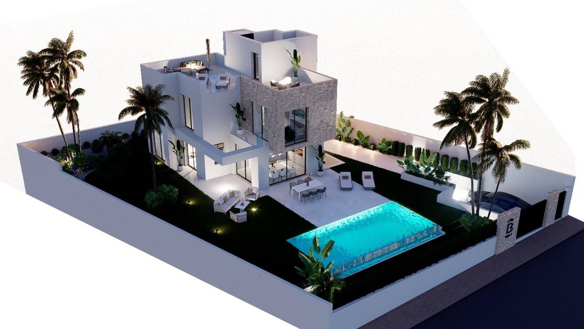 VILLAS DE OBRA NUEVA EN FINESTRAT Villas de obra nueva situados en Balcon de Finestrat. Nueva construcción de 15 villas de lujo totalmente independientes en un entorno único cerca de las mejores playas del Mediterráneo y de todos los servicios. Las villas se distribuyen en 2 plantas y disponen de 3 dormitorios, 3 baños, cocina americana con salón, armarios empotrados, solarium privado, jardín con piscina y aparcamiento para 2 coches. Un sótano opcional y ascensor a un costo adicional. Villas situadas cerca de 2 campos de golf, parques temáticos, un gran centro comercial y a pocos minutos de las playas de Benidorm. Finestrat situado en la comarca de la Marina Baixa de la Costa Blanca, cerca de la vecina Benidorm y a unos 40 kilómetros de la ciudad de Alicante y del aeropuerto internacional. Benidorm está a sólo cinco minutos en coche de las propiedades y ofrece todos los servicios que pueda necesitar, incluyendo tiendas, bares, restaurantes, supermercados, bancos, farmacias y varias escuelas privadas internacionales. Cerca de las playas de Levante, Poniente y Cala de Finestrat, con más de 6km de longitud que se encuentran entre las mejores de Europa galardonadas por la Unión Europea con Banderas Azules. Todos los servicios de ocio como los parques temáticos de Aqua Natura, Terra Mítica, Terra Natura, Aqualandia y Mundomar, los campos de Golf Sierra Cortina y Villaitana, senderismo y escalada en el Puig Campana un marco natural incomparable o disfrutar de los deportes náuticos.
