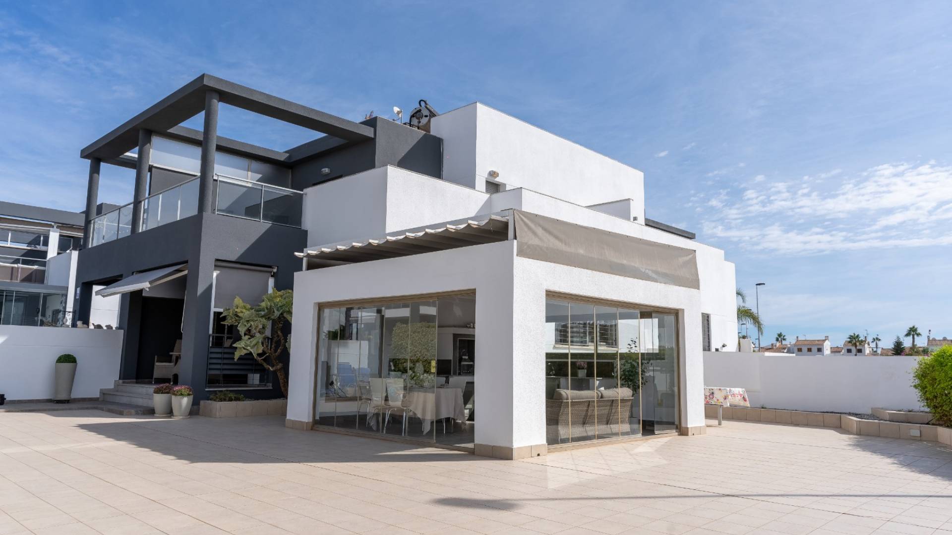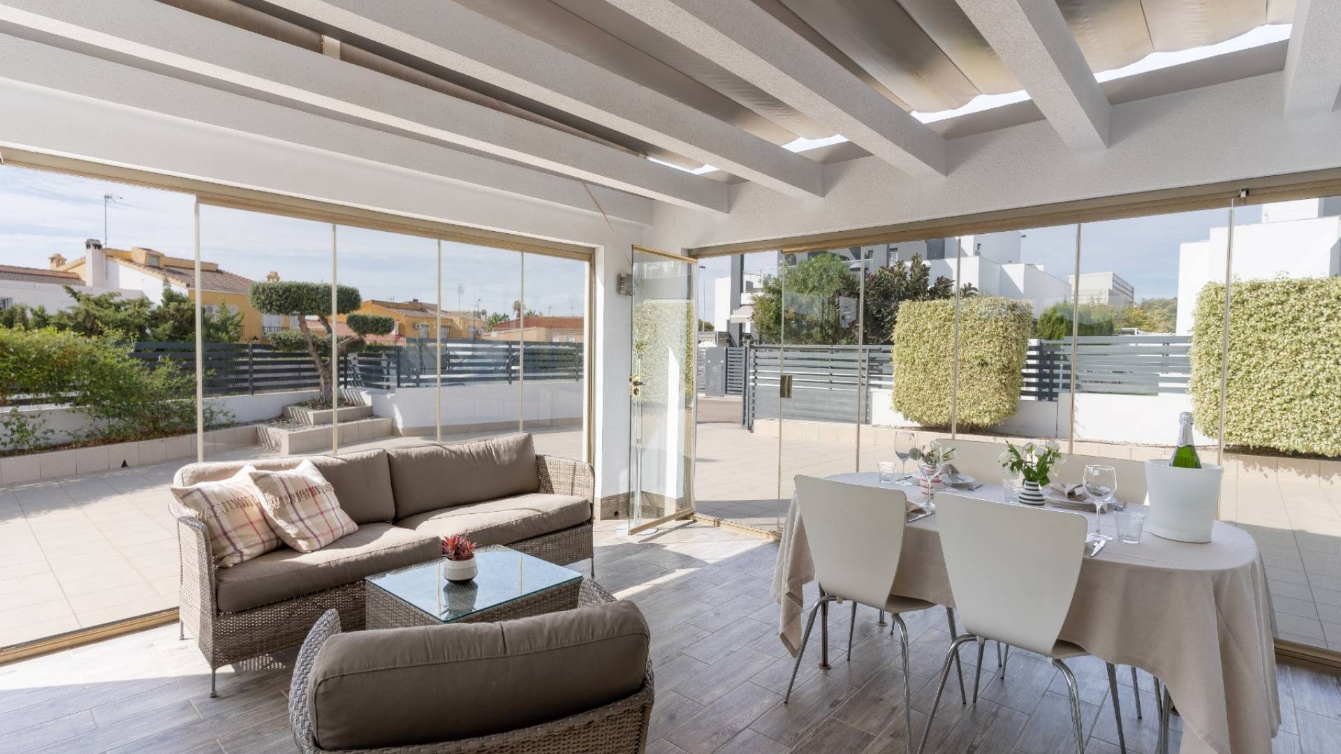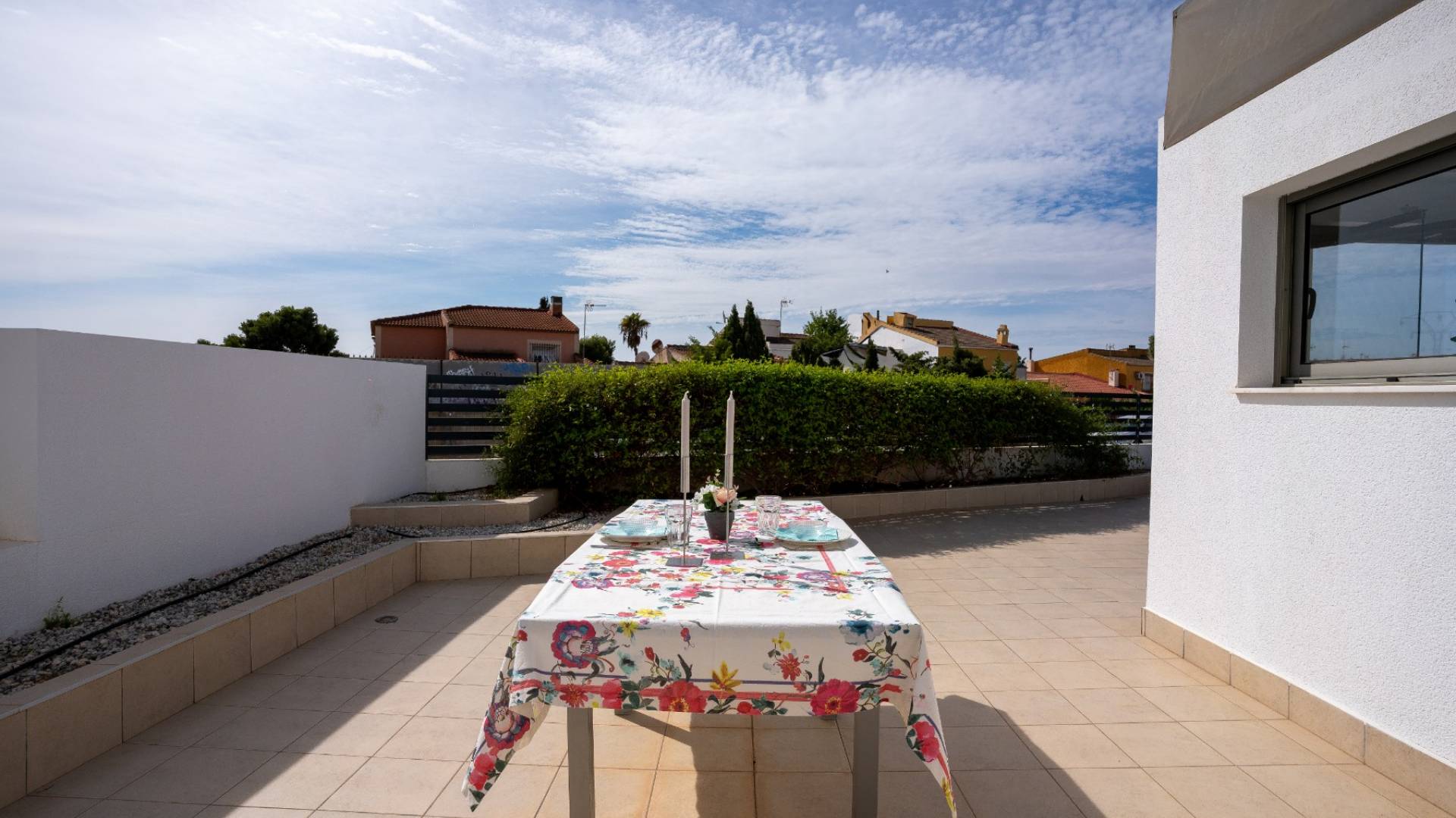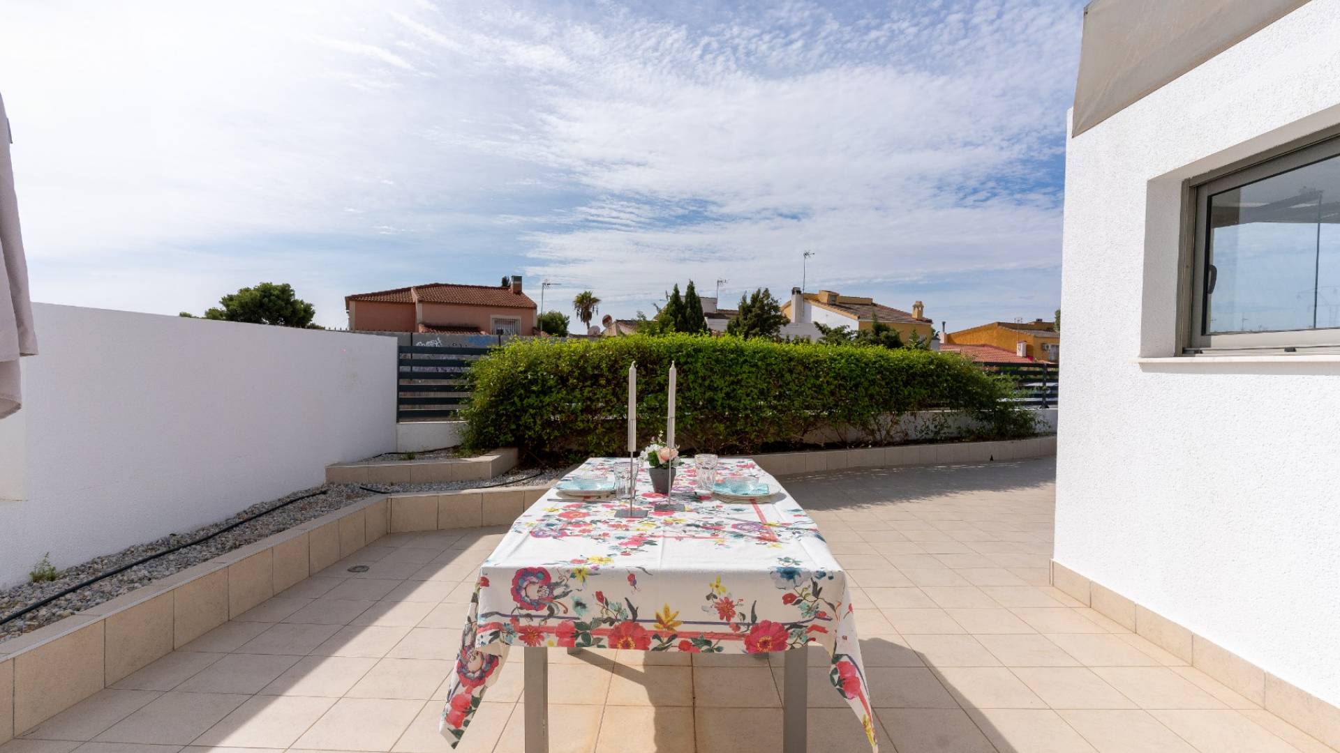 Además, dispone de una terraza exterior con comedor al aire libre, ideal para barbacoas y cenas con amigos, y un porche delantero donde disfrutar de la brisa marina y de los soleados días de Torrevieja.