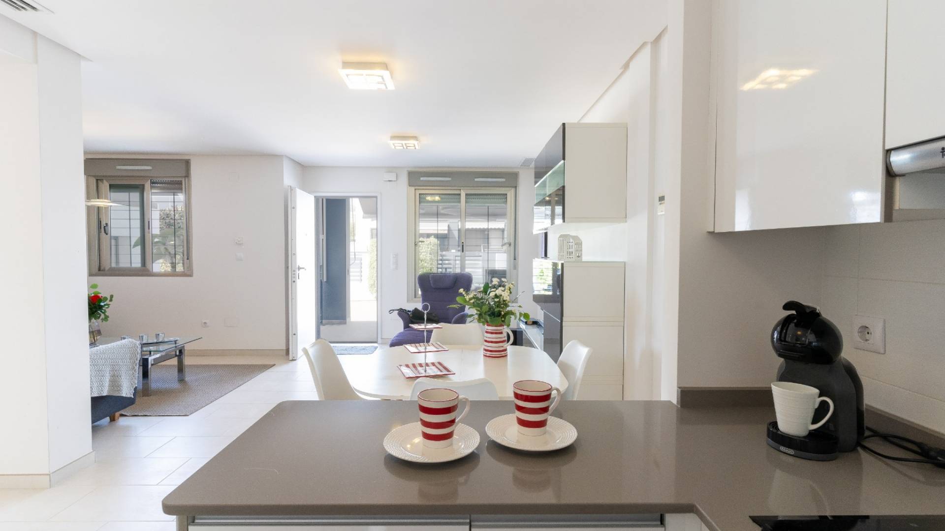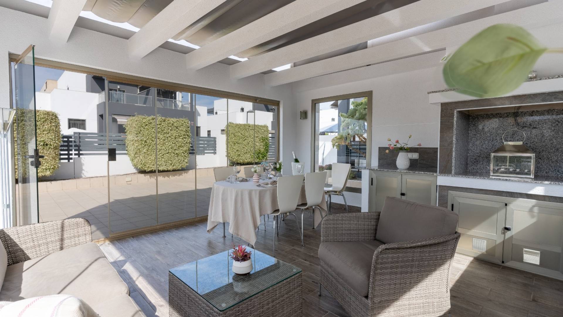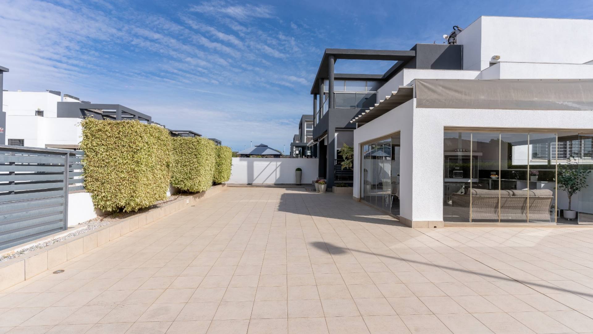 Además, dispone de una terraza exterior con comedor al aire libre, ideal para barbacoas y cenas con amigos, y un porche delantero donde disfrutar de la brisa marina y de los soleados días de Torrevieja.