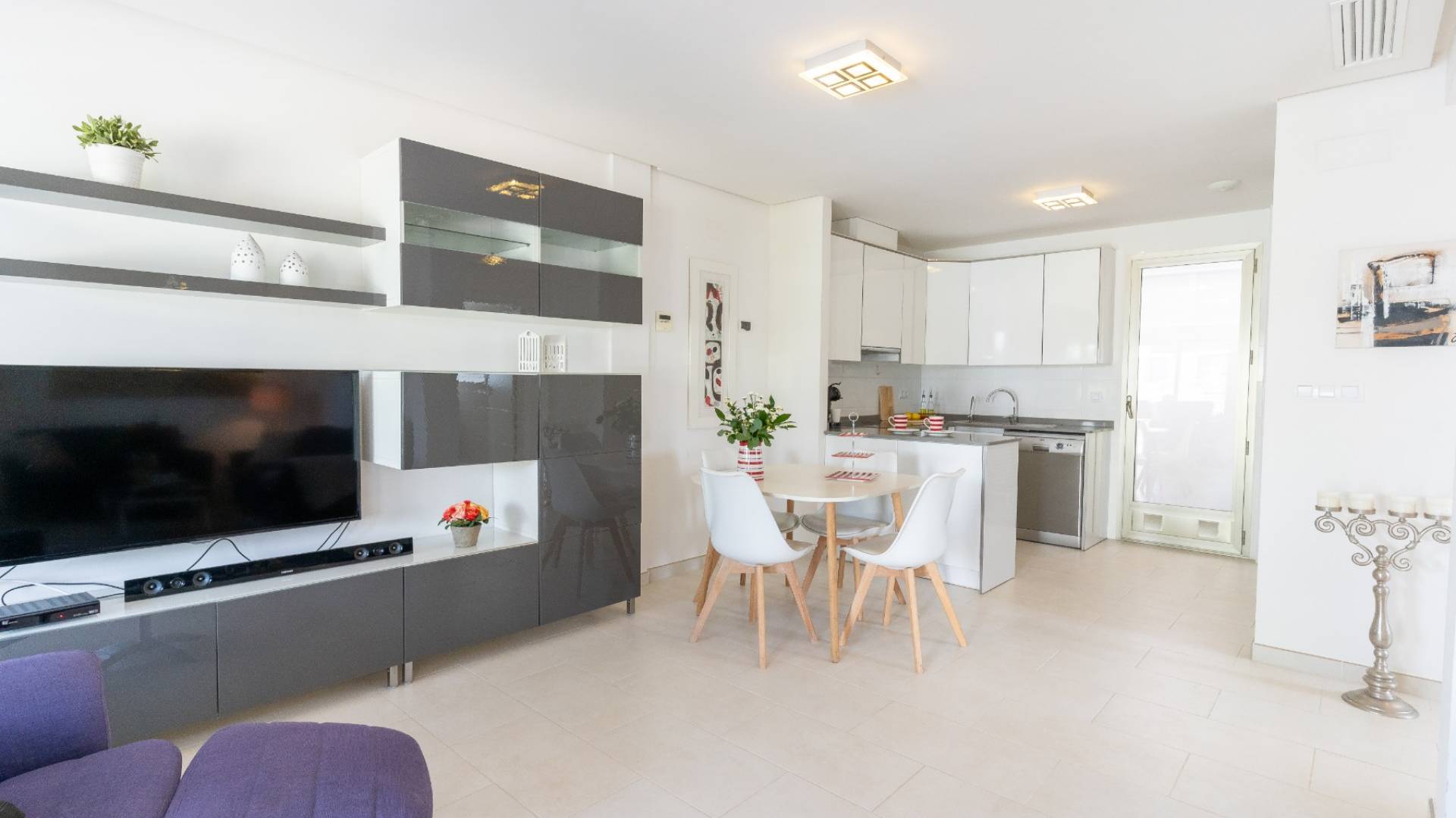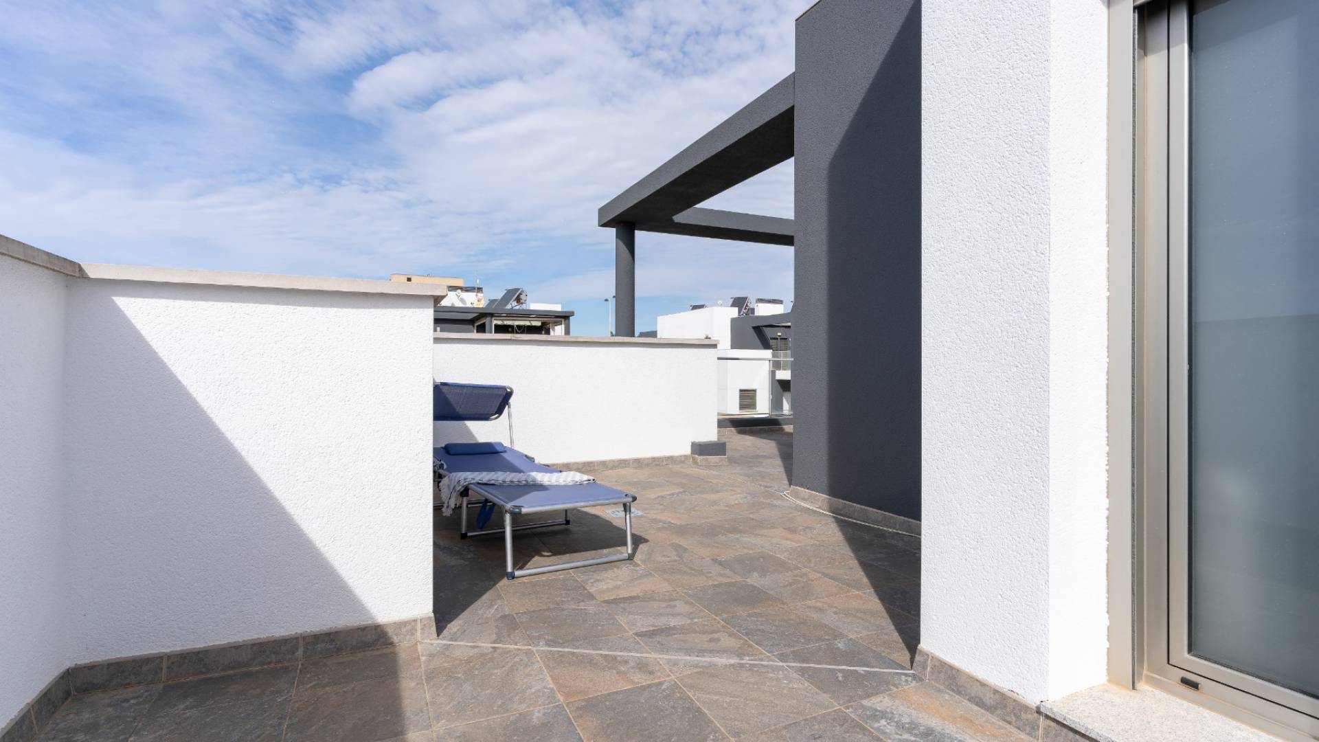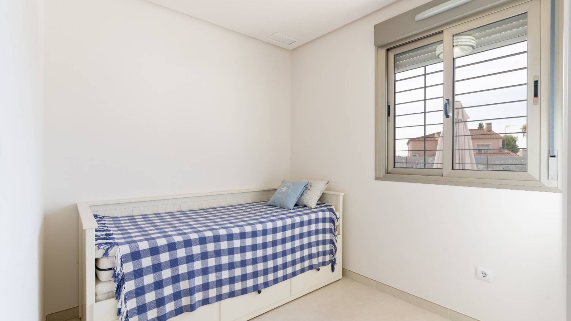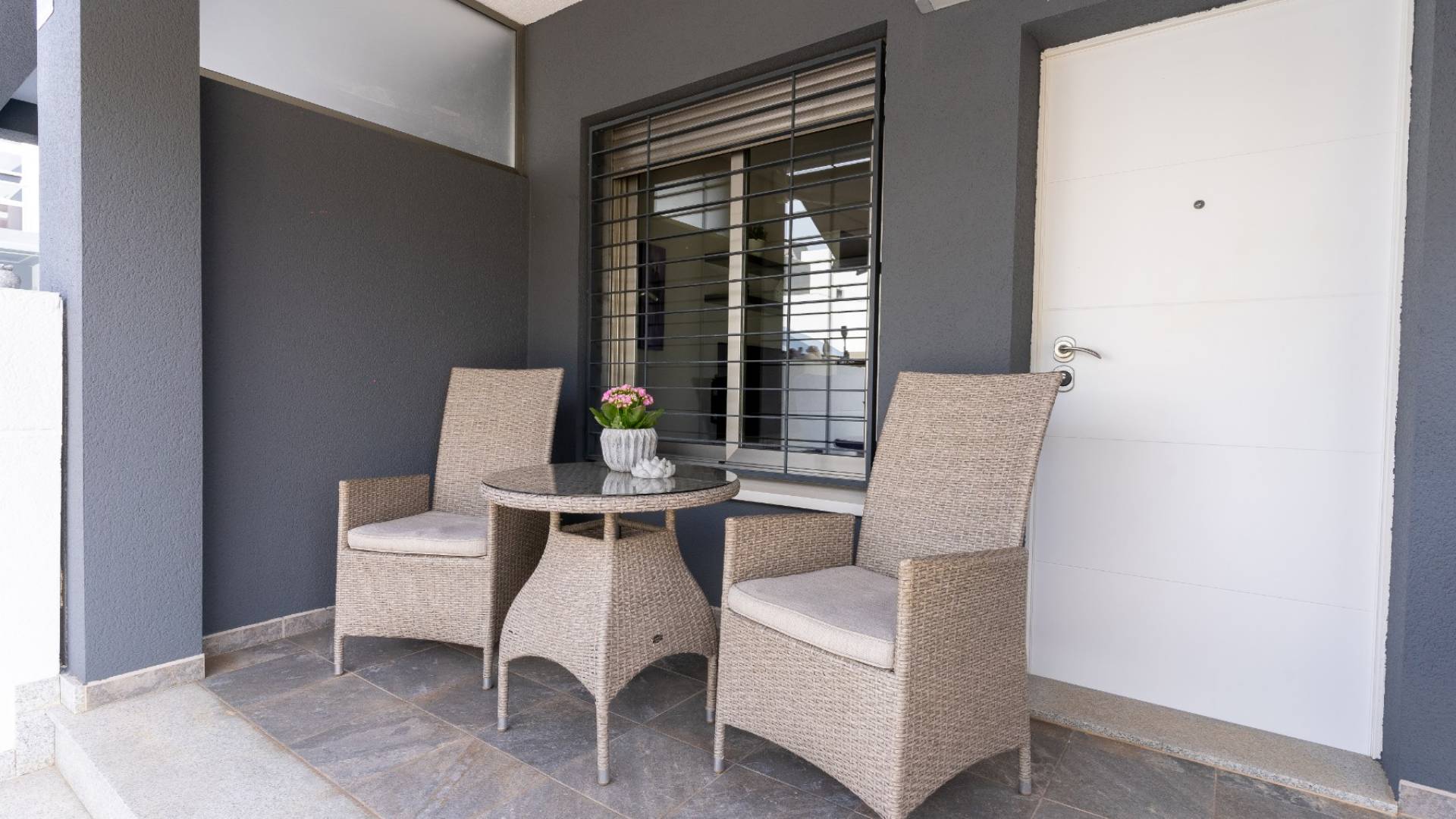 Además, dispone de una terraza exterior con comedor al aire libre, ideal para barbacoas y cenas con amigos, y un porche delantero donde disfrutar de la brisa marina y de los soleados días de Torrevieja.