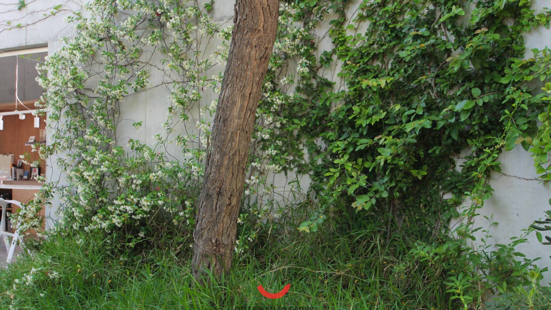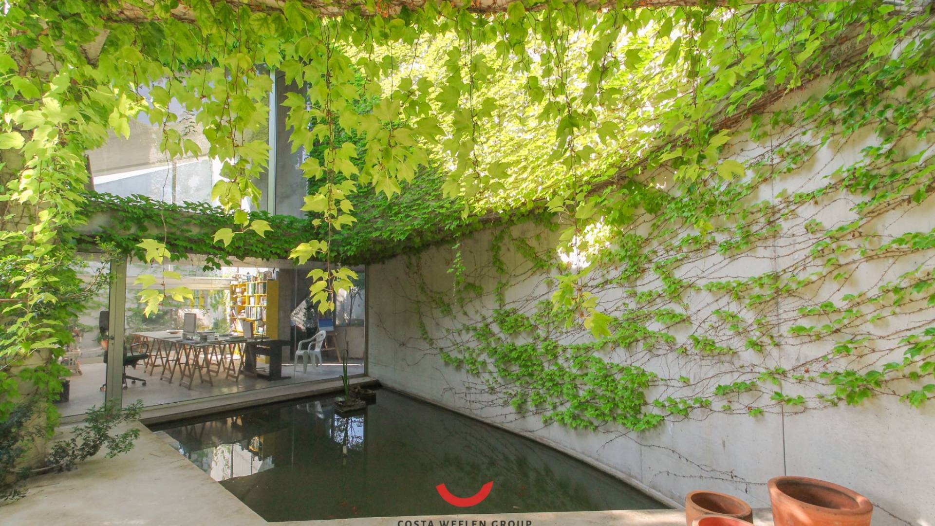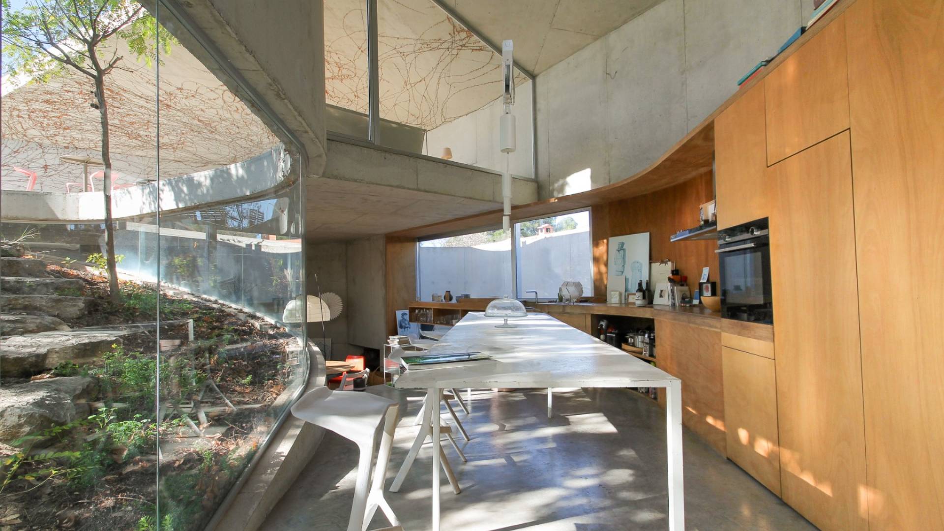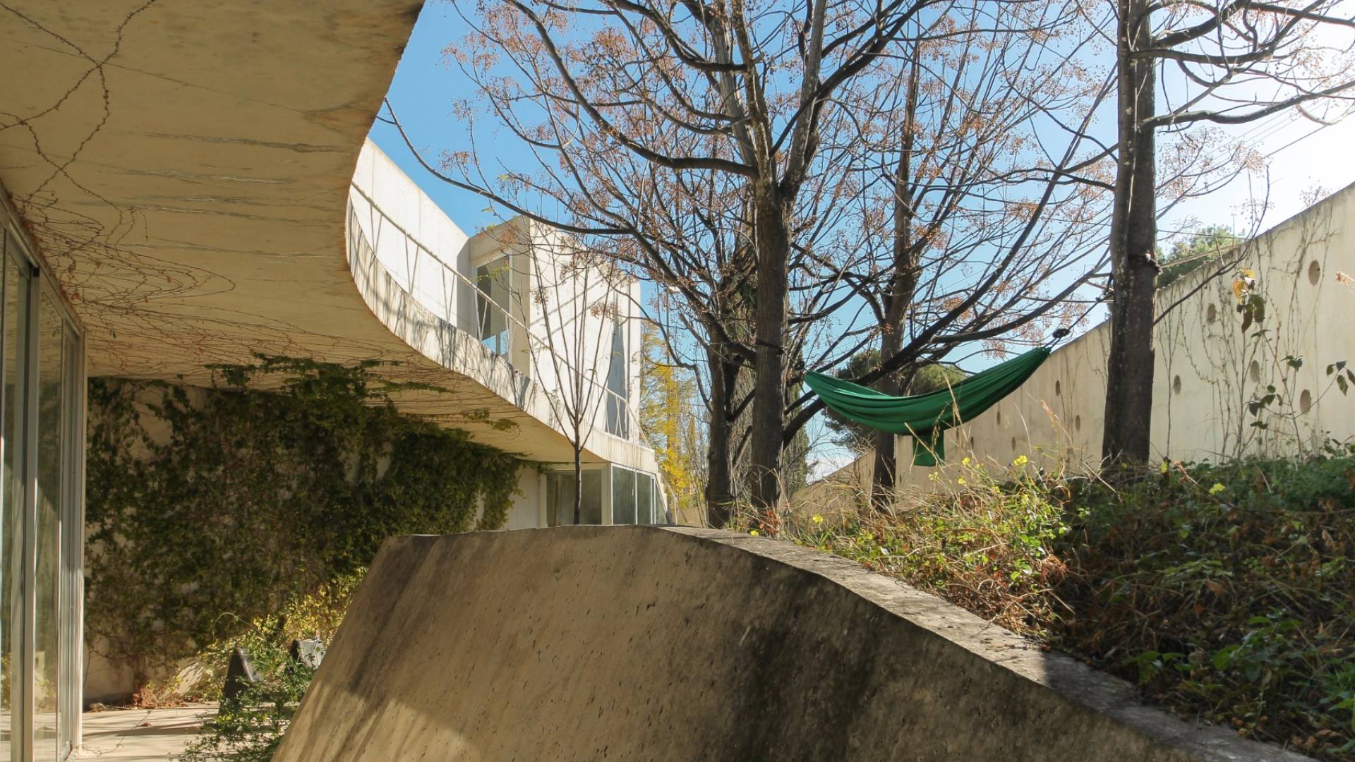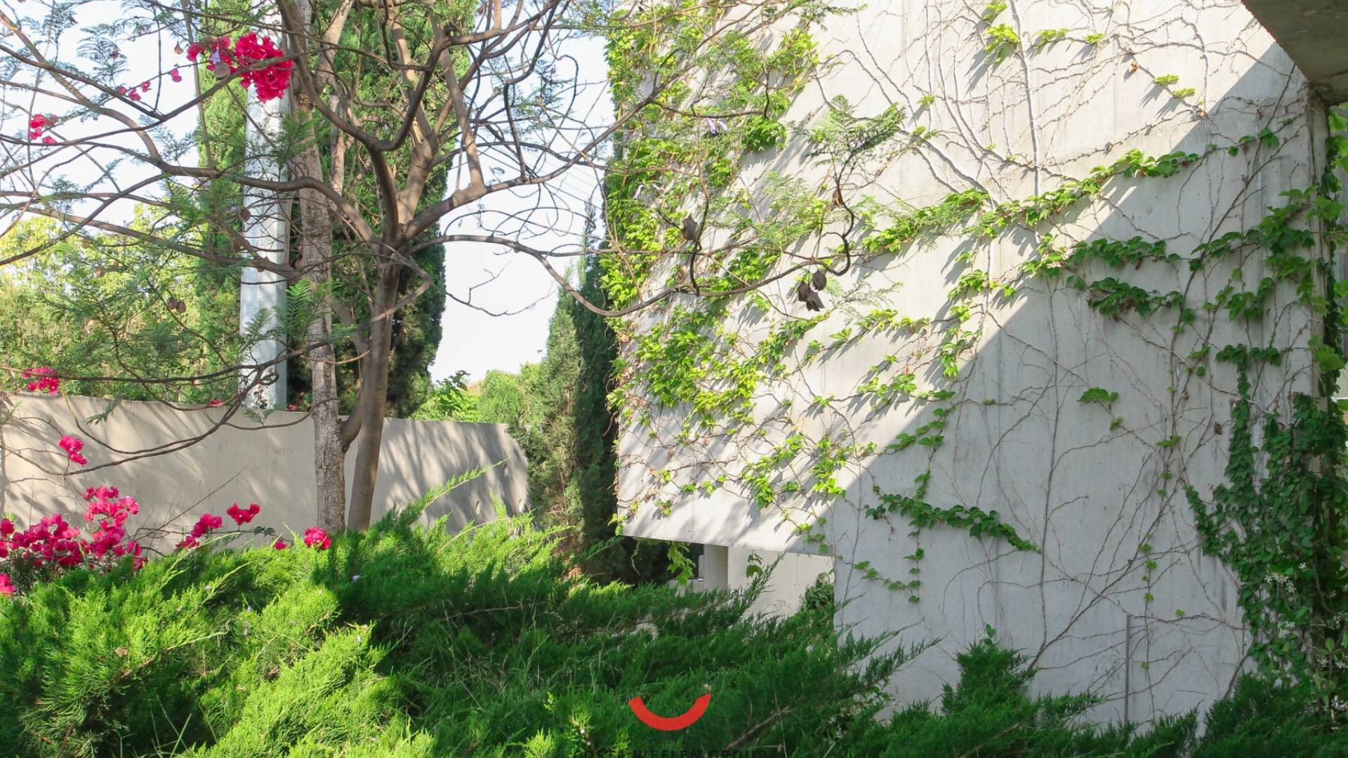 La arquitectura se adapta orgánicamente a los límites de la parcela, configurando su forma a través de muros que delinean el espacio y generan una conexión fluida entre el interior y el exterior. A través de una serie de patios, la distribución de los espacios se articula de manera natural, transformando la vivienda en un jardín habitable. Los muros de hormigón desnudo, en espera de ser conquistados por la vegetación, refuerzan esta fusión entre arquitectura y naturaleza.