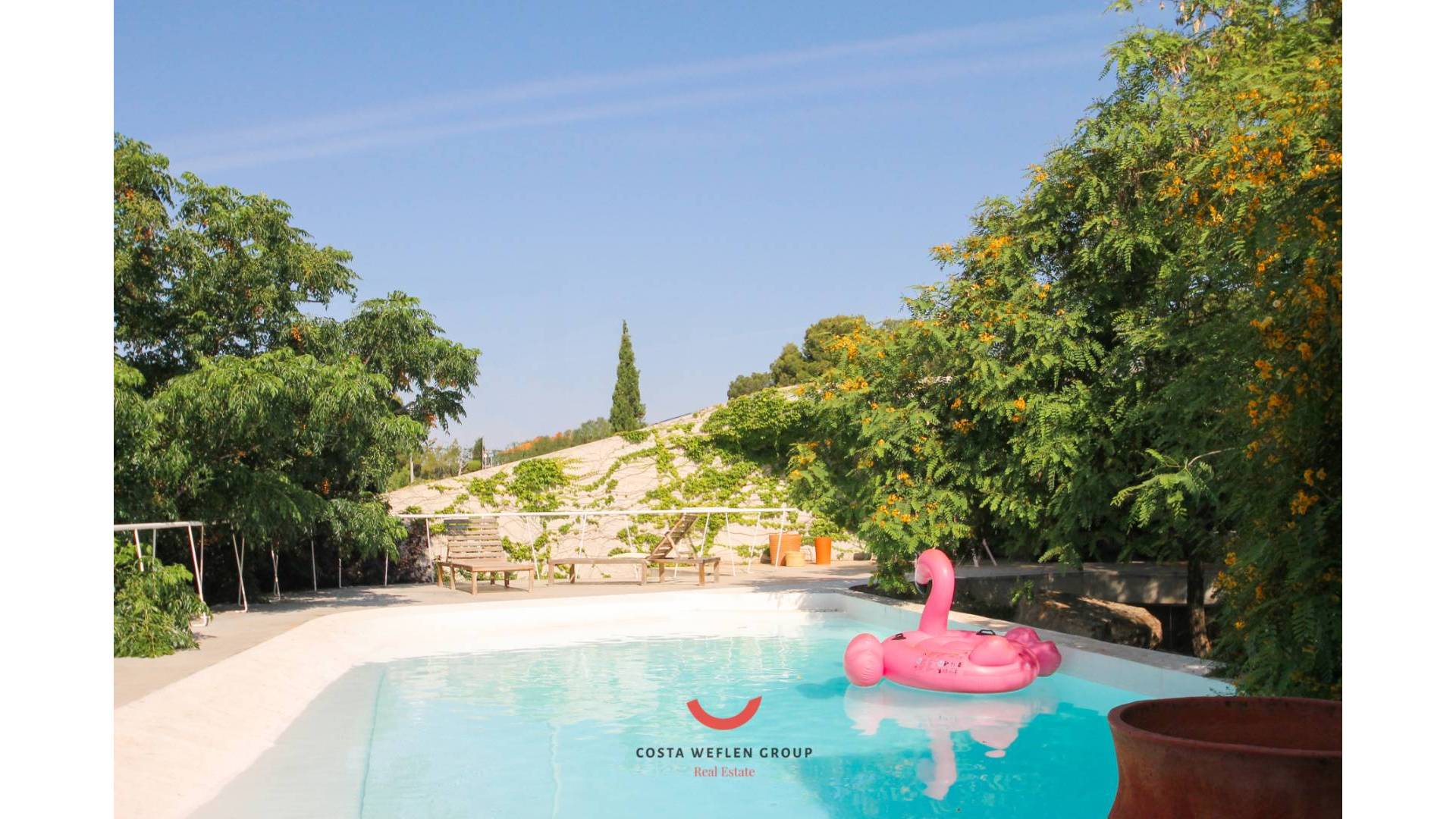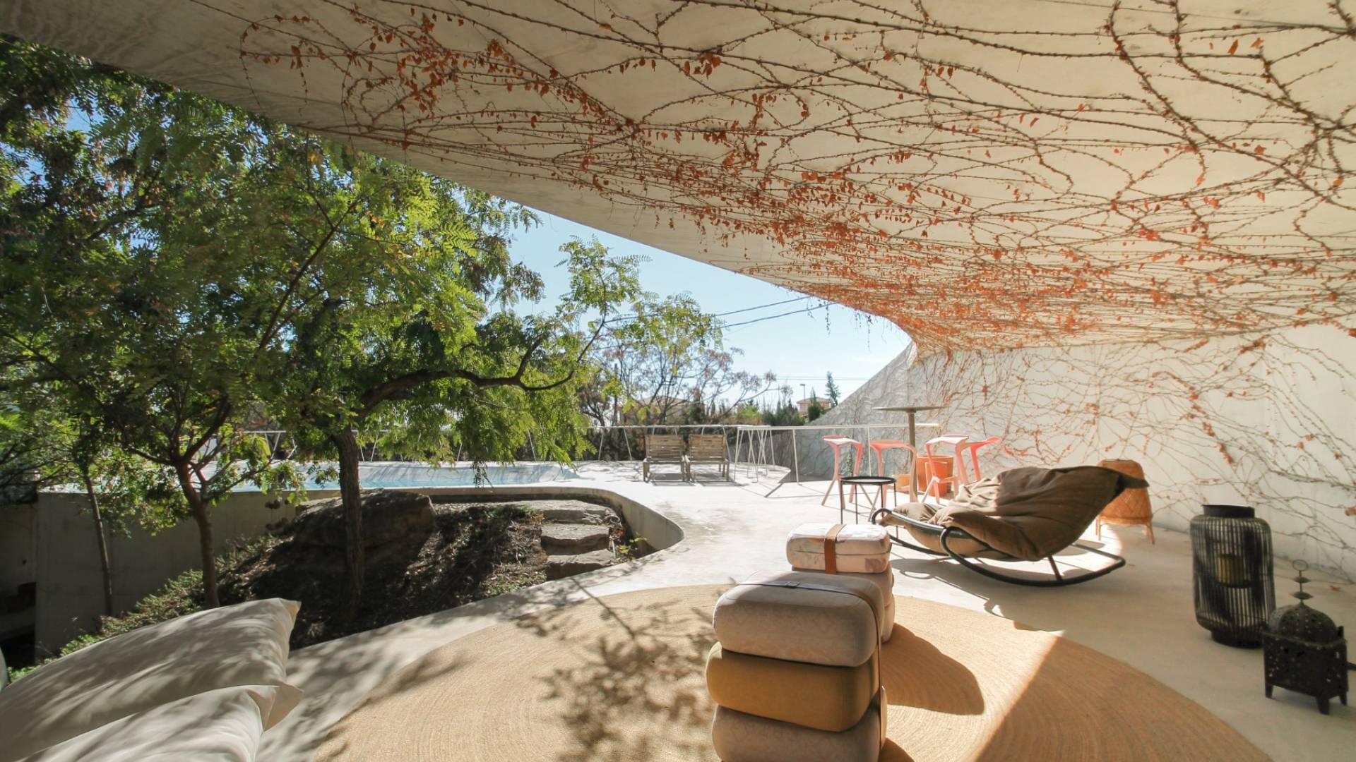 El exterior es un auténtico refugio natural con múltiples áreas de disfrute: una piscina rodeada de vegetación, un salón exterior para el relax, y diversas zonas con sillas estratégicamente ubicadas para gozar del entorno. Esta casa ofrece infinitas posibilidades para seguir desarrollándola según sus necesidades, logrando un equilibrio perfecto entre la vida en la naturaleza y la cercanía a la zona urbana.