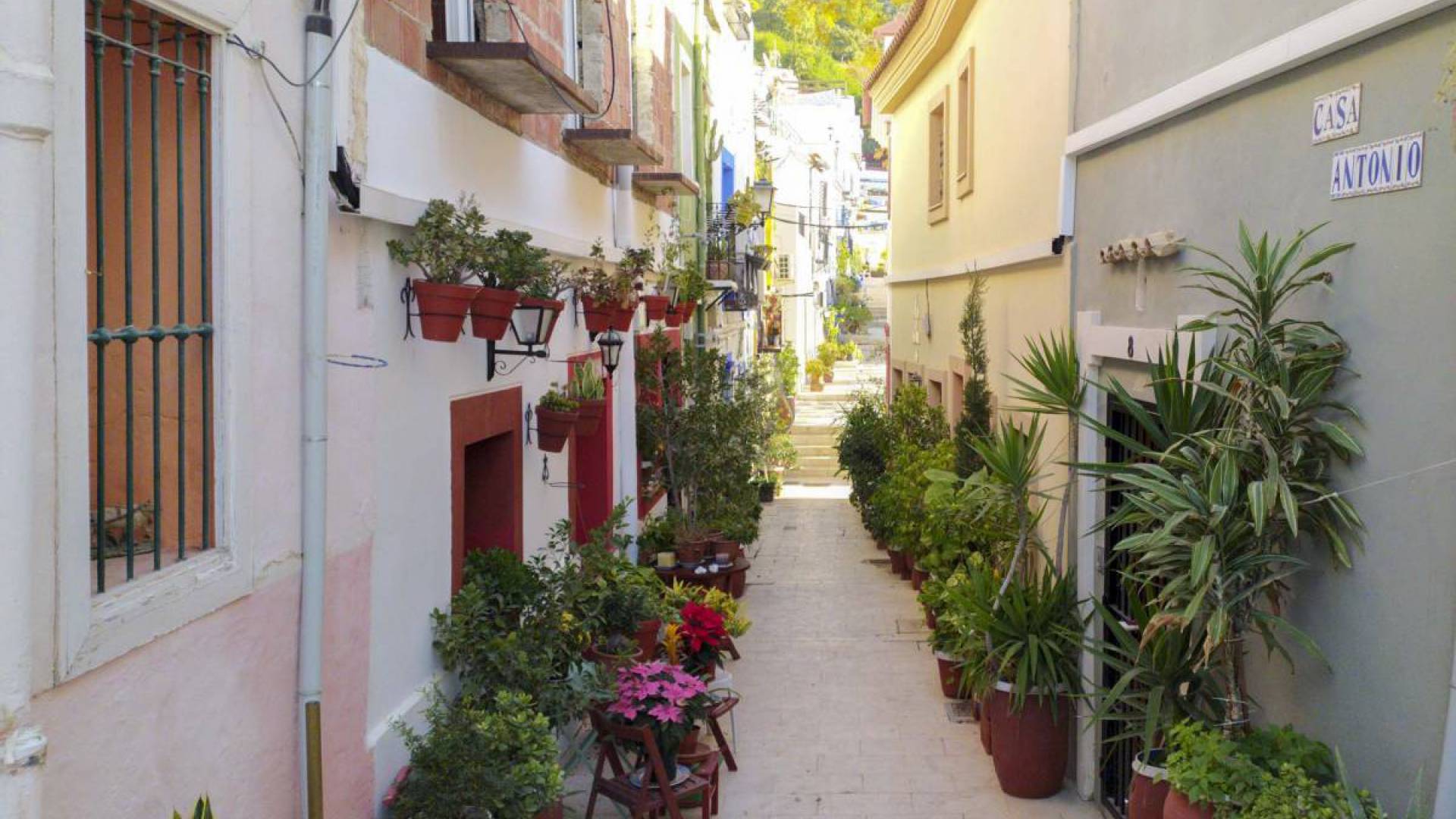 La casa está diseñada en 3 plantas con 3 dormitorios, 1 baño y una azotea con impresionantes vistas al castillo, la ciudad y el mar. La casa tiene mucha luz natural y vistas.