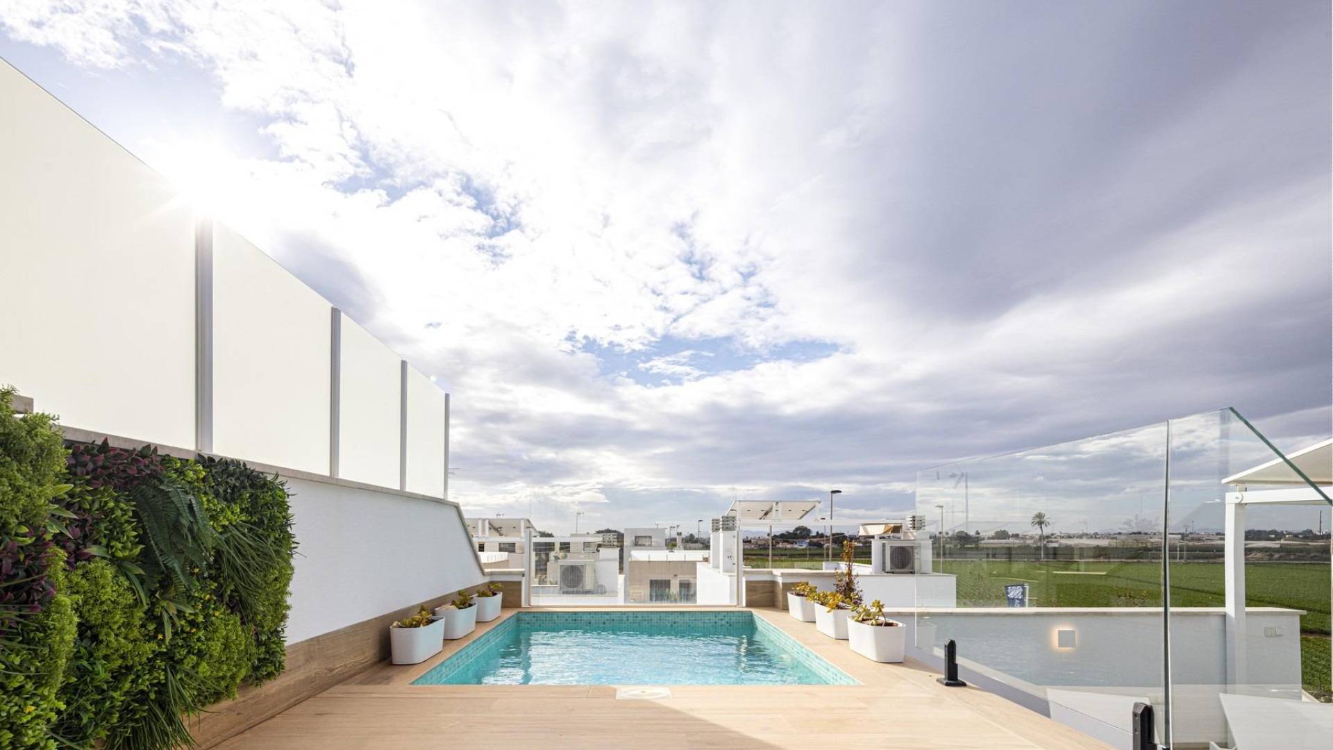 COMPLEJO RESIDENCIAL DE OBRA NUEVA EN TORRE DE LA HORADADA Complejo residencial de obra nueva de bungalow apartamentos con piscina comunitaria en Torre de la Horadada situado a 800m de la playa. Todas las propiedades tiene 2-3 dormitorios, 2 baños, cocina americana con el salón, armarios empotrados y terraza. Todas las propiedades tienen jardines privados y plaza de aparcamiento. Además bungalows en la planta superior tiene solarium privado. Torre de la Horadada se encuentra al sur de Alicante en una hermosa ubicación en la costa. Las hermosas playas de Torre de la Horadada y Mil Palmeras tienen arena fina hermoso paseo marítimo. Hay un montón de restaurantes, bares y tiendas, también deportes acuáticos, buceo y snorkel. Está bien comunicado a sólo 40 minutos de los aeropuertos de Alicante y Murcias Corvera, con grandes centros comerciales y múltiples campos de golf a poca distancia.