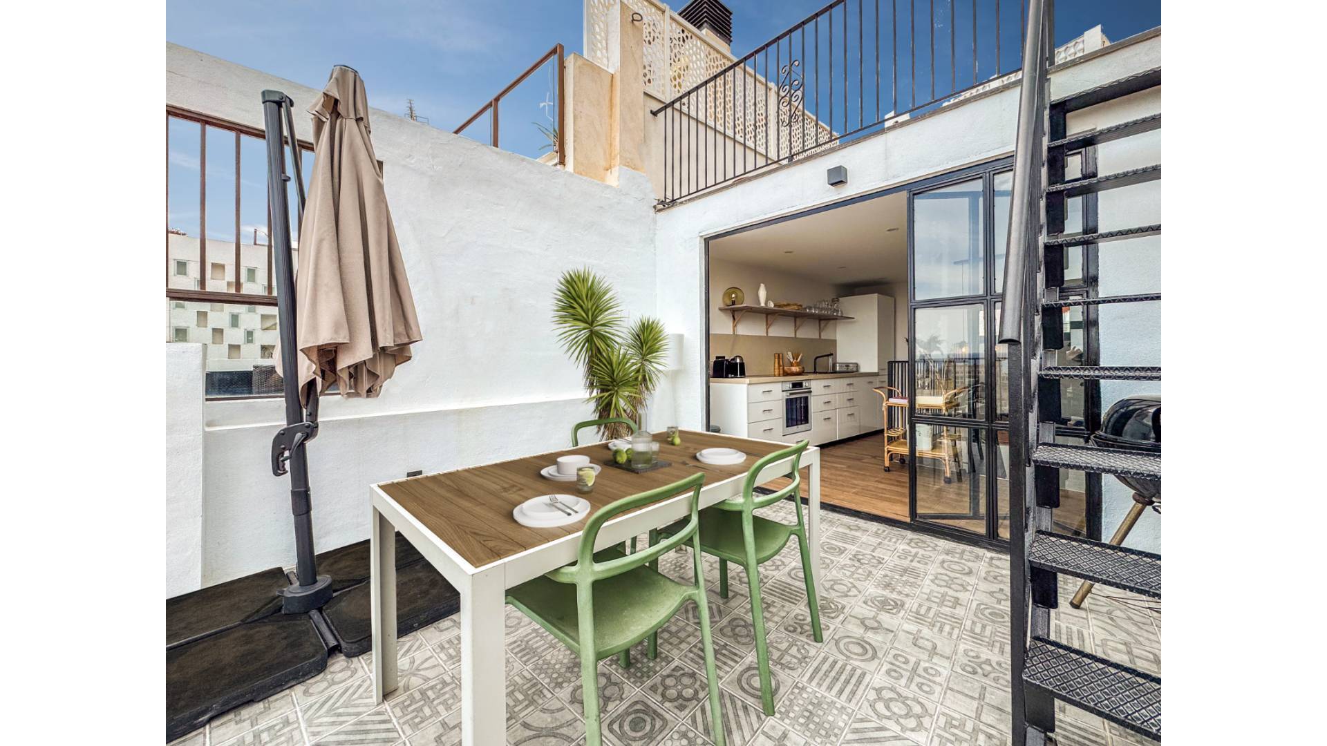 Uno de los grandes atractivos de esta casa son sus dos espectaculares terrazas en la azotea, desde las que se disfruta de una vista abierta de 360° sobre toda Alicante, consideradas entre las mejores vistas privadas de la ciudad.
