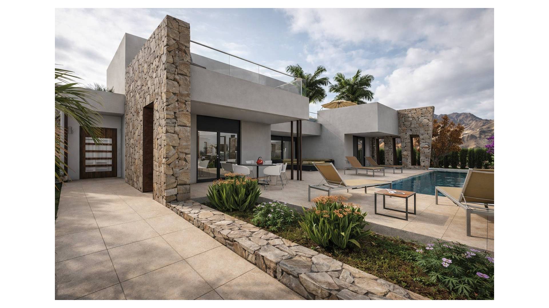La vivienda se construye sobre una parcela de 983 m², con 350 m² construidos, diseñada para aprovechar al máximo la luz natural y el espacio, con acabados de alta calidad y distribución moderna. El chalet cuenta con 3 habitaciones, 3 baños completos y 2 aseos, además de espacios abiertos, terraza, jardín y piscina privada, ideales para disfrutar del clima mediterráneo y la tranquilidad de la zona.