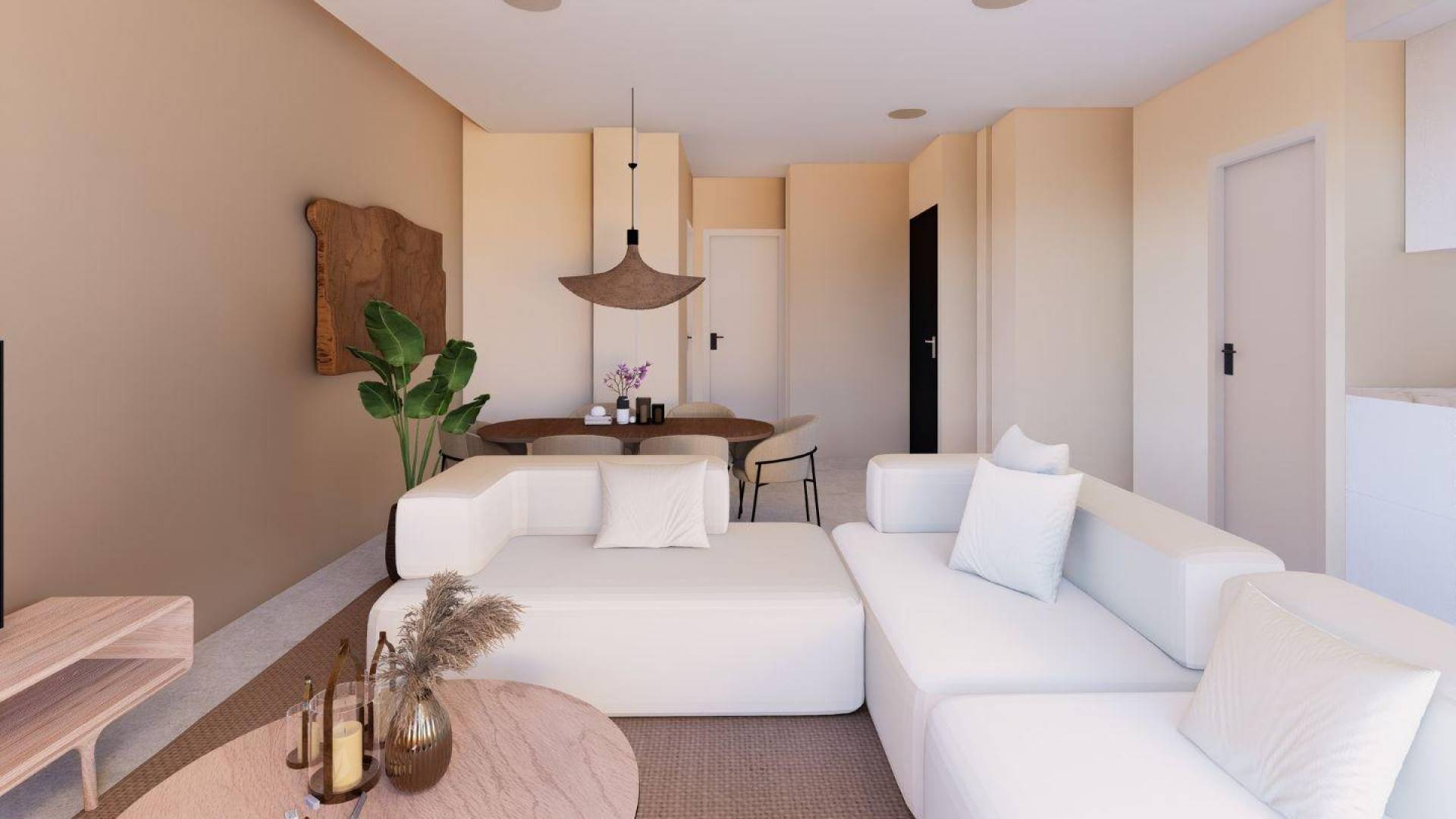 Apartamentos de nueva construcción con vistas al mar en Muchavista, El Campello Vida costera exclusiva a pocos pasos de la playa Descubra un edificio residencial boutique situado a menos de 200 m de la playa de Muchavista, en El Campello, una de las zonas costeras más codiciadas de la Costa Blanca Norte. Esta moderna promoción consta de solo 14 apartamentos y áticos de 2 y 3 dormitorios, diseñados para ofrecer comodidad, estilo y una fuerte conexión con el estilo de vida mediterráneo. Muchavista es conocida por su amplia playa de arena, su ambiente tranquilo y sus excelentes servicios, lo que la hace ideal tanto para vivir todo el año como para pasar las vacaciones. Diseño moderno con amplias terrazas y vistas al mar Todas las viviendas han sido cuidadosamente diseñadas para maximizar la luz natural y las vistas al mar desde las plantas superiores. Las distribuciones diáfanas combinan el salón-comedor con una moderna cocina integrada, creando espacios luminosos y funcionales. Los apartamentos de la planta baja disfrutan de jardines privados, las viviendas de las plantas intermedias cuentan con terrazas con vistas al mar y los áticos ofrecen soláriums privados en la azotea, perfectos para relajarse o divertirse bajo el sol de la Costa Blanca. El concepto arquitectónico da prioridad a las líneas limpias, la estética contemporánea y los materiales de alta calidad, lo que garantiza la durabilidad, el confort y un acabado elegante en todo el edificio. Especificaciones de alta calidad y eficiencia energética Cada apartamento se entrega con características de primera calidad diseñadas para la vida moderna. Las viviendas incluyen aire acondicionado por conductos totalmente instalado, persianas eléctricas, una puerta de entrada de seguridad reforzada y producción de agua caliente a través de un eficiente sistema aerotérmico. Las cocinas están completamente amuebladas y equipadas con electrodomésticos, lo que ofrece un entorno práctico y elegante para la vida diaria. Todas las propiedades incluyen plaza de aparcamiento y trastero, lo que añade comodidad y valor añadido. La eficiencia energética y la sostenibilidad han sido elementos clave en el diseño, proporcionando comodidad a largo plazo y un menor consumo de energía. Zonas comunes diseñadas para el relax Los espacios comunes están concebidos como una extensión de su hogar. Los residentes pueden disfrutar de una hermosa piscina y zonas ajardinadas, creando un entorno tranquilo a pocos minutos del mar. Estas zonas comunes son ideales para relajarse, socializar o simplemente disfrutar del clima mediterráneo durante todo el año. Ubicación privilegiada en El Campello La playa de Muchavista se encuentra a menos de 0,2 km de la urbanización, lo que ofrece un fácil acceso a largos paseos, deportes acuáticos y restaurantes junto al mar. El centro de El Campello está a unos 2 km, mientras que el centro de Alicante está a unos 12 km. El aeropuerto internacional de Alicante-Elche se encuentra a unos 25 km. Se puede llegar a varios campos de golf, como el Alicante Golf, en unos 7 km, y el puerto deportivo de El Campello está a solo 3 km. Su hogar mediterráneo le espera Estos apartamentos de nueva construcción en Muchavista ofrecen una oportunidad excepcional para disfrutar de vistas al mar, comodidad moderna y una ubicación privilegiada en la costa. Póngase en contacto con nosotros hoy mismo para recibir más información o concertar una visita privada y asegurarse su lugar junto al Mediterráneo.