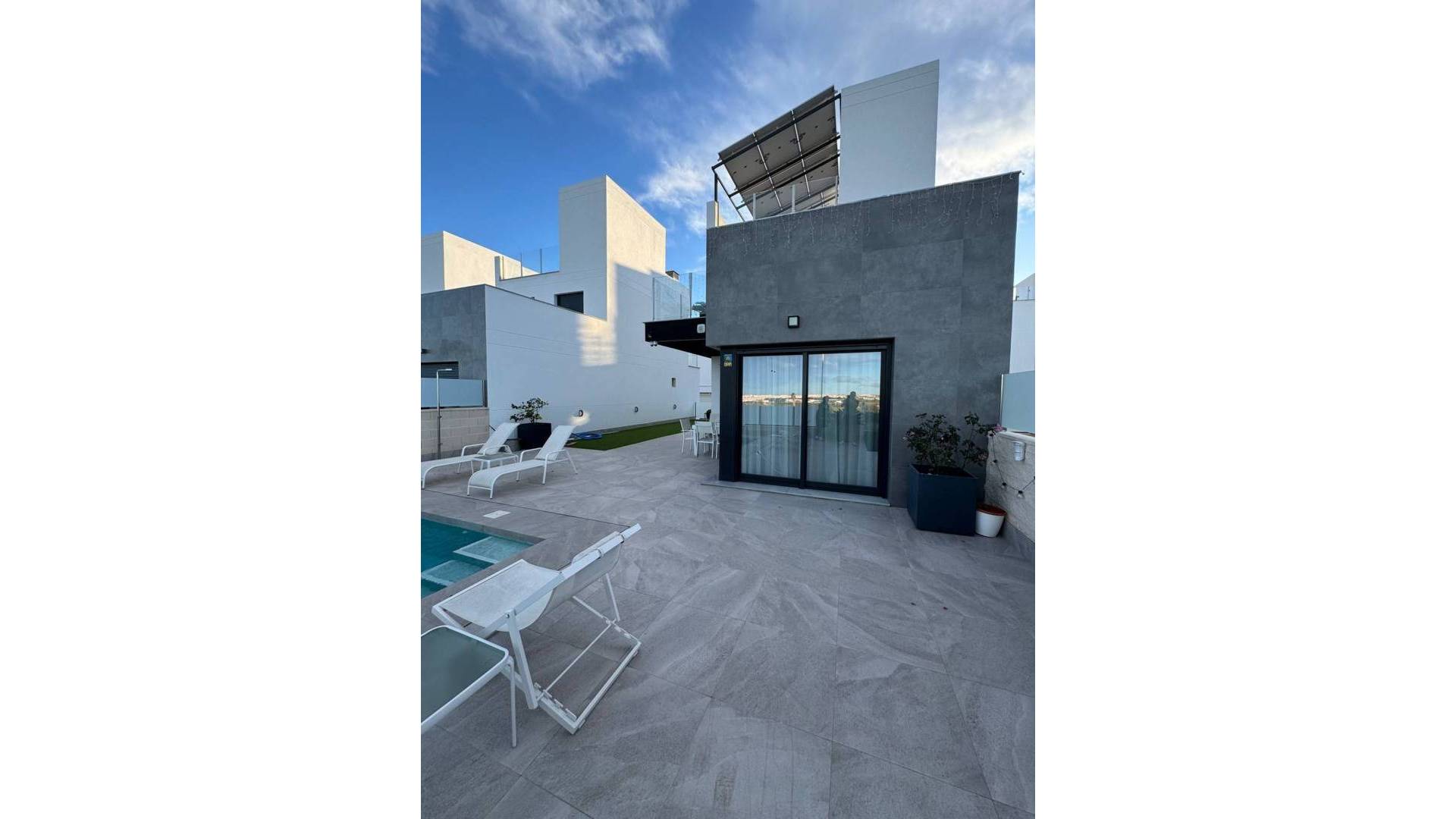 Le presentamos una villa de tres plantas en Los Altos. La vivienda dispone de tres dormitorios y tres baños. En la planta baja se encuentra la cocina, integrada con el comedor y el salón. En la tercera planta hay una azotea que se puede acondicionar como zona de descanso.En la planta semisótano hay un espacio que también se puede convertir en dormitorio, gimnasio o sala de cine en casa.En la parcela junto a la vivienda hay una piscina privada.Desde la azotea se disfruta de unas magníficas vistas a las salinas.Esta propiedad es una excelente inversión, ya que se puede alquilar; será especialmente demandada en verano y generará ingresos.Al comprar una propiedad en España, es posible obtener un permiso de residencia en el país. Nuestra empresa le ayuda a tramitar permisos de residencia de cualquier tipo.