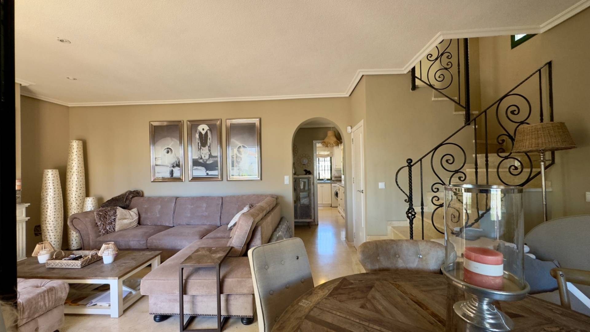 Ubicada en la encantadora y cuidada zona residencial de Los Dolses , esta villa independiente ofrece la combinación perfecta de comodidad, funcionalidad y estilo de vida mediterráneo . La propiedad se encuentra en una calle tranquila , lo que garantiza mayor privacidad y un ambiente agradable y tranquilo. En el interior, encontrará tres amplios dormitorios y dos baños completos , lo que convierte a esta villa en la opción ideal tanto para residencia permanente como para vacaciones . La cocina independiente , de diseño práctico, constituye el corazón de la casa: perfecta para quienes disfrutan cocinando en un espacio tranquilo y bien ventilado. La villa está equipada con todas las comodidades necesarias. En el exterior, disfrutará de una espaciosa parcela de 249 m² , que ofrece mucha privacidad y varios rincones encantadores para relajarse. Gracias a su orientación este-oeste, disfrutará de abundante luz natural y sol durante todo el día, ideal para disfrutar en la terraza, el jardín o junto a la piscina. La terraza junto al salón también ofrece una hermosa vista a la piscina. Si desea conocer a los vecinos, siempre puede darse un chapuzón en la piscina comunitaria . ¿Le encantan los hermosos muebles de alta calidad? Puede adquirirlos por 15.000 € adicionales. Una villa lista para entrar a vivir en una zona popular de la Costa Blanca , con fácil acceso a tiendas, restaurantes, campos de golf y las playas de Orihuela Costa . ¿Desea más información o una visita virtual? ¡Contáctenos hoy mismo! Comunidad de VVE: 748 €/año Impuesto sobre bienes inmuebles: 515,81 €/año