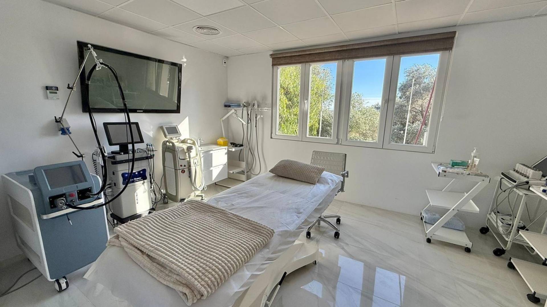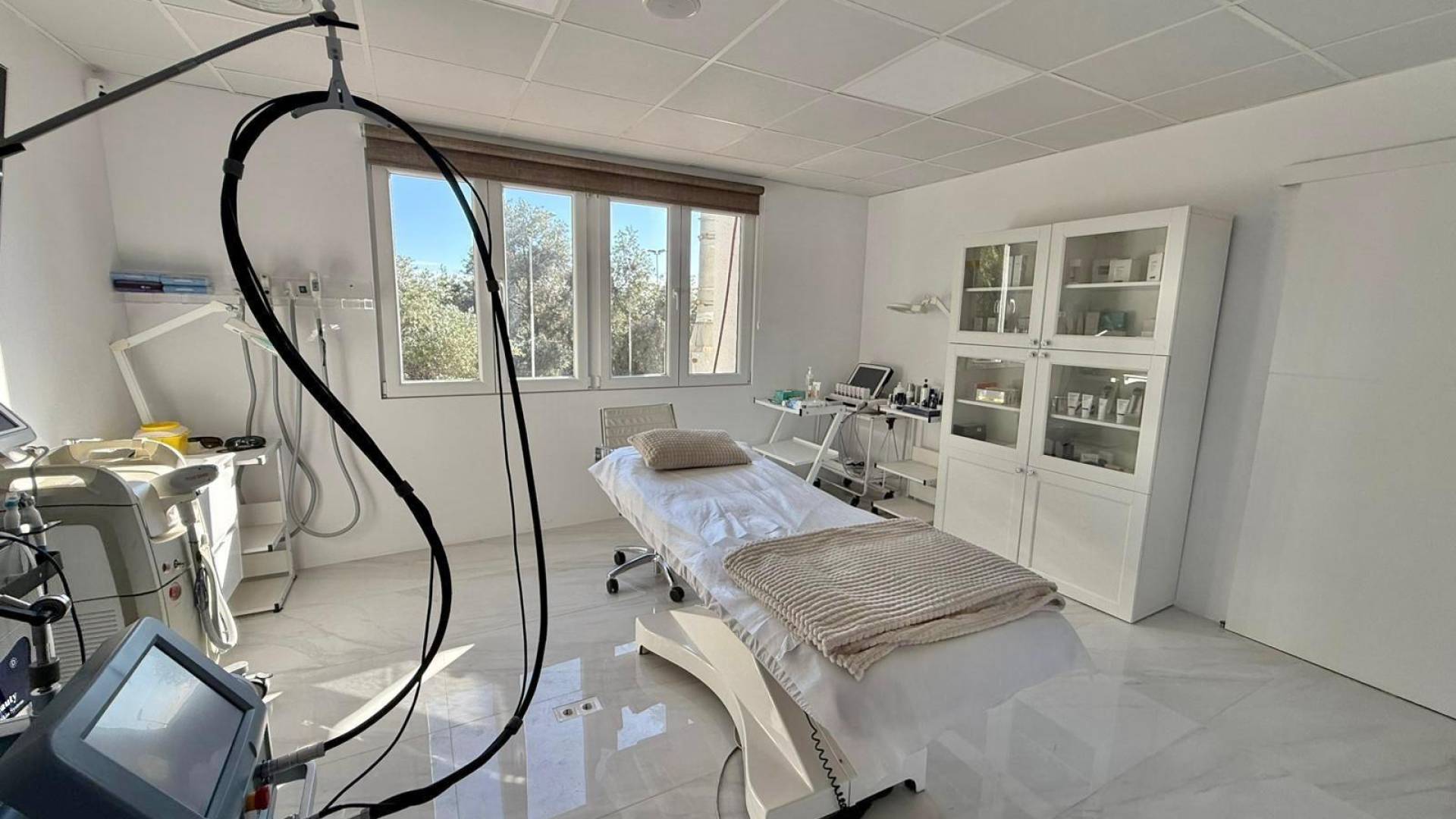 Se alquila clínica equipada en la zona de Ciudad Quesada. Ubicada en un centro de negocios muy cercano al Hotel de Cuatro Estrellas La Laguna. La localización es inmejorable, justo frente al Apartahotel La Laguna y a pocos metros del hotel principal. A lo largo de unos 120 m², la clínica se distribuye en un amplio mostrador de recepción, cinco salas de tratamiento, dos baños, un aseo equipado con dos duchas, una terraza muy amplia de aproximadamente 35 m² con preciosas vistas a la laguna —perfecta como zona de espera al aire libre—, además de vestuario y cocina. El acceso puede realizarse tanto por escalera como por ascensor. La clínica cuenta con cámaras de seguridad, sistema de monitoreo de alarmas y aire acondicionado por conductos con paneles de control en toda la instalación. Se alquila con licencia en vigor y cumpliendo todos los requisitos de accesibilidad para personas con movilidad reducida. La clínica está totalmente amueblada, tanto en la zona de recepción como en las salas de tratamiento. El equipamiento médico no está incluido en el precio del alquiler, pero puede venderse por separado. En caso de interés, puede consultarse la lista de precios del equipamiento disponible. Condiciones económicas: -Precio de alquiler: 3.200 € mensuales. -Importe inicial: 60.000 €, de los cuales 50.000 € son retornables en concepto de depósito o fianza. -No se paga traspaso. -Existe la posibilidad de formalizar contratos de 15 años o más. Para más información o para concertar una visita, contáctenos. Estaremos encantados de atenderle y facilitarle todos los detalles.
