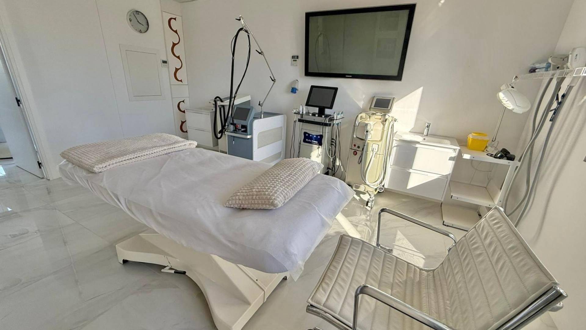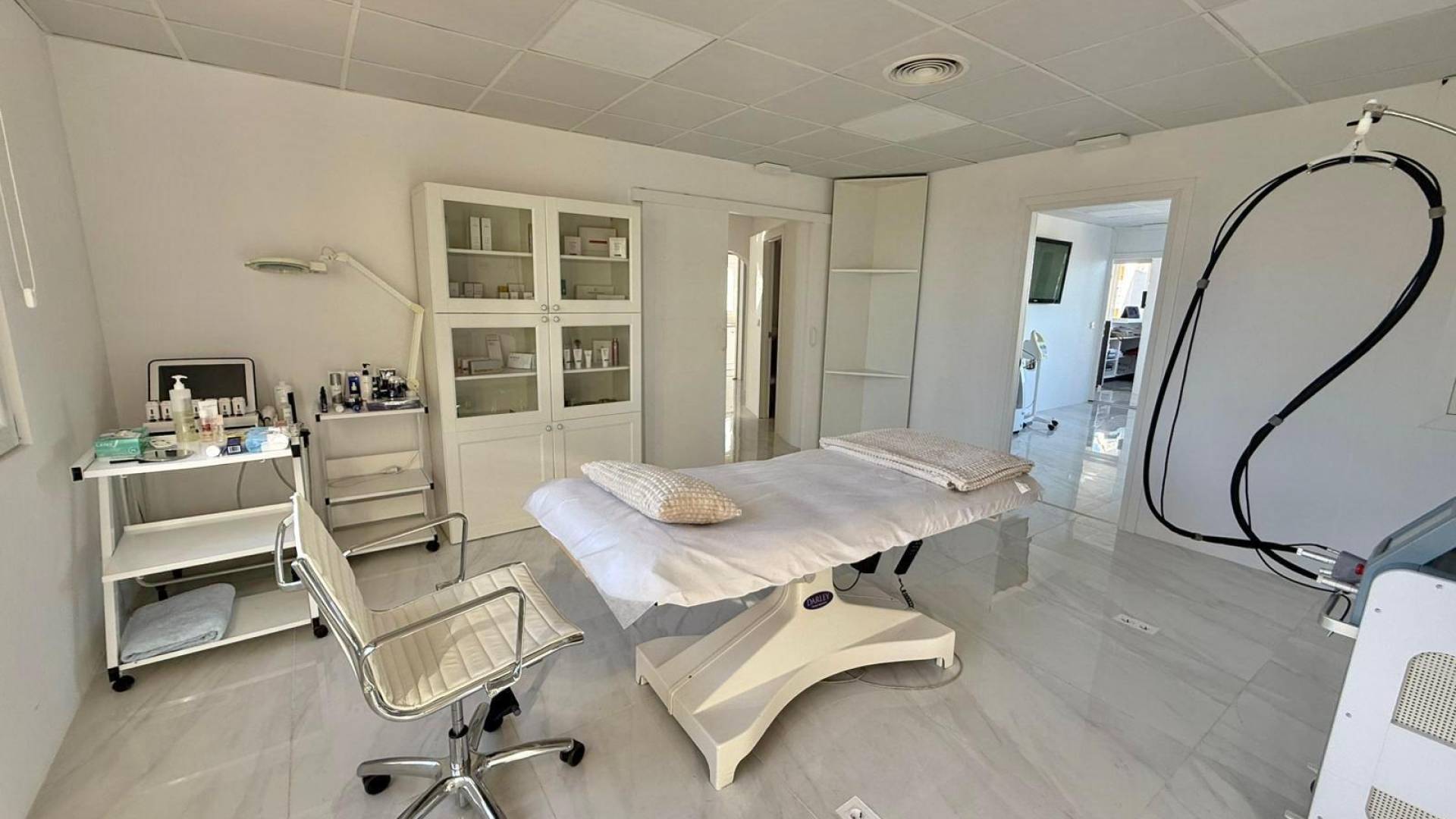 Se alquila clínica equipada en la zona de Ciudad Quesada. Ubicada en un centro de negocios muy cercano al Hotel de Cuatro Estrellas La Laguna. La localización es inmejorable, justo frente al Apartahotel La Laguna y a pocos metros del hotel principal. A lo largo de unos 120 m², la clínica se distribuye en un amplio mostrador de recepción, cinco salas de tratamiento, dos baños, un aseo equipado con dos duchas, una terraza muy amplia de aproximadamente 35 m² con preciosas vistas a la laguna —perfecta como zona de espera al aire libre—, además de vestuario y cocina. El acceso puede realizarse tanto por escalera como por ascensor. La clínica cuenta con cámaras de seguridad, sistema de monitoreo de alarmas y aire acondicionado por conductos con paneles de control en toda la instalación. Se alquila con licencia en vigor y cumpliendo todos los requisitos de accesibilidad para personas con movilidad reducida. La clínica está totalmente amueblada, tanto en la zona de recepción como en las salas de tratamiento. El equipamiento médico no está incluido en el precio del alquiler, pero puede venderse por separado. En caso de interés, puede consultarse la lista de precios del equipamiento disponible. Condiciones económicas: -Precio de alquiler: 3.200 € mensuales. -Importe inicial: 60.000 €, de los cuales 50.000 € son retornables en concepto de depósito o fianza. -No se paga traspaso. -Existe la posibilidad de formalizar contratos de 15 años o más. Para más información o para concertar una visita, contáctenos. Estaremos encantados de atenderle y facilitarle todos los detalles.