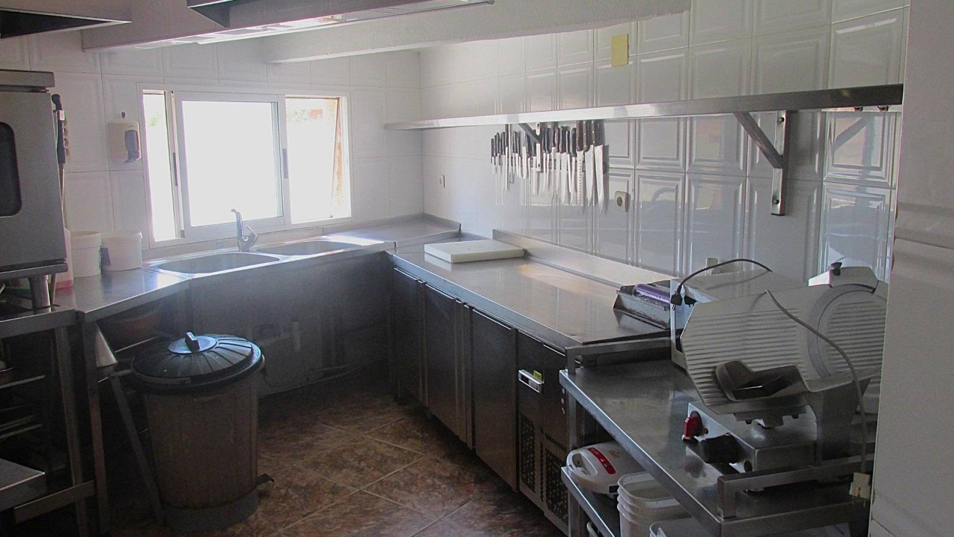 Se vende un completo conjunto inmobiliario que incluye restaurante, vivienda en la planta superior, amplias terrazas, patio, zona barbacoa y garaje, todo sobre una superficie total de 769 m². Ideal para continuar actividad, reformar o desarrollar un proyecto de construcción. ???? Distribución de la propiedad Planta baja – Restaurante Espacio con encanto rústico mediterráneo, techos con vigas de madera y decoración tradicional. Capacidad: 95 comensales 40 en salón interior 55 en terraza cubierta Superficie del restaurante: 90 m² Terraza cubierta: 140 m² Cocina profesional diseñada a medida (78 m²) 2 placas solares para agua caliente Garaje y proyecto ampliado Garaje con puerta eléctrica Planos disponibles para construir 16 apartamentos y un ático dúplex Patio y zona exterior Patio amplio Zona barbacoa Espacios versátiles para ocio o ampliaciones futuras ???? Primera planta – Vivienda Vivienda funcional y luminosa de 72 m²: 5 habitaciones 2 baños 2 terrazas (16 m² y 12,5 m²) ???? Ideal para: Inversión Explotación de negocio Familia que quiera combinar vivienda y actividad Promotores que busquen un proyecto urbanístico sólido Precio total: 499.900 €
