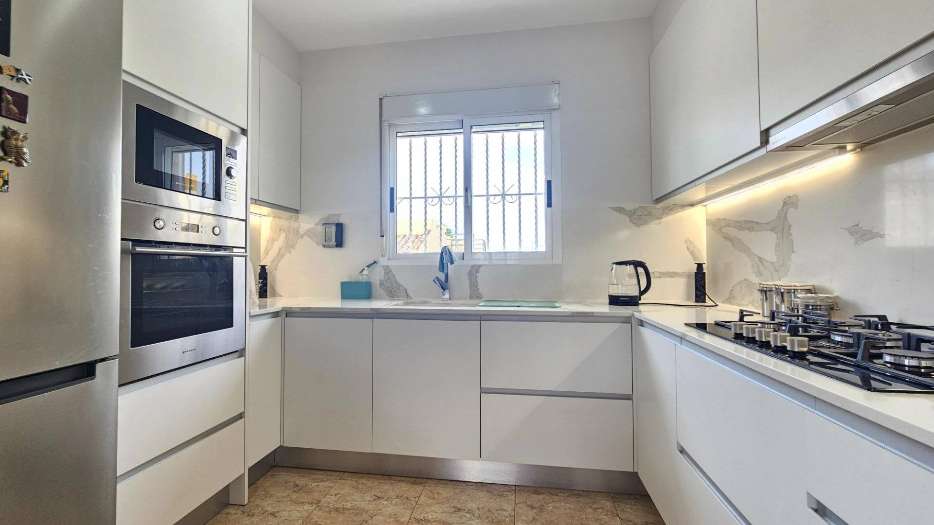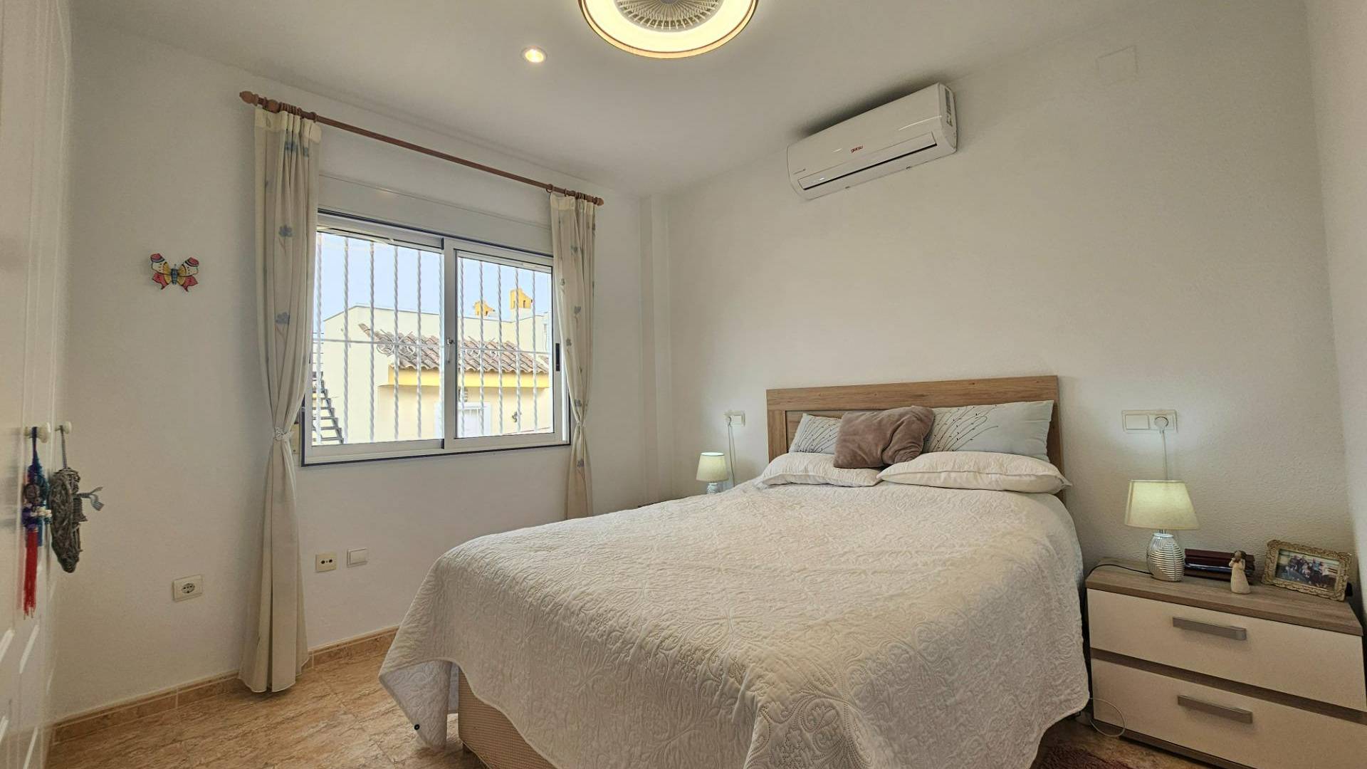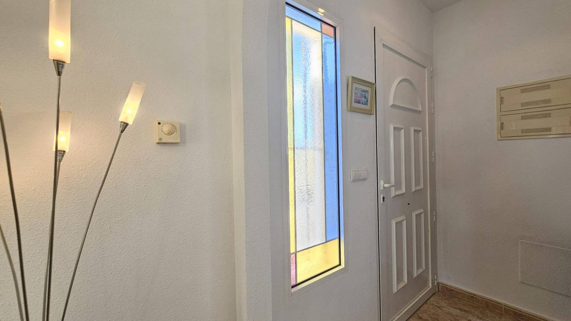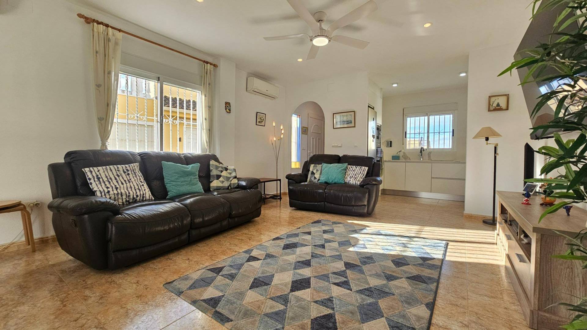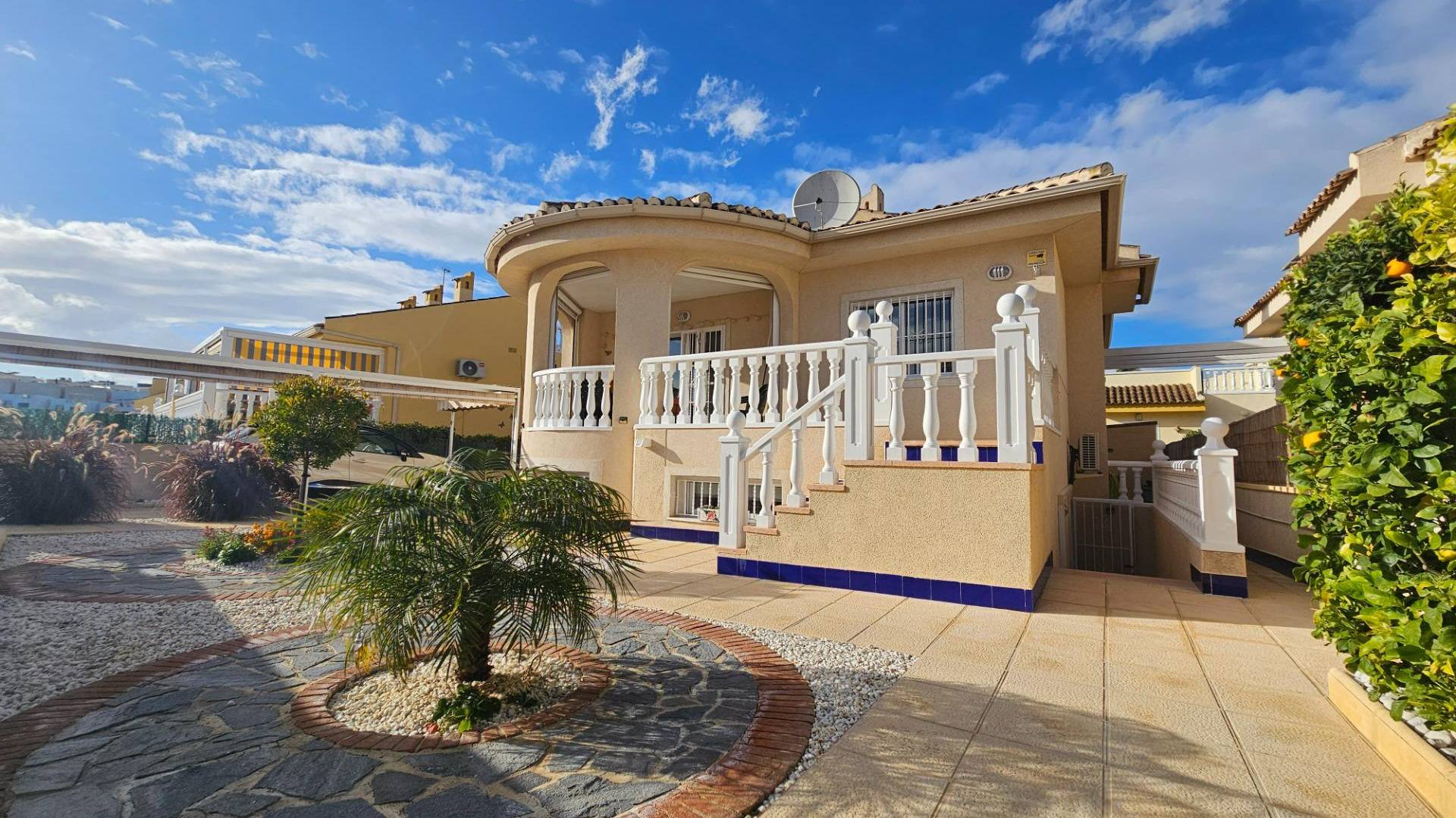 Nos complace presentarles una villa independiente de 3 dormitorios y 2,5 baños con sótano independiente en un estado absolutamente impecable, situada en la codiciada urbanización Benimar III, conjunto Maite VII. Se encuentra en una parcela de 228 m² que ofrece aparcamiento fuera de la vía pública, jardín de bajo mantenimiento con sistema de riego automático, preciosas plantas frutales y una terraza cubierta para disfrutar de su café matutino y de comidas al aire libre. Las vidrieras junto a la entrada le dan una colorida bienvenida a la casa, que consta en la planta baja de un amplio salón-comedor, una cocina abierta totalmente equipada, un comedor, un dormitorio doble, un cuarto de baño con ducha y un aseo de invitados. Desde el salón hay acceso directo a través de puertas francesas a la soleada terraza, con vistas al hermoso jardín y a los alrededores. Se puede acceder al sótano a través de una entrada independiente que consta de 2 dormitorios dobles, un cuarto de baño con ducha, un lavadero y un gran salón, que incluye una cocina, perfecto para organizar reuniones familiares y fiestas. La propiedad ha sido renovada a lo largo de los años y está muy bien cuidada. La piscina comunitaria se encuentra a la vuelta de la esquina, al igual que el parque natural de Cañada Marsá, ideal para dar románticos paseos y disfrutar de la fauna local. EXTRAS: aire acondicionado, ventiladores de techo, ventanas de doble acristalamiento, calefacción por suelo radiante en la planta baja, baños renovados, descalcificador de agua, parcialmente amueblado, Sky TV, encimera de mármol en la cocina, toallero, filtro de agua potable, electrodomésticos. Benimar es una urbanización muy popular con una agradable comunidad de expatriados, compuesta por edificios bajos y calles anchas, y llena de servicios. La proximidad a las grandes ciudades de Benijófar, Rojales y Ciudad Quesada la convierten en una opción excelente tanto para vivir como para tener una segunda residencia. Las playas de Guardamar están a poca distancia en coche y se puede llegar al aeropuerto de Alicante en menos de 40 minutos.