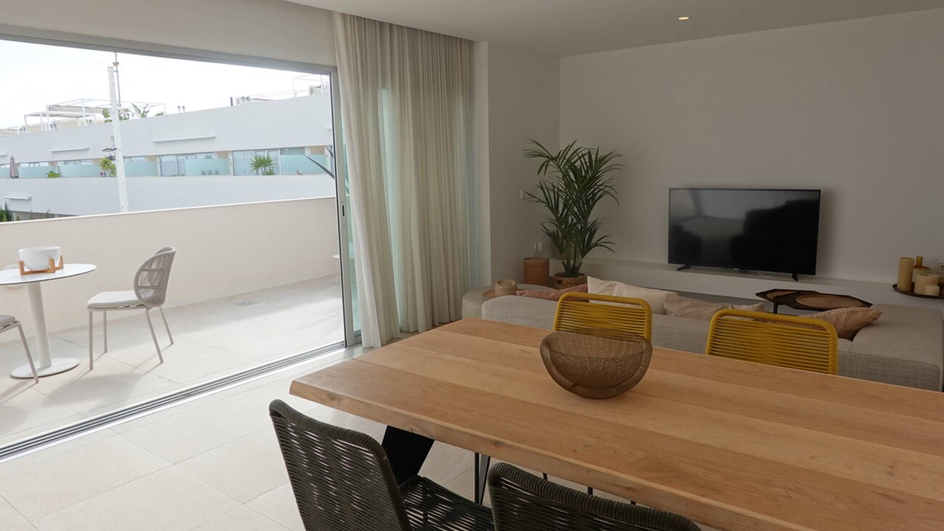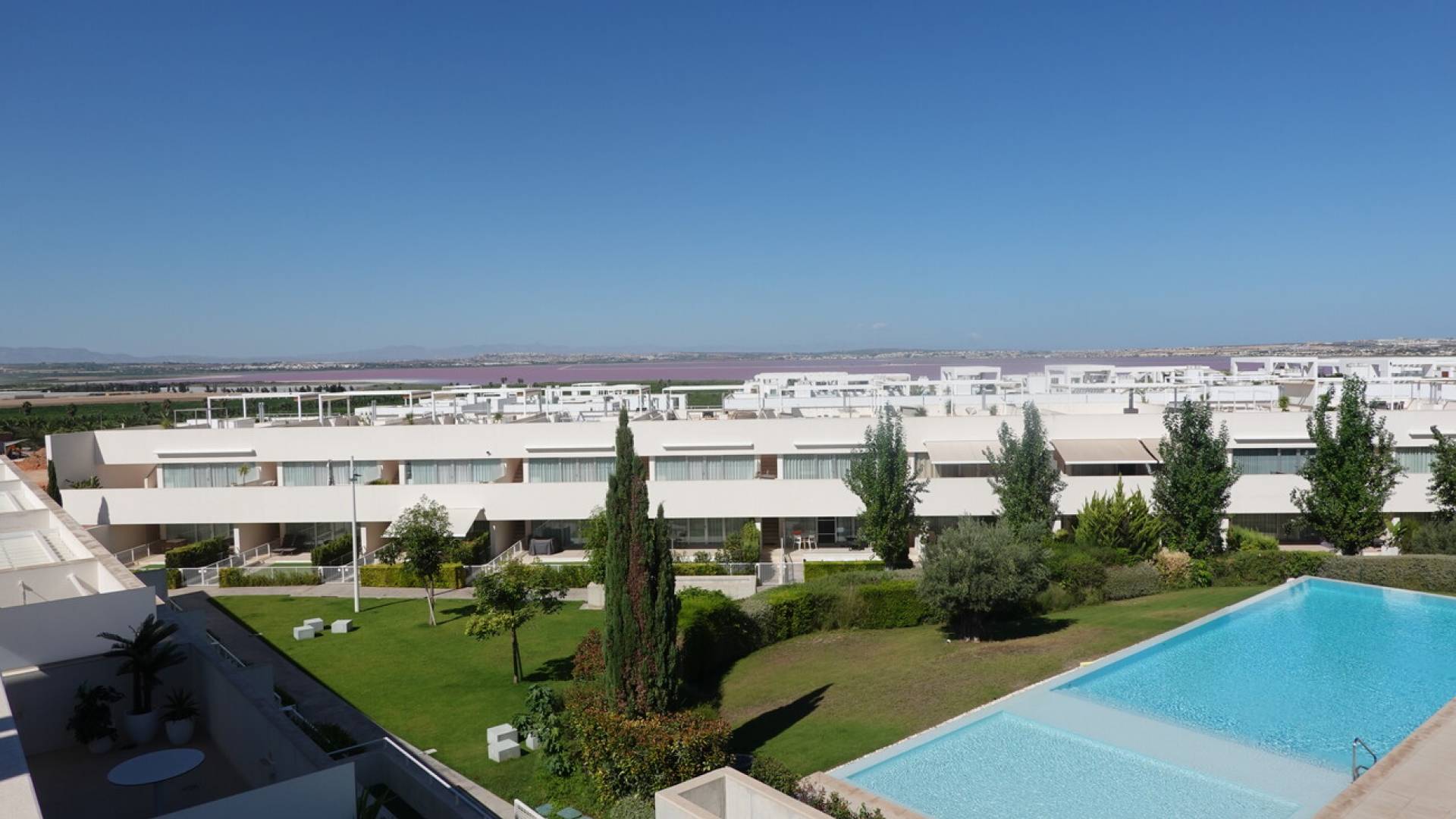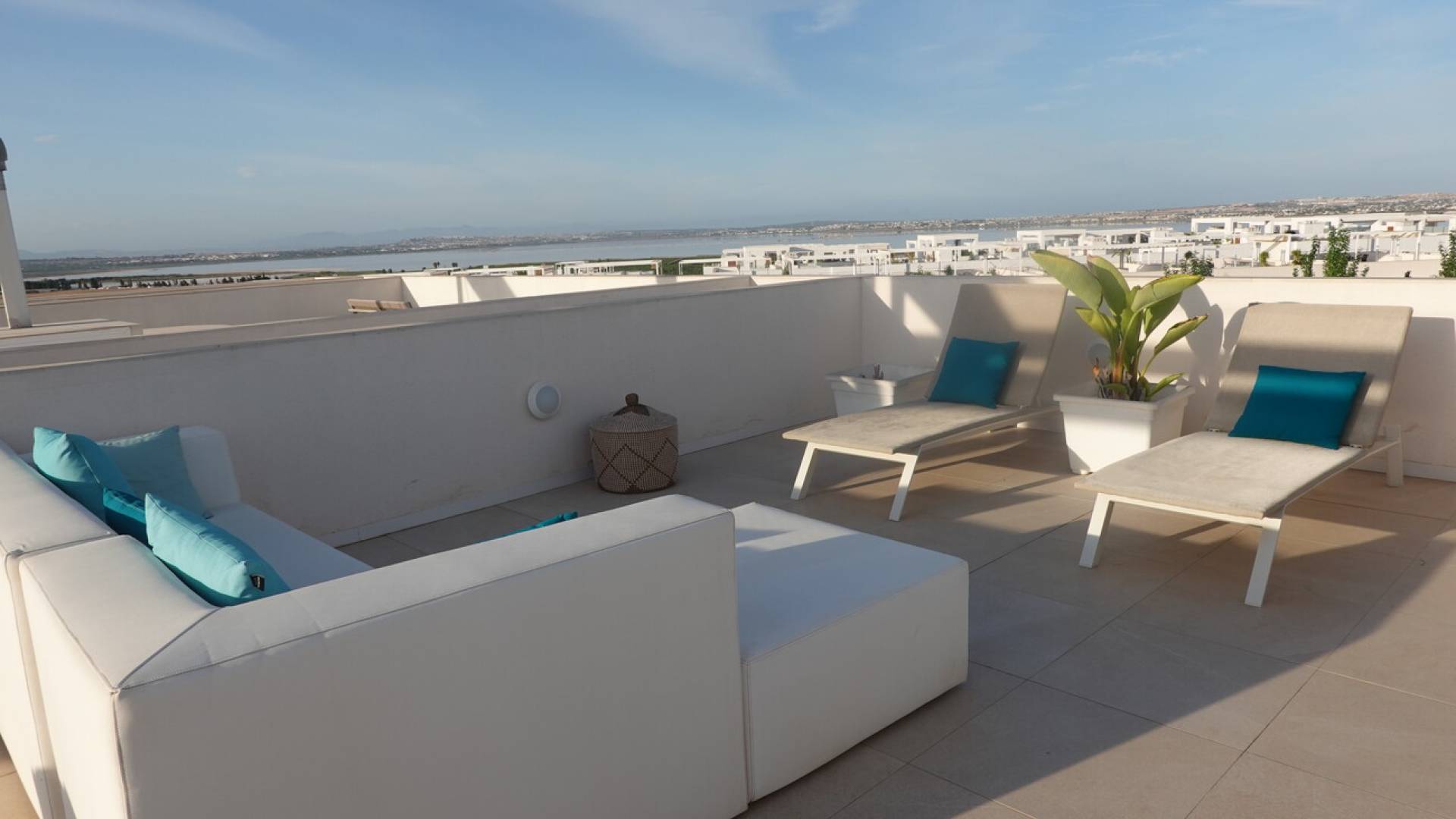 ¿Busca una vivienda moderna, lista para entrar a vivir y con unas vistas únicas?En la tranquila zona residencial de Los Balcones se encuentra este precioso apartamento en esquina que combina a la perfección diseño, comodidad y ubicación.Desde el apartamento se disfruta de unas vistas impresionantes al famoso mar salado de Torrevieja, lo que le hará sentir cada día como si estuviera de vacaciones.El apartamento esquinero tiene 3 dormitorios y 2 baños, está listo para entrar a vivir y, gracias a las terrazas en la parte delantera y trasera, disfruta del sol tanto por la mañana como por la tarde.¿La joya de la corona?Una impresionante azotea de 74 m² con cocina exterior totalmente equipada, el lugar ideal para relajarse, recibir a los amigos o disfrutar de la puesta de sol.Otras ventajas son la ventana corredera (5 metros) del salón, la plaza de aparcamiento y el trastero.La residencia está rodeada de mucha vegetación y cuenta con una gran piscina comunitaria. Aquí podrás relajarte por completo, rodeado de lo mejor del sol español.A poca distancia a pie encontrarás tiendas como Mercadona, Aldi y Carrefour Express, así como acogedores restaurantes.El centro comercial La Zenia Boulevard se encuentra a pocos minutos en coche, y las playas de Torrevieja y Orihuela Costa están a solo quince minutos.Gracias a la proximidad de la autopista (salida Torrevieja Sur), también está muy bien comunicado con el resto de la Costa Blanca.