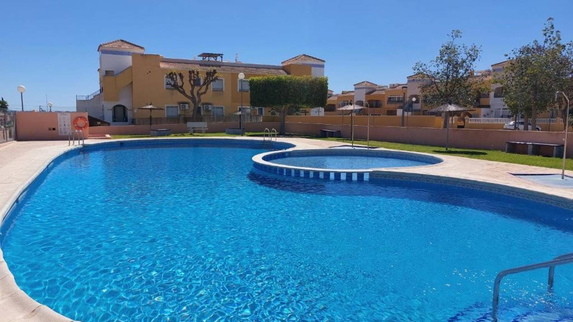 Encantador apartamento en planta baja en Los Montesinos, una zona tranquila y de fácil acceso, ideal para vivir todo el año o para disfrutar de unas vacaciones en la Costa Blanca. La propiedad ofrece 63 m² de espacio habitable y una amplia parcela privada de 167 m², transformada en una hermosa terraza ajardinada, ideal para disfrutar del aire libre. Dispone de una encantadora zona de barbacoa con bar, varias zonas de estar y una exuberante vegetación. Al entrar, encontrará una acogedora terraza, perfecta para desayunar al aire libre o relajarse. Esta terraza está cerrada y, por lo tanto, se puede utilizar durante todo el año. En el interior, el apartamento consta de dos luminosos dormitorios, ambos con armarios empotrados, y un baño recientemente reformado. La cocina independiente ofrece un espacio cómodo y funcional, totalmente equipada con electrodomésticos y con acceso a un práctico lavadero. El apartamento dispone de aire acondicionado en el salón, lo que garantiza un confort óptimo durante todo el año. Los actuales propietarios han realizado numerosas mejoras en la propiedad, incluyendo suelos nuevos, azulejos mediterráneos en las paredes, un baño nuevo y mucho más. Gracias a su orientación sur, el apartamento recibe abundante luz natural durante gran parte del día, creando un ambiente cálido y acogedor. Está listo para entrar a vivir y se ofrece sin amueblar, lo que le permite decorarlo y amueblarlo a su gusto. La propiedad forma parte de un complejo residencial bien cuidado con piscina comunitaria, ideal para refrescarse durante los meses de verano. También incluye una plaza de aparcamiento privada con sombra, un trastero y una puerta de seguridad blindada para mayor comodidad y seguridad. La ubicación es excelente:A solo 15 minutos de las playasA 40 minutos del aeropuertoA 3 minutos de zonas de ocio, comercios y serviciosA 10 minutos de campos de golf Una propiedad con gran potencial, excepcionales espacios exteriores y una ubicación estratégica, ideal como primera residencia, segunda residencia o inversión.