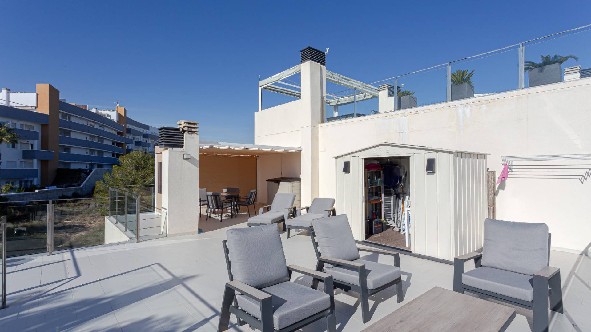 Ático en venta en Villamartín – Orihuela CostaÁtico en venta en Orihuela Costa, ubicado en la demandada zona de Villamartín, en la Costa Blanca Sur. Esta propiedad moderna representa una excelente oportunidad para comprar vivienda en España, combinando una ubicación estratégica, confort contemporáneo y un alto potencial de inversión.La zona de Villamartín, en Orihuela Costa, es especialmente valorada por su calidad de vida, su entorno residencial y su fuerte atractivo para compradores internacionales. Actualmente es una de las áreas más solicitadas para la compra de apartamentos y áticos en la Costa Blanca Sur.Este ático se encuentra en un residencial moderno construido en 2013, con una arquitectura actual y zonas comunes bien cuidadas, que ofrecen un entorno tranquilo, seguro y agradable.Ubicación privilegiada en Villamartín, Orihuela CostaEste ático en venta en Villamartín disfruta de una ubicación ideal, cerca del centro comercial La Fuente, una de las zonas comerciales y de ocio más populares de la zona, con numerosos restaurantes, bares, tiendas y servicios abiertos todo el año.El supermercado Mercadona se encuentra a pocos minutos, lo que aporta una gran comodidad tanto para residencia habitual como para segunda vivienda.En los alrededores se encuentran las playas de Orihuela Costa como La Zenia, Cabo Roig y Playa Flamenca, así como prestigiosos campos de golf como Villamartín, Las Ramblas y Campoamor. Además, la propiedad está cerca del centro comercial La Zenia Boulevard, con rápido acceso a la N-332 y la AP-7, y buenas conexiones con los aeropuertos internacionales de Alicante y Murcia.Ático de 2 dormitorios y 2 bañosEste ático en Villamartín ofrece una distribución funcional y cómoda, ideal tanto para vivir todo el año como para uso vacacional.Dispone de dos dormitorios dobles luminosos con armarios empotrados, dos baños completos (uno de ellos en suite), un amplio y luminoso salón-comedor y una cocina moderna de concepto abierto totalmente equipada. Las grandes puertas correderas aportan una excelente entrada de luz natural a toda la vivienda.Amplio balcón y solárium privadoLa vivienda cuenta con un gran balcón accesible desde el salón, además de un solárium privado en la azotea, uno de los espacios más valorados en Orihuela Costa.El solárium puede acondicionarse como zona de relax, comedor exterior, área de barbacoa o cocina de verano, permitiendo disfrutar del clima mediterráneo durante todo el año.Ideal como residencia, segunda vivienda o inversiónEste ático en venta en Villamartín, Orihuela Costa, es una excelente oportunidad tanto como vivienda habitual, segunda residencia al sol o como inversión inmobiliaria.La zona de Villamartín cuenta con una alta demanda de alquiler, tanto vacacional como de larga duración, lo que garantiza una buena rentabilidad y un valor estable a largo plazo.