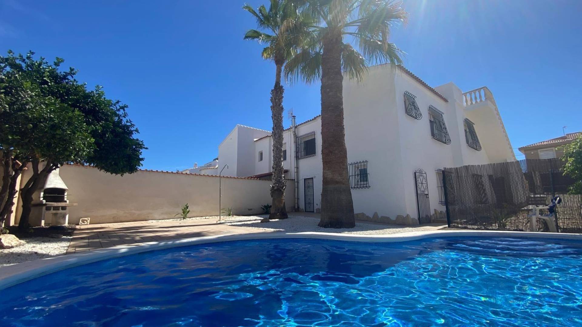 ✨ Chalet con 400 m2 de parcela, piscina privada y vistas a las salinas en El Chaparral, Torrevieja ✨ Te presento una vivienda que lo tiene TODO para disfrutar del sol y la tranquilidad durante todo el año. Este fantástico chalet en la zona de El Chaparral combina espacio, comodidad y detalles que marcan la diferencia. La casa cuenta con 3 amplios dormitorios y 3 baños completos, perfecta tanto para vivir todo el año como para recibir familia y amigos sin problemas de espacio. El salón es acogedor y con muchísimo encanto gracias a su chimenea, ideal para las noches más frescas de invierno. Además, dispone de calefacción central, algo que se agradece más de lo que la gente cree en esta zona y también ventanas climalit de pvc. La cocina principal es funcional y luminosa, pero aquí viene un plus que me encanta: en el sótano hay una cocina adicional, perfecta para celebraciones, invitados o incluso para crear una zona independiente. En el exterior es donde esta vivienda realmente brilla ???? Disfrutarás de un gran jardín privado con barbacoa, con espacio de sobra para relajarte, tomar el sol o crear tu propio rincón chill out. También tiene piscina privada de 8x4, para refrescarte cuando quieras sin salir de casa y aparcamiento para 3 coches en la parcela. Y como guinda del pastel: vistas a las salinas desde el solarium, que regalan atardeceres espectaculares y una sensación de amplitud y tranquilidad difícil de encontrar. Una propiedad completísima, en una zona residencial muy demandada, perfecta si buscas espacio, privacidad y calidad de vida en la Costa Blanca. ???? El Chaparral – Torrevieja ???? Lista para entrar a vivir y empezar a disfrutar desde el primer día Gastos e IVA no incluido