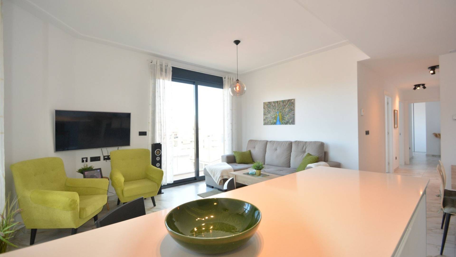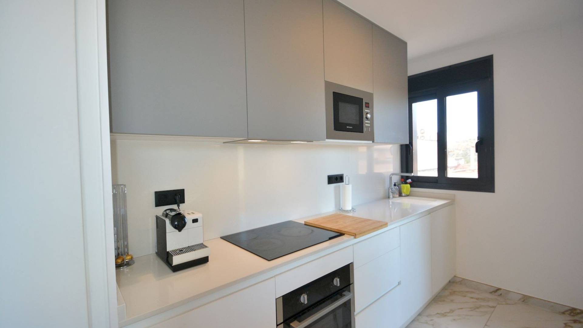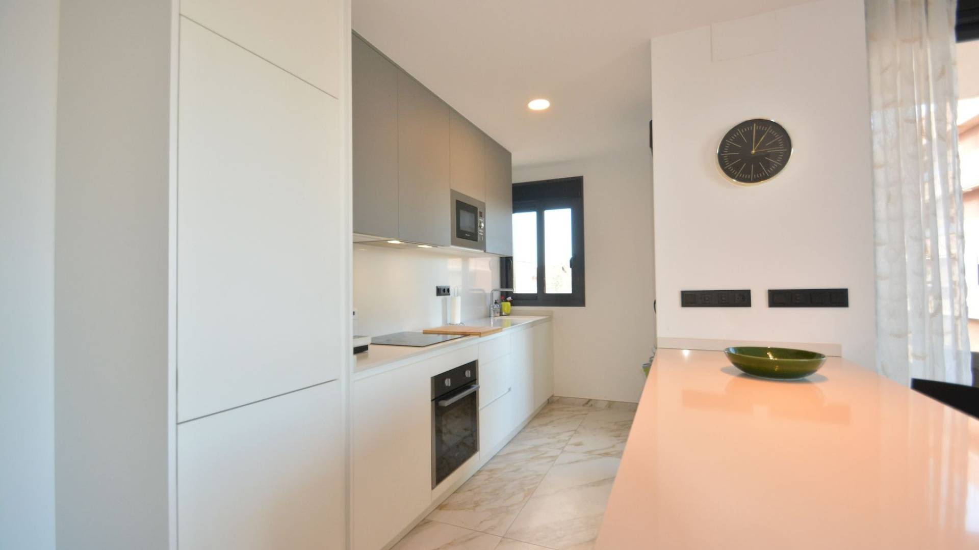 Este moderno apartamento se encuentra en pleno centro de Guardamar del Segura, una animada localidad costera conocida por sus largas playas de arena, su agradable clima y su amplia oferta de servicios durante todo el año. Desde esta ubicación céntrica, tiendas, restaurantes, supermercados, servicios médicos y transporte público están a poca distancia a pie, y la playa se encuentra a solo unos minutos caminando. El apartamento está situado en la tercera planta de un edificio terminado en 2023 y ofrece una superficie construida total de 93 m² más una terraza de 17 m². La distribución incluye tres dormitorios y dos baños, con una cocina de concepto abierto que se integra perfectamente con el salón, creando un ambiente amplio y luminoso. Todas las ventanas dan a la calle, sin patio interior, lo que permite una excelente entrada de luz natural en toda la vivienda. La propiedad se vende completamente amueblada y equipada, incluidos todos los electrodomésticos. La cocina es amplia, moderna y totalmente equipada. Todos los dormitorios cuentan con armarios empotrados y camas con espacio de almacenamiento. El apartamento dispone de aire acondicionado centralizado, suelo radiante en los baños y el salón, persianas eléctricas en todas las ventanas y una zona de lavadero cerrada en la terraza con termo eléctrico de 150 litros y lavadora. La orientación es noroeste. Incluye una terraza privada en la azotea y un trastero, y el edificio dispone de ascensor. Existe la opción de adquirir una plaza de garaje subterránea por un precio adicional de 25.000 euros. Se trata de una vivienda luminosa, cómoda y lista para entrar a vivir, con un diseño moderno, ideal tanto como residencia habitual como para uso vacacional. El precio no incluye impuestos ni gastos administrativos de compra. El precio total del apartamento, incluida la plaza de garaje, es de 390.000 EUR. No dudéis en contactarnos para más información o para concertar una visita.