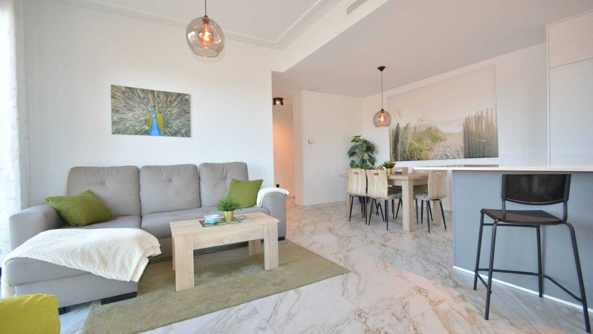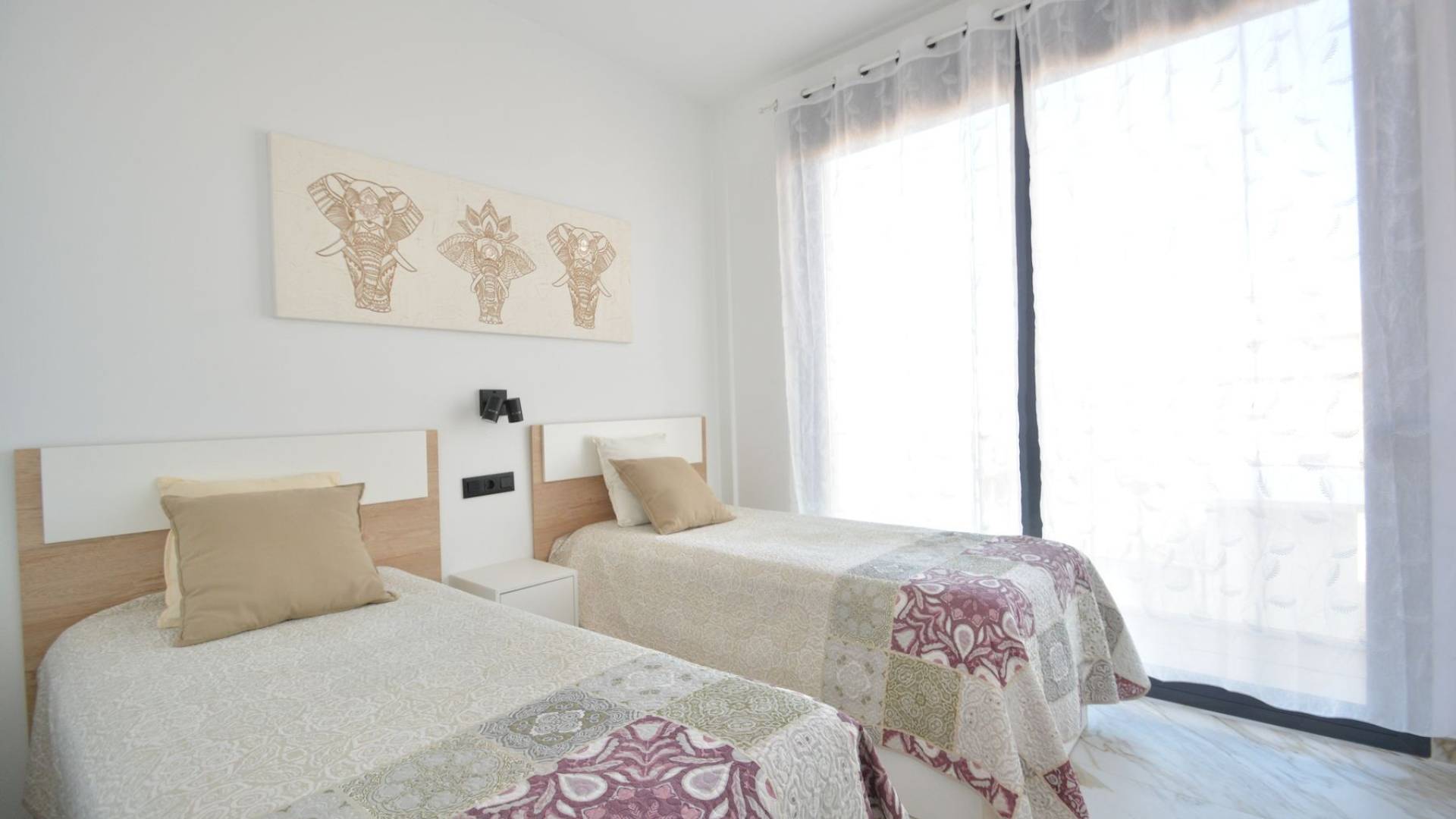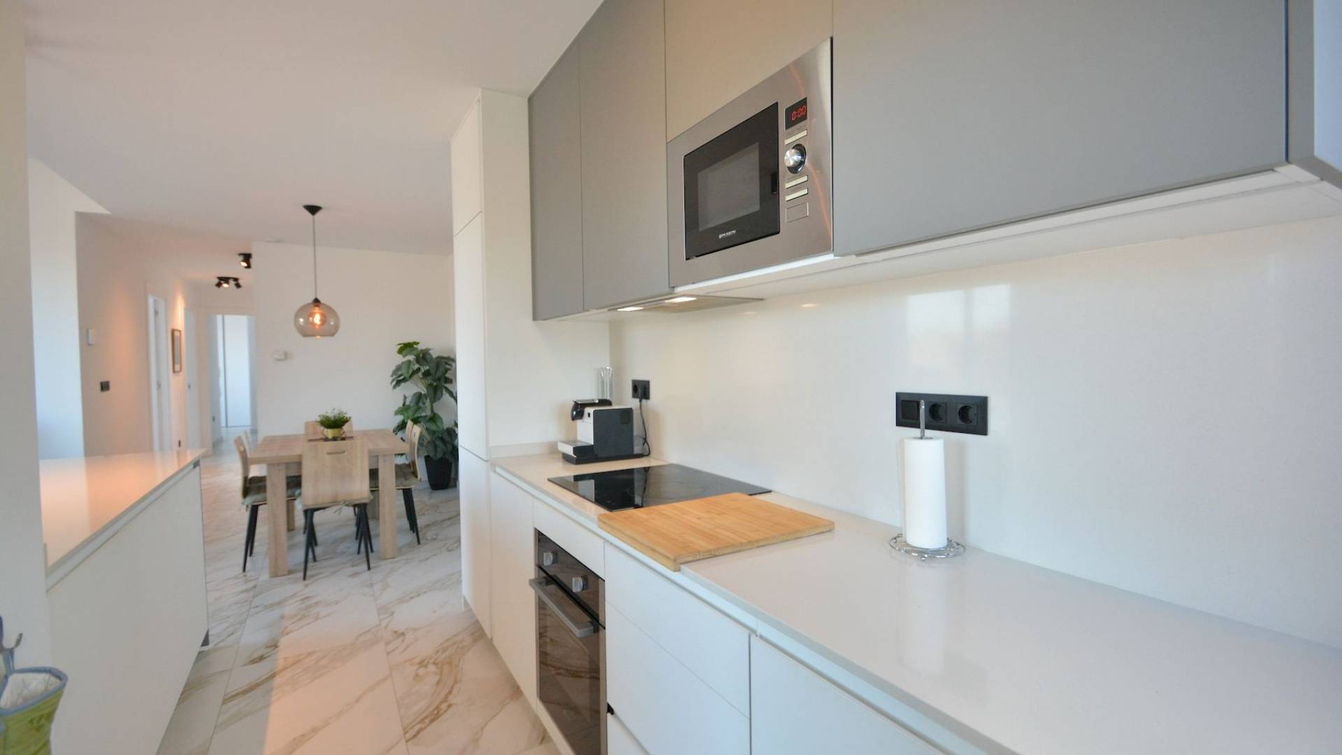 Este moderno apartamento se encuentra en pleno centro de Guardamar del Segura, una animada localidad costera conocida por sus largas playas de arena, su agradable clima y su amplia oferta de servicios durante todo el año. Desde esta ubicación céntrica, tiendas, restaurantes, supermercados, servicios médicos y transporte público están a poca distancia a pie, y la playa se encuentra a solo unos minutos caminando. El apartamento está situado en la tercera planta de un edificio terminado en 2023 y ofrece una superficie construida total de 93 m² más una terraza de 17 m². La distribución incluye tres dormitorios y dos baños, con una cocina de concepto abierto que se integra perfectamente con el salón, creando un ambiente amplio y luminoso. Todas las ventanas dan a la calle, sin patio interior, lo que permite una excelente entrada de luz natural en toda la vivienda. La propiedad se vende completamente amueblada y equipada, incluidos todos los electrodomésticos. La cocina es amplia, moderna y totalmente equipada. Todos los dormitorios cuentan con armarios empotrados y camas con espacio de almacenamiento. El apartamento dispone de aire acondicionado centralizado, suelo radiante en los baños y el salón, persianas eléctricas en todas las ventanas y una zona de lavadero cerrada en la terraza con termo eléctrico de 150 litros y lavadora. La orientación es noroeste. Incluye una terraza privada en la azotea y un trastero, y el edificio dispone de ascensor. Existe la opción de adquirir una plaza de garaje subterránea por un precio adicional de 25.000 euros. Se trata de una vivienda luminosa, cómoda y lista para entrar a vivir, con un diseño moderno, ideal tanto como residencia habitual como para uso vacacional. El precio no incluye impuestos ni gastos administrativos de compra. El precio total del apartamento, incluida la plaza de garaje, es de 390.000 EUR. No dudéis en contactarnos para más información o para concertar una visita.