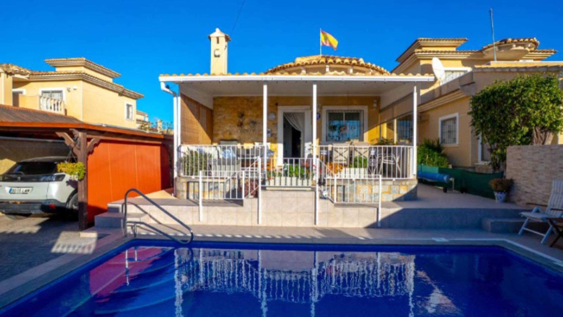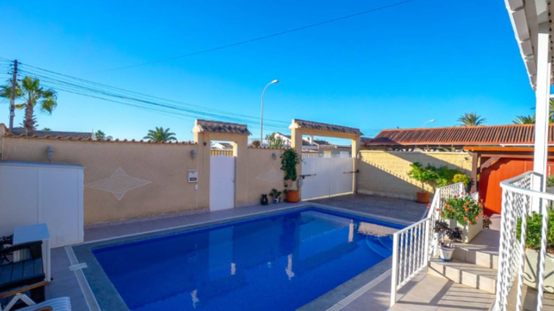 Bienvenidos a esta encantadora y muy bien cuidada villa en la codiciada La Siesta, Torrevieja, un oasis de paz y privacidad donde puedes disfrutar tanto del sol, la comodidad como la sensación mediterránea durante todo el año.Está situada en una parcela apartada de aprox. 400m2 con aparcamiento privado, una gran piscina climatizada de agua salada y un jardín preciosamente ajardinado con árboles frutales como mandarinas e higos. La parcela ofrece varios lugares encantadores tanto al sol como a la sombra a todas horas del día. Desde la generosa terraza en la azotea se disfruta el sol casi todo el día y una vista fantástica de la zona y del brillante lago salado. La ubicación es perfecta: cerca de buenos restaurantes, senderos para caminar y zonas sociales.Al entrar por la puerta de entrada privada, te recibe un jardín exuberante y armonioso, ideal para tomar el sol, relajarse y nadar en la acogedora piscina. La gran terraza cubierta orientada al sur se convierte rápidamente en un lugar favorito tanto para las comidas como para socializar en el agradable clima mediterráneo. También existen paneles solares que contribuyen a bajos costes operativos y a una vida más sostenible.En el interior, la casa se caracteriza por su luz, espacio y comodidad. Las zonas de sala y comedor de planta abierta están conectadas por una chimenea acogedora que crea un ambiente cálido y acogedor. La cocina totalmente equipada está convenientemente situada al lado y tiene acceso directo a la parte trasera del jardín, donde también encontrarás una agradable cocina exterior, perfecta para largas y agradables cenas con familia y amigos.Un gran punto a favor es la zona de invitados separada, con un dormitorio espacioso, baño en suite y espacio de almacenamiento inteligente, ideal para quienes buscan un poco más de privacidad.En la casa principal hay dos dormitorios más luminosos con armarios empotrados y un baño moderno y fresco con ducha.