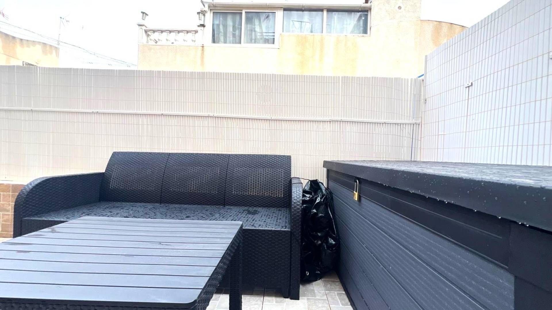 Luminoso bungalow planta baja de 2 dormitorios con jardín y piscina en Los Balcones Este encantador bungalow reformado es una opción ideal para quienes buscan comodidad. La vivienda dispone de dos dormitorios luminosos, diseñados para ofrecer descanso y funcionalidad, así como un ambiente moderno y acogedor en cada rincón. El salón se integra de forma armoniosa con la zona exterior, dando paso a un agradable jardín privado, perfecto para disfrutar del clima mediterráneo, relajarse o compartir momentos en familia y con amigos. Ubicado dentro de una cuidada urbanización, el bungalow cuenta con acceso directo a la piscina comunitaria, ideal para refrescarse y disfrutar del tiempo libre. Además, incluye plaza de parking, un valor añadido que aporta comodidad y tranquilidad. UBICACIÓN: Los Balcones se localiza en Torrevieja (Alicante), en la Costa Blanca. Esta zona es conocida por su clima y su costa típicamente mediterráneos. Cabe destacar sus paseos marítimos con varios locales a lo largo de sus playas de arena fina, entre las que destacan la Playa de los Náufragos (a 3 km) y la Playa de los Locos (a 6 km). Además, podemos encontrar varios centros comerciales como el de Habaneras (a 6 km) o La Zenia Boulevard (a 9 km), campos de golf, centros deportivos, hospitales como el Hospital Universitario de Torrevieja (a 800 m) y aeropuertos como el de Alicante (a 35 km) y el Aeropuerto internacional de la Región de Murcia (a 43 km). COMUNIDAD: 204 € IBI: 80 € Si tiene alguna pregunta, no dude en ponerse en contacto con nosotros!