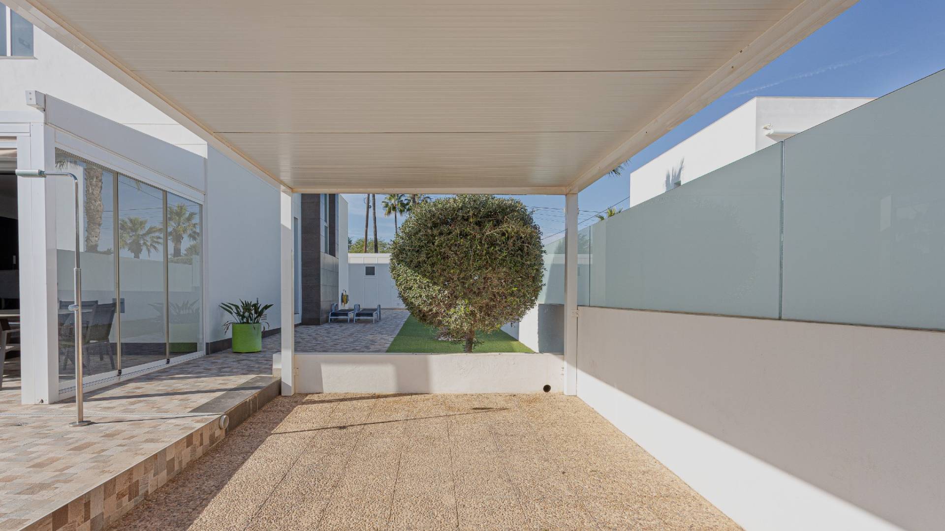 Villa en venta en Orihuela Costa, ubicada en la zona de Lomas de Don Juan, una localización muy solicitada por su cercanía a las playas, campos de golf y todos los servicios. Esta propiedad es ideal tanto para vivir todo el año, como para segunda residencia o inversión inmobiliaria en la Costa Blanca.La vivienda dispone de 110 m² construidos sobre una parcela privada de 370 m², ofreciendo espacio exterior, privacidad y buena orientación. Cuenta con 3 dormitorios y 2 baños, con una distribución cómoda y funcional.En la planta baja se sitúan dos dormitorios y un baño, lo que facilita el acceso y el uso diario de la vivienda. En la planta superior se encuentra el dormitorio principal en suite, con salida directa a una amplia terraza privada con doble orientación sureste y suroeste, proporcionando luz natural durante todo el día.En el exterior, la villa ofrece una piscina privada climatizada, pérgola en la zona de piscina y un entorno ideal para disfrutar del clima mediterráneo. La propiedad cuenta además con espacio de aparcamiento dentro de la parcela, un elemento muy demandado en villas en Orihuela Costa.La vivienda se encuentra a solo 5 minutos en coche de las playas de Campoamor y Cabo Roig, y cerca de supermercados, farmacias, restaurantes y servicios. También está próxima a los campos de golf de Las Ramblas y Campoamor, así como al centro comercial La Zenia Boulevard.Una excelente oportunidad para comprar una villa con piscina privada en Orihuela Costa, bien ubicada, con parcela, buena orientación y cerca del mar y del golf.