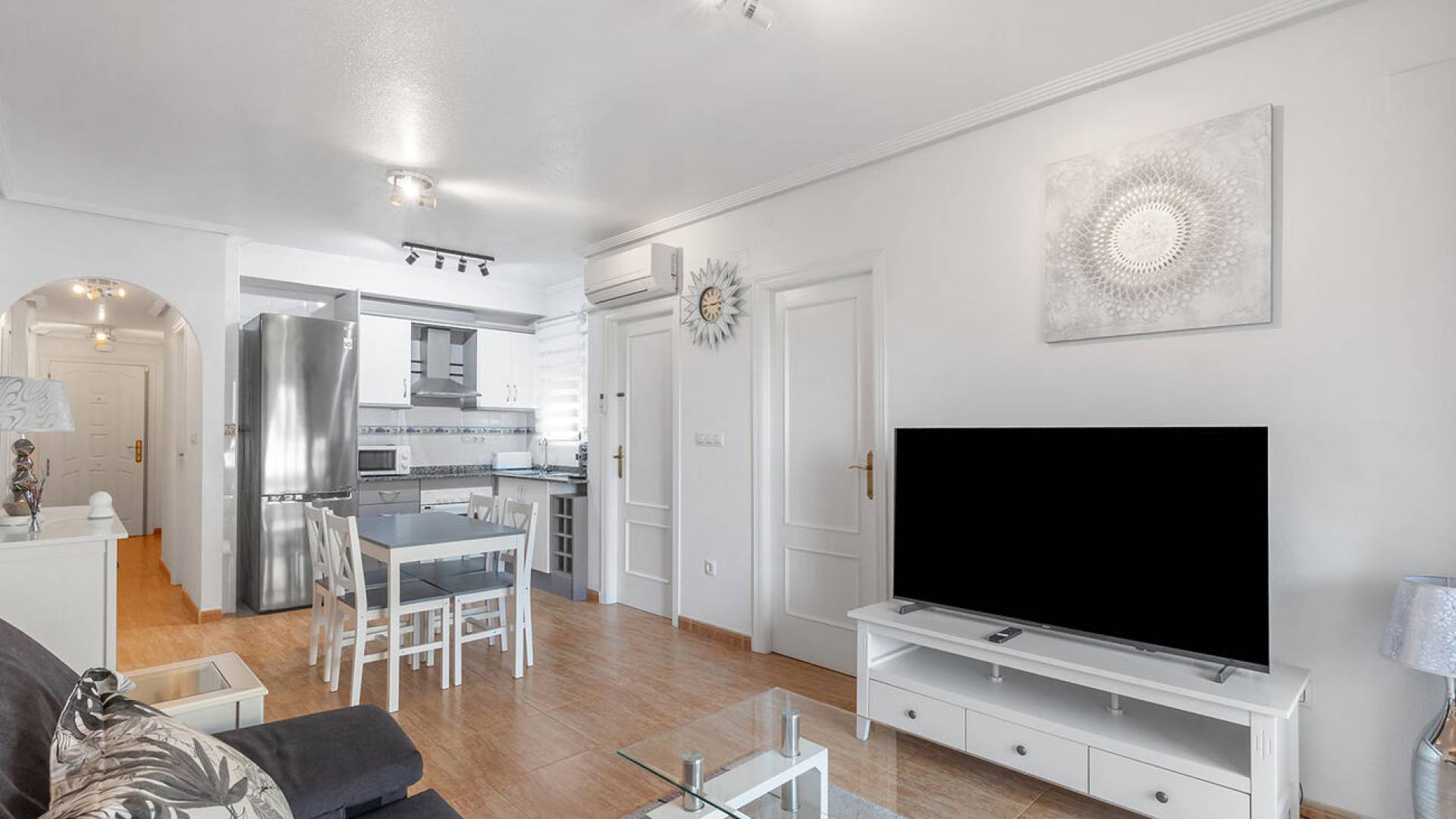 ¡Tu nuevo hogar, ideal tanto para inversión como para vivir todo el año, te está esperando!Te presentamos este encantador apartamento de 70 m², diseñado para quienes buscan comodidad, estilo y una ubicación inmejorable. Situado en una tercera planta con ascensor, esta vivienda se encuentra en un estado impecable y ha sido decorada con esmero.Distribución:2 amplios dormitorios que garantizan un descanso óptimo.1 baño completo, completamente reformado, con un moderno plato de ducha.Cocina abierta con galería-lavadero integrada, práctica y funcional.Luminoso salón-comedor con acceso a una acogedora terraza acristalada de 15 m², el espacio perfecto para disfrutar durante todo el año.Espectacular terraza privada de 72 m², equipada con toldo plano, luz y agua. Un lugar ideal para relajarte al sol o compartir momentos al aire libre con familia y amigos.Comodidades:Climatización por bomba de frío/calor.Aire acondicionado para máxima comodidad.Armarios empotrados en todos los dormitorios.Piscina comunitaria para refrescarte en los días calurosos.Entorno:Ubicado a pocos minutos del mar, en una zona tranquila rodeada de naturaleza, este apartamento ofrece una calidad de vida incomparable. Además, tiene todos los servicios que necesitas a tu alcance: supermercados, restaurantes, transporte público y una excelente oferta deportiva, con tres campos de golf y varias pistas de pádel cercanas.¡No pierdas la oportunidad de verlo! Ven a visitarlo y descubre tu nuevo hogar.